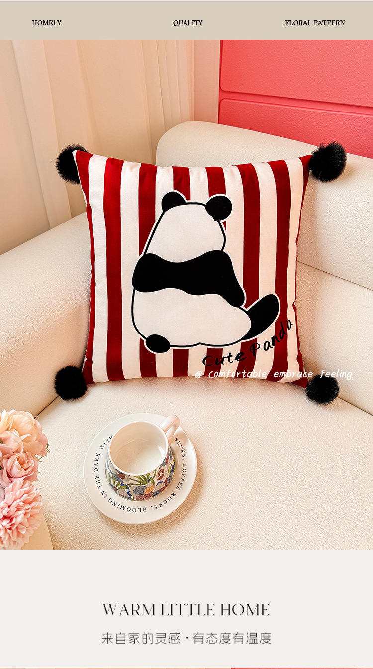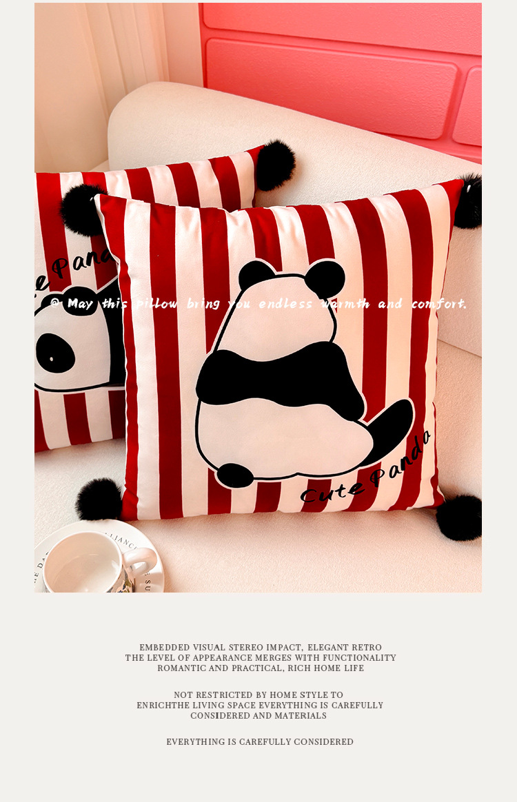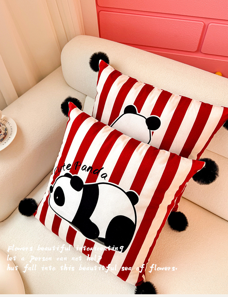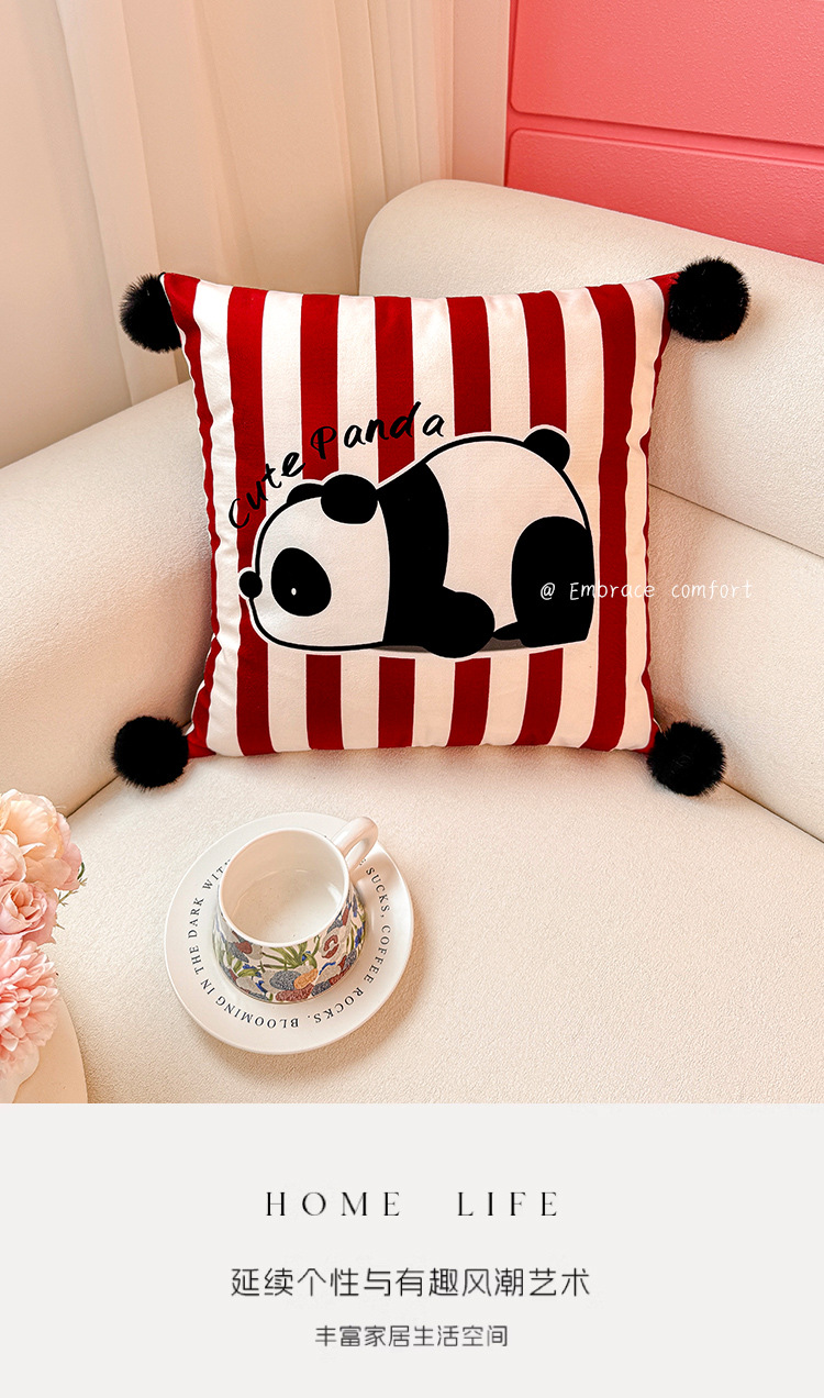 Almohada con estampado de panda de tira vertical, funda de almohada, sofá de sala de estar, almohada de cintura abstracta con estampado de cabecera, bola de pelo