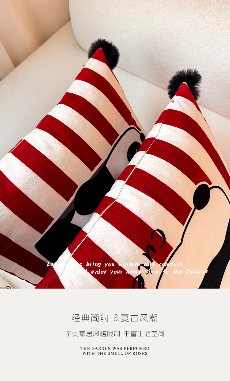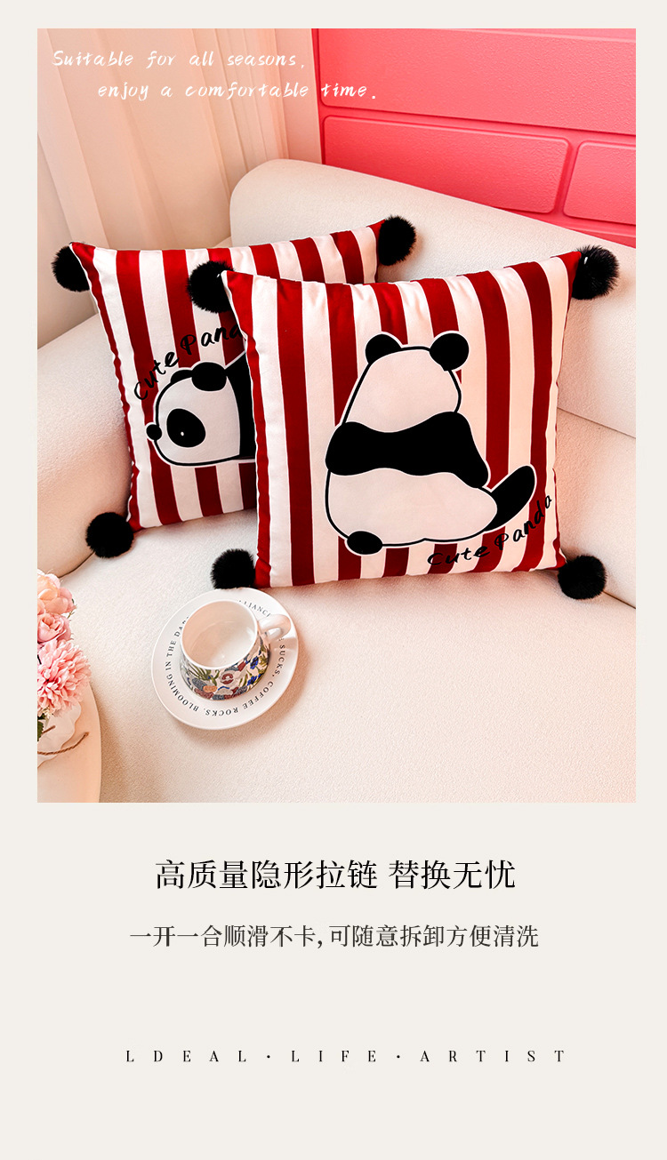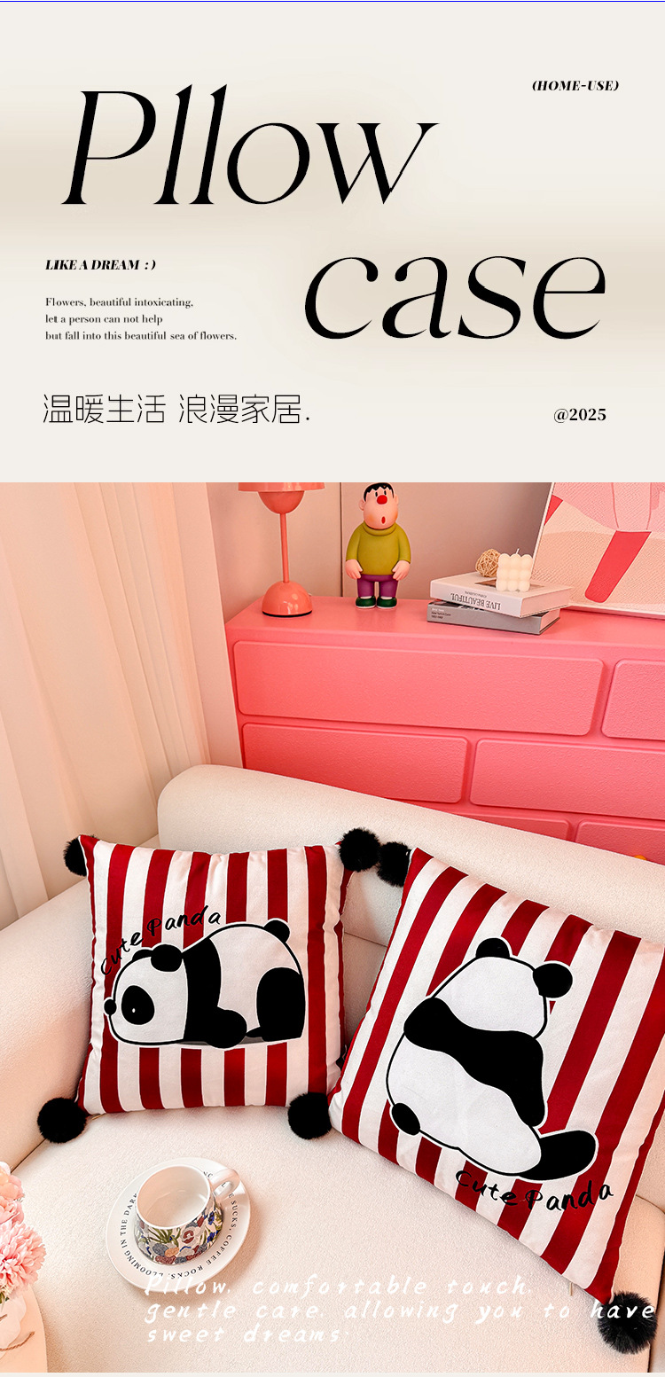 Almohada con estampado de panda de tira vertical, funda de almohada, sofá de sala de estar, almohada de cintura abstracta con estampado de cabecera, bola de pelo