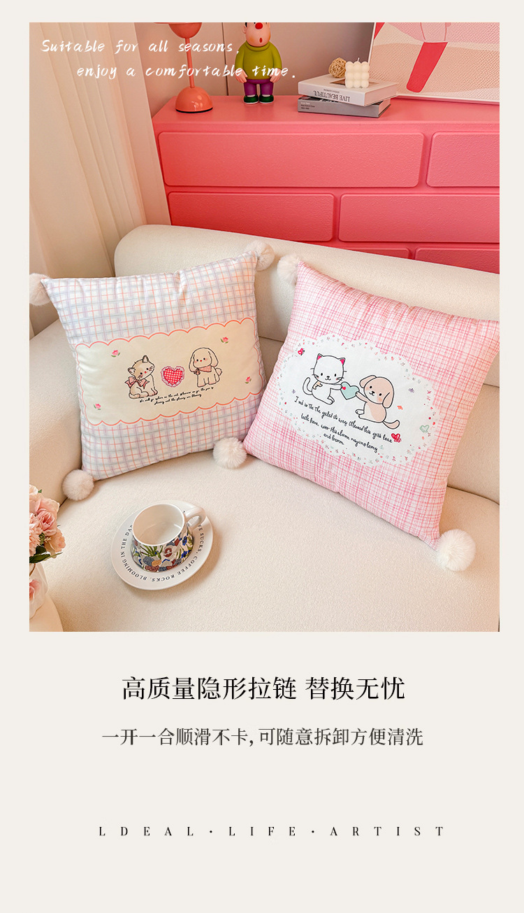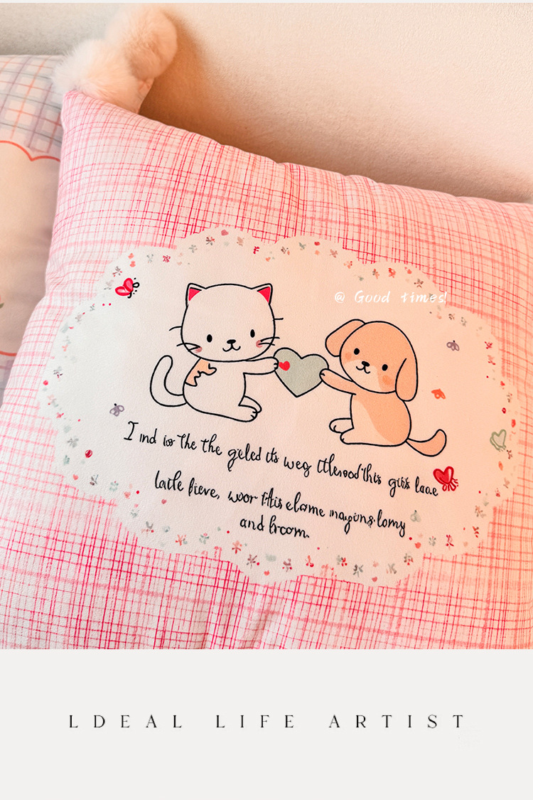 La amistad entre gatos y perros, almohada, funda de almohada, sofá de sala de estar, almohada, impresión de cabecera, almohada de cintura abstracta, bola de pelo