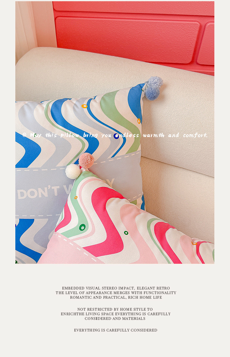 Estrella en el sueño de la almohada impresa funda de almohada sofá de la sala de estar almohada de la cabecera impresión de la almohada de la cintura abstracta con bola de pelo