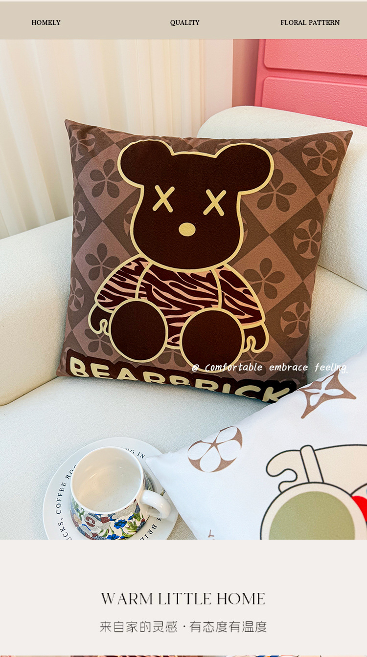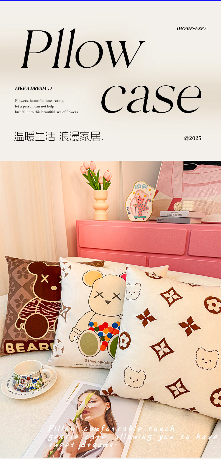 Red de celebridades Bear Tide Brand Almohada ins Estilo de alto valor Salón de nicho Sofá Ventana salediza Cojín Funda de almohada de cabecera