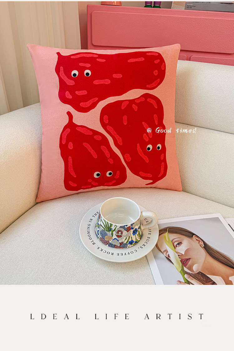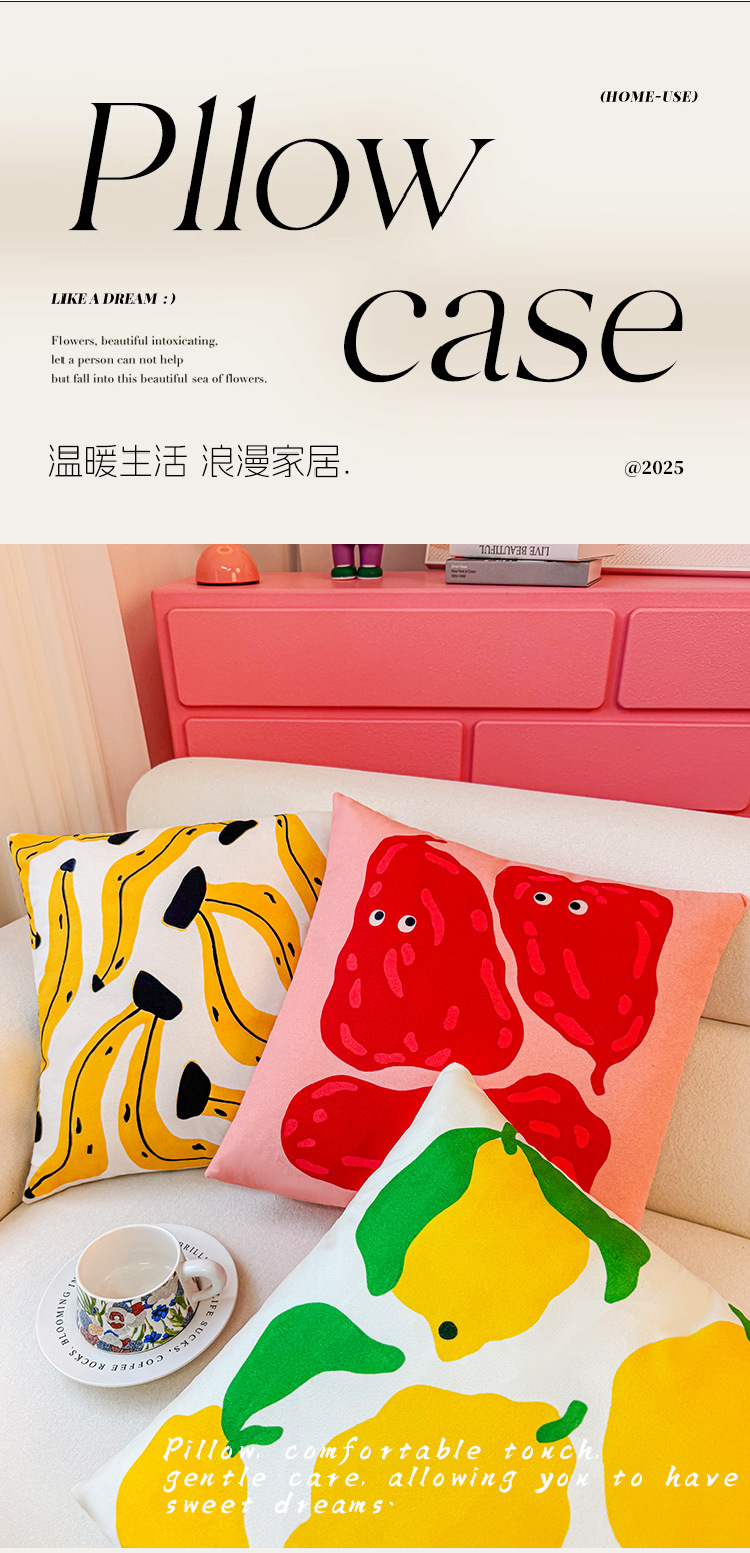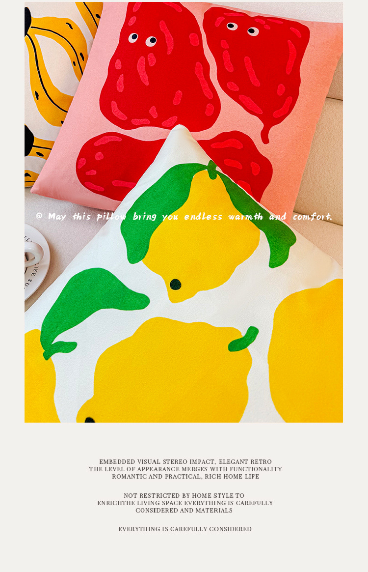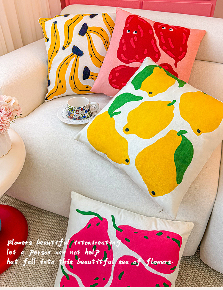 Funda de almohada de fruta abstracta de dibujos animados, almohada de viento, almohada linda, dormitorio de estudiantes, almohada de sofá, cojín, funda de almohada