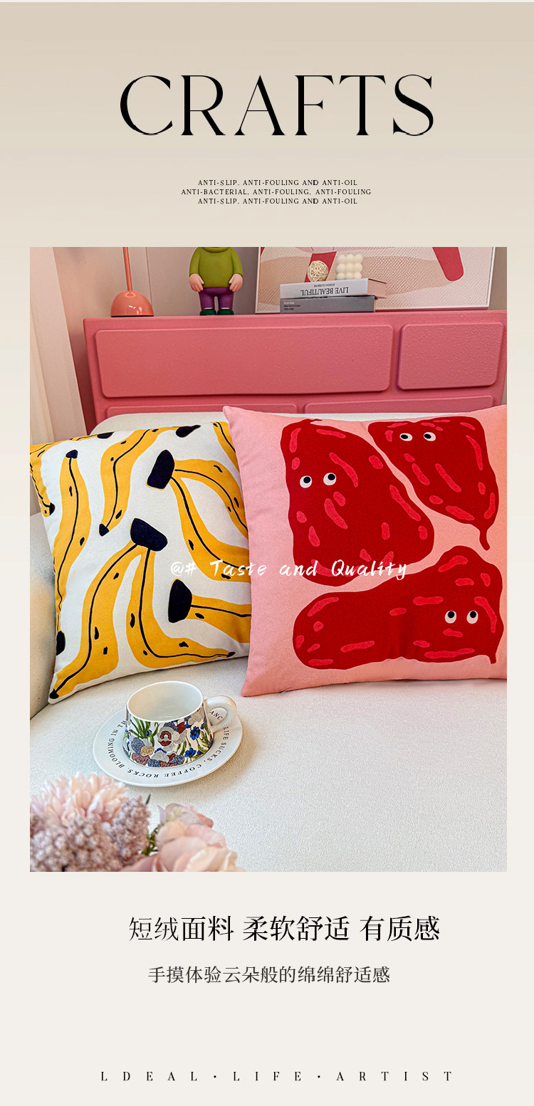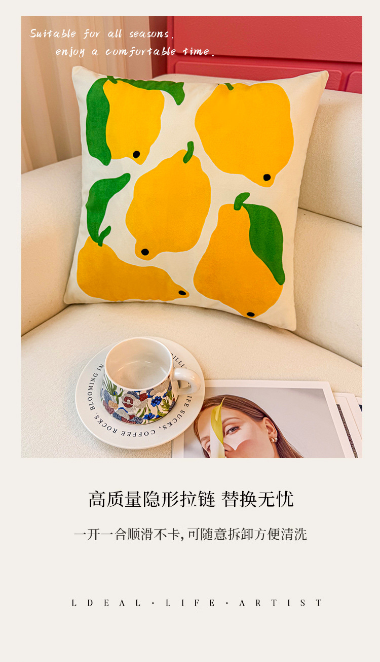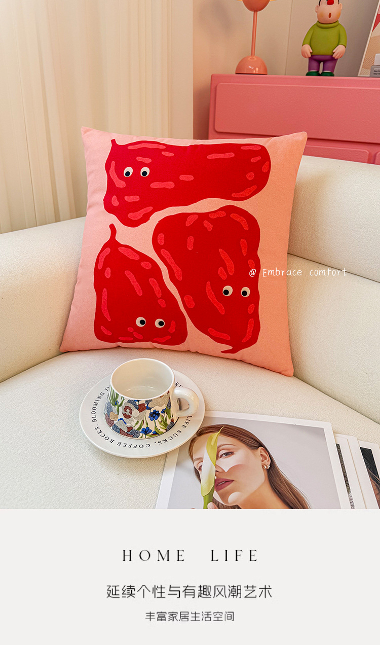 Funda de almohada de fruta abstracta de dibujos animados, almohada de viento, almohada linda, dormitorio de estudiantes, almohada de sofá, cojín, funda de almohada
