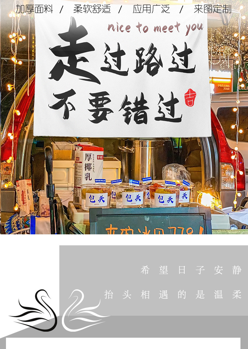 Caligrafía general colocando puestos de comida mercado nocturno colocando puestos de tela colocando letreros de la calle colocando puestos de publicidad colocando tela