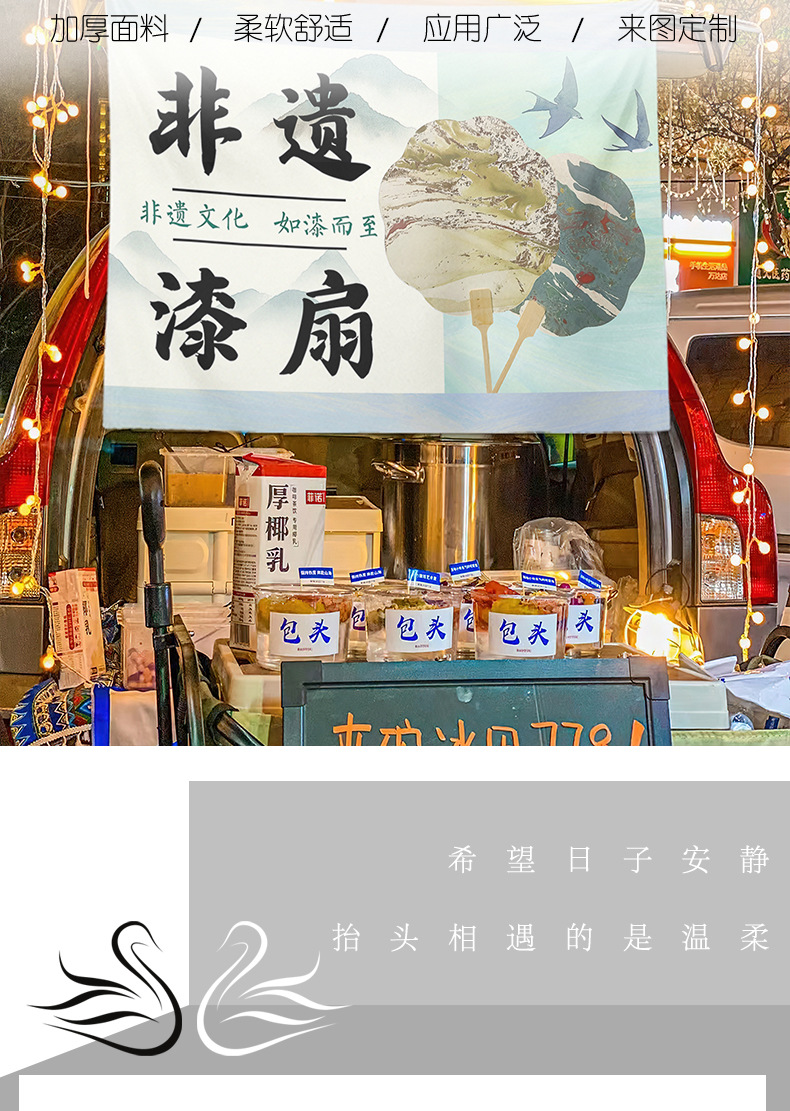 Patrimonio cultural intangible ventilador de pintura blanqueada colocando puestos de comida mercado nocturno colocando puestos de publicidad colocando puestos de señalización de la calle
