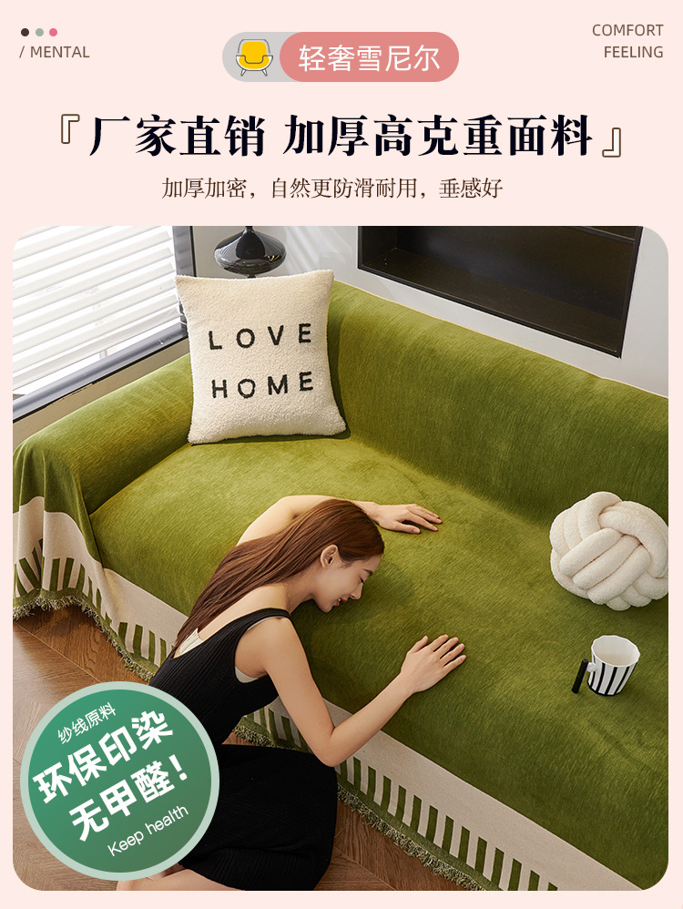 Simple toalla de sofá Schneier cubierta de tela de color sólido grueso cojín de sofá cubierta de cubierta anti-deslizante anti-gato cojín de asiento