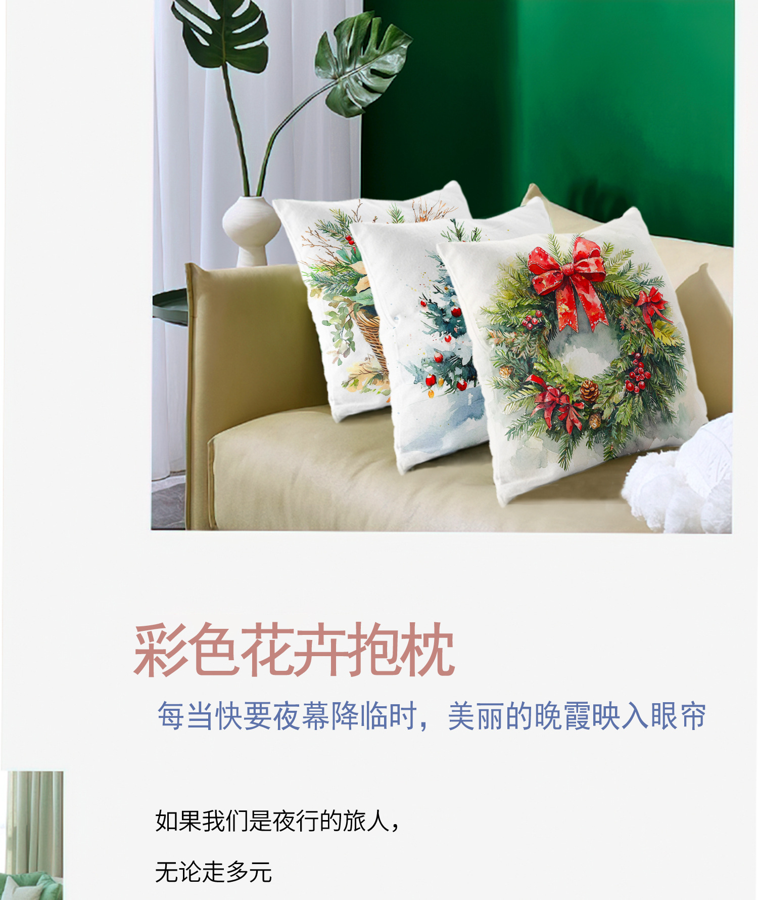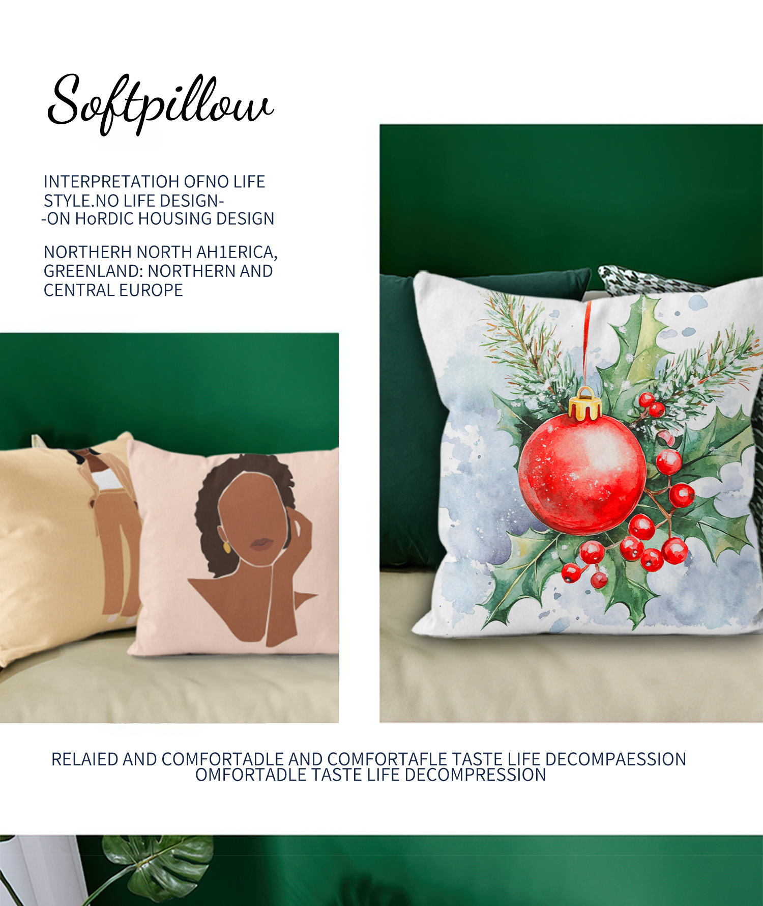 Cross-border nueva almohada de Navidad simple acuarela almohada de almuerzo de oficina almohada de almohada de almuerzo