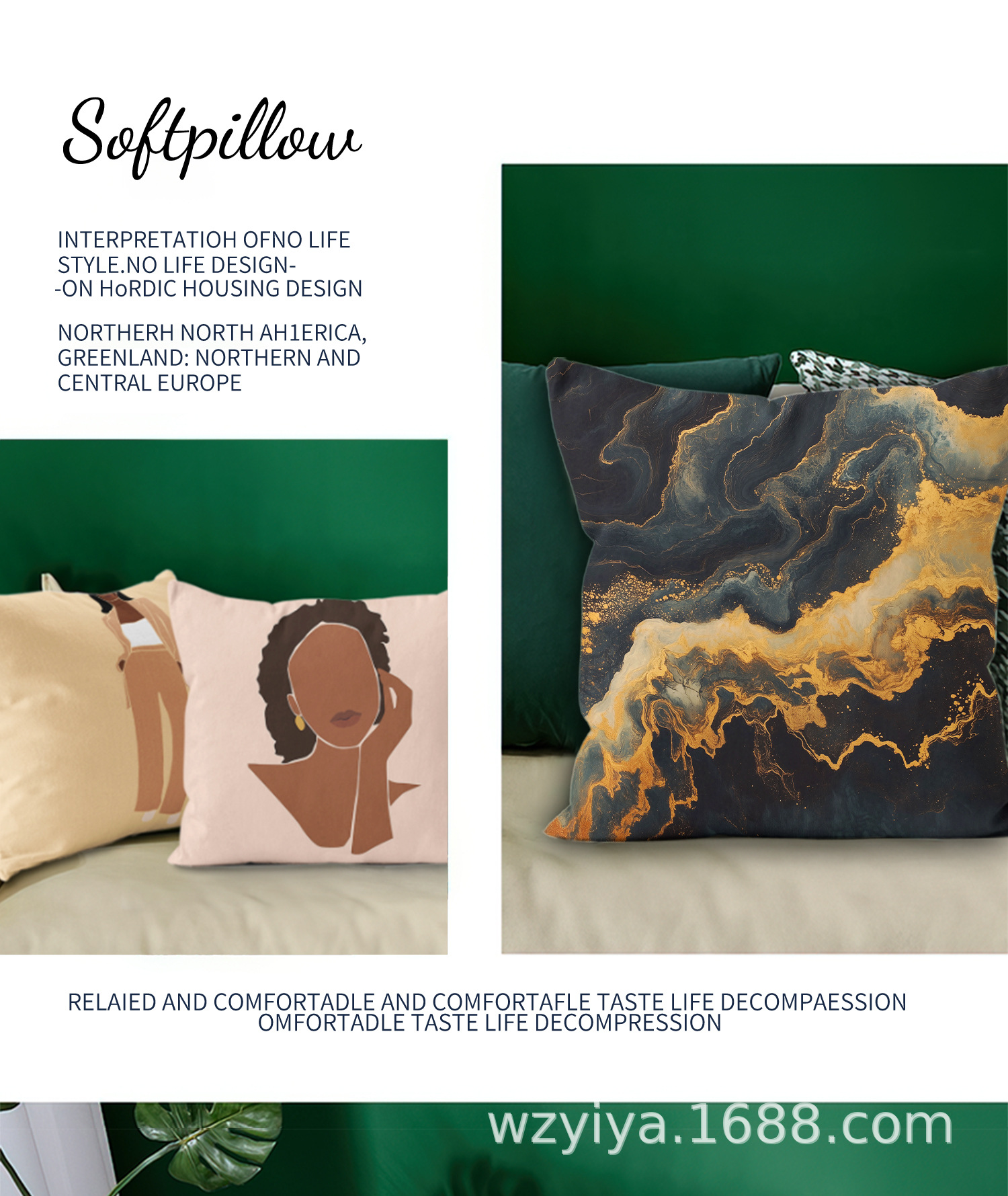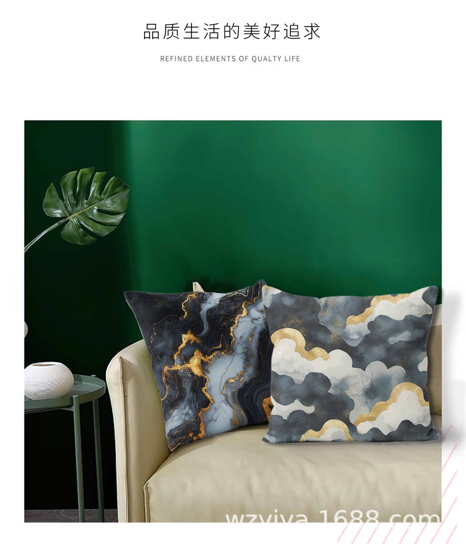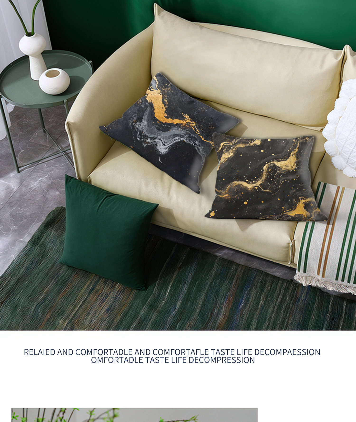 Luz de lujo blanco y negro impresión dorada almohada de estampado sofá dormitorio cama de cabecera almohada sin cojín central de automóvil