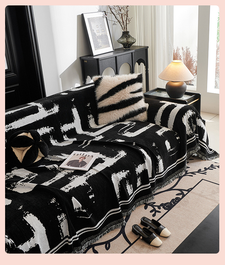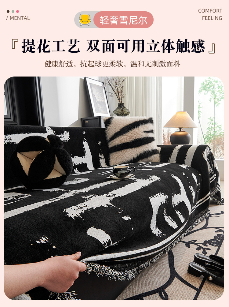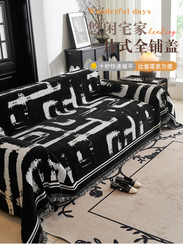 Blanco y negro nieve sofá cubierta antideslizante anti-sucio anti-gato arañazo toalla de sofá de una sola pieza de cuatro estaciones cubierta de sofá universal