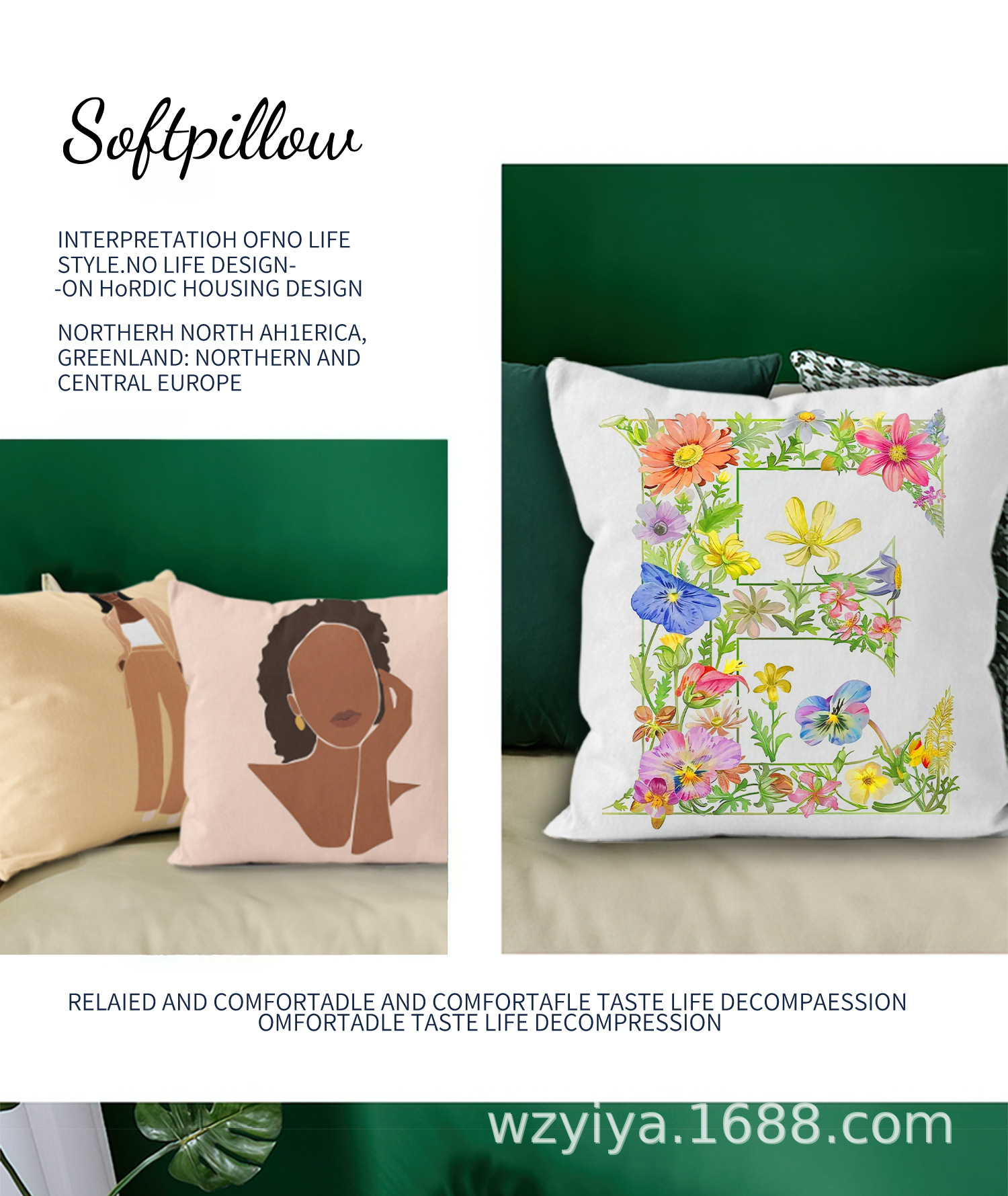 Flores letras inglesas almohada simple sofá moderno cojín de respaldo decoración desmontable cama cuadrada almohada de cabeza lavable