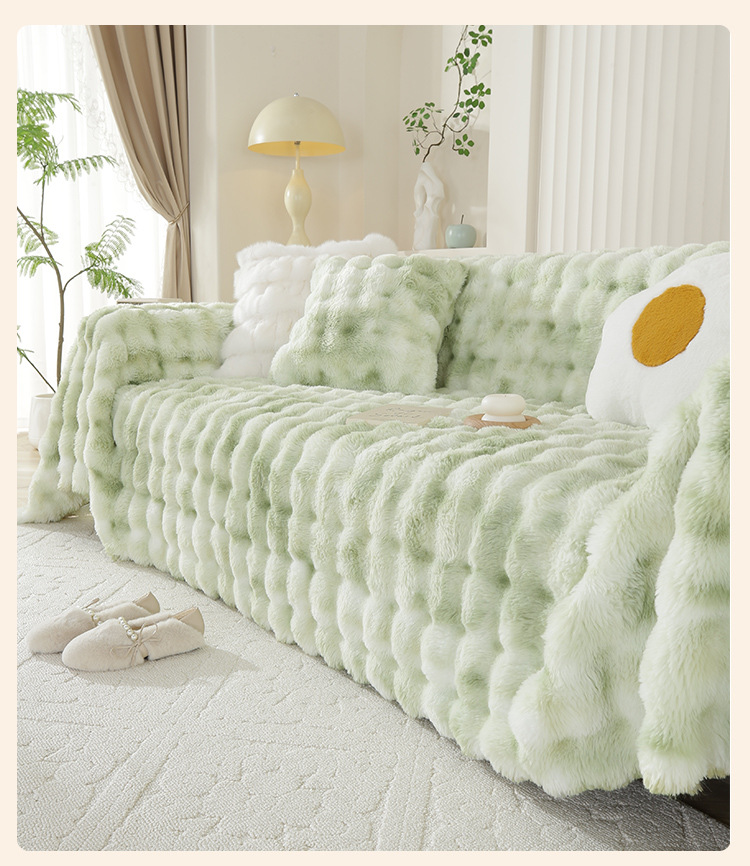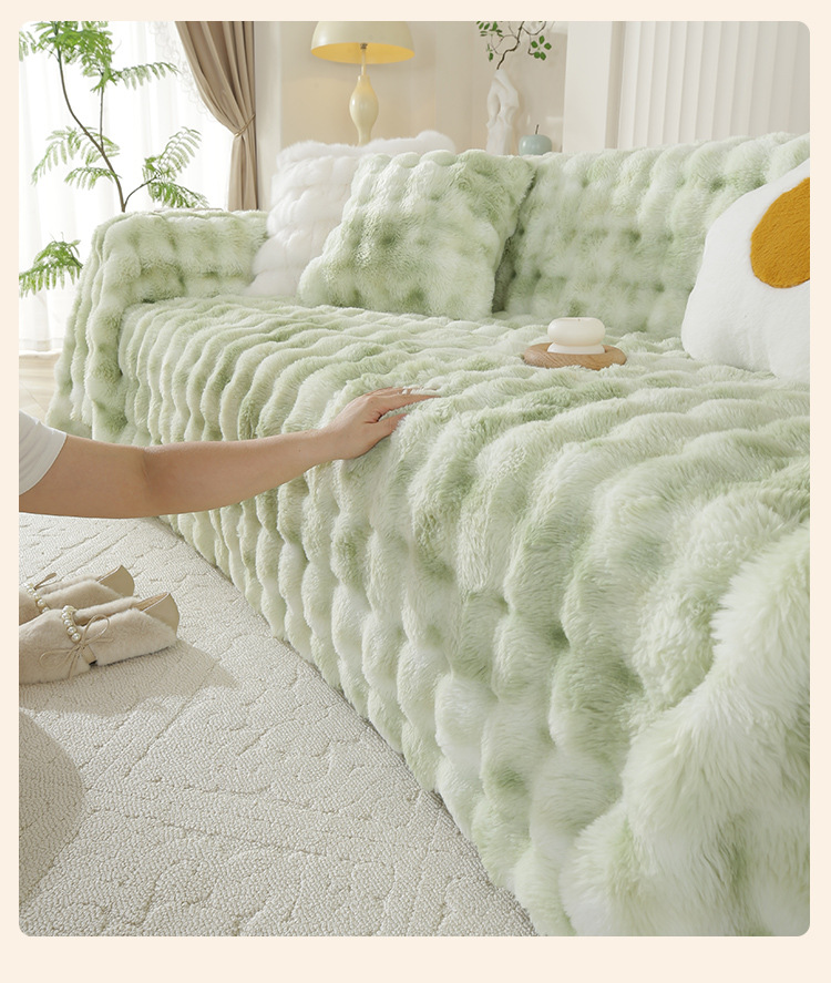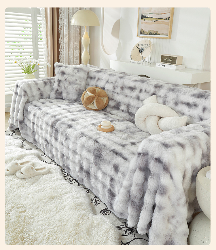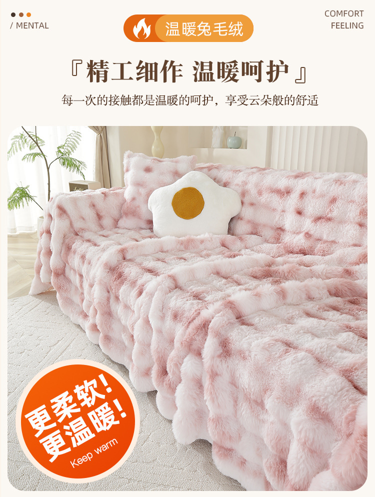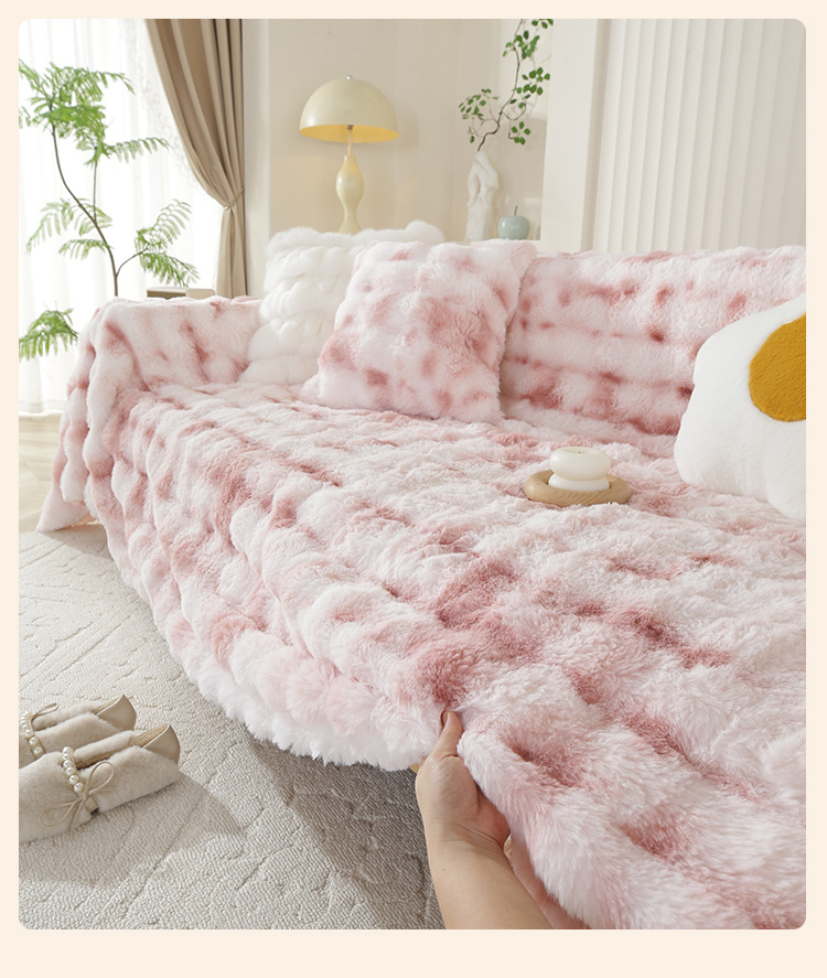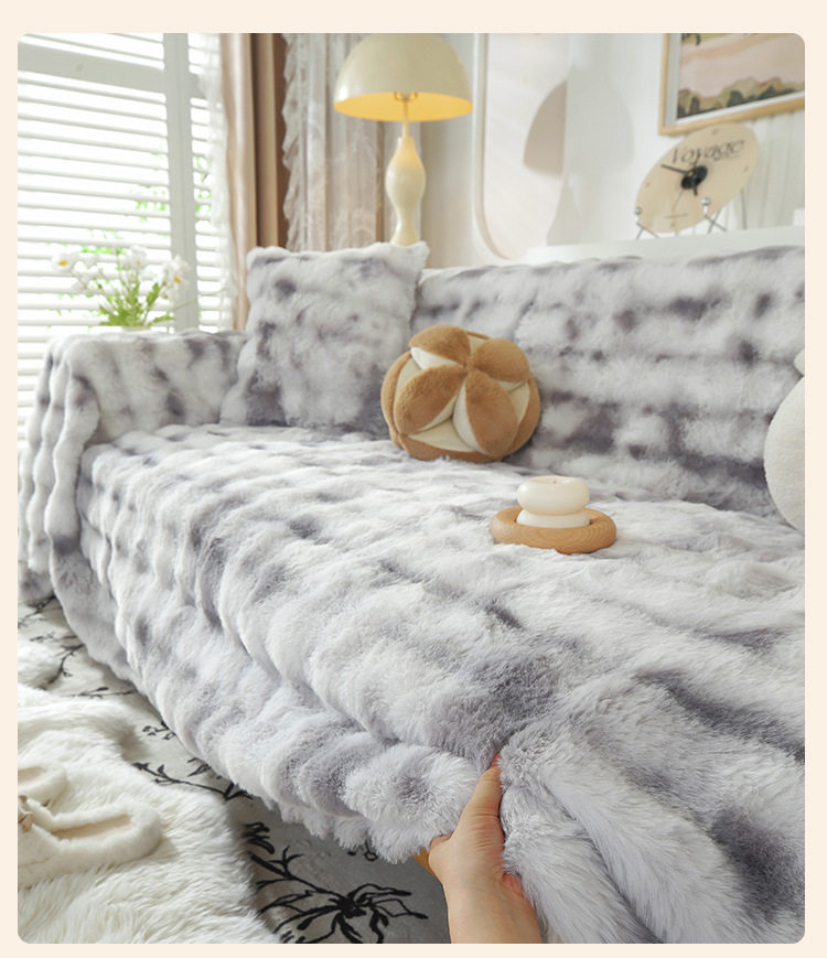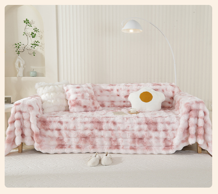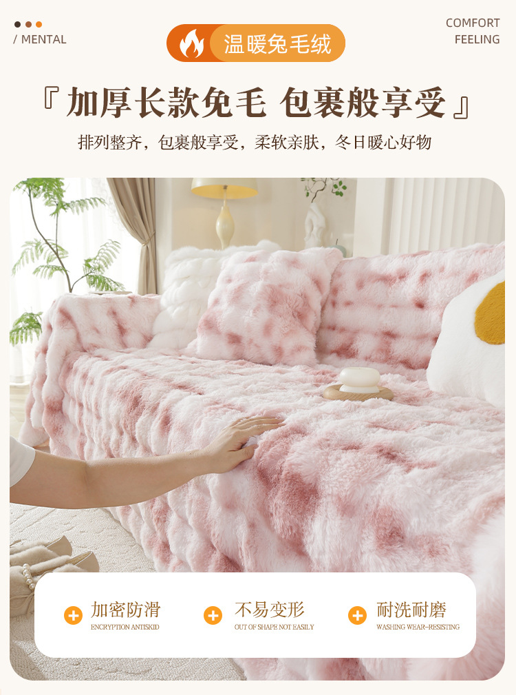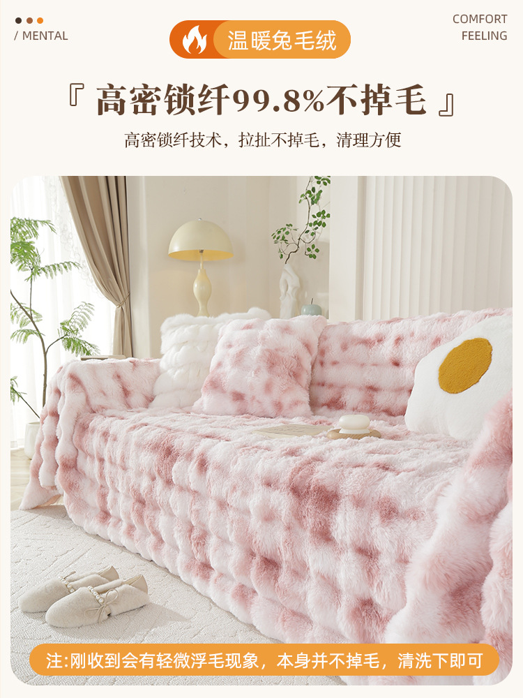 Invierno peluche engrosado toalla de sofá con dopamina conejo peludo de red roja cojín universal cómodo