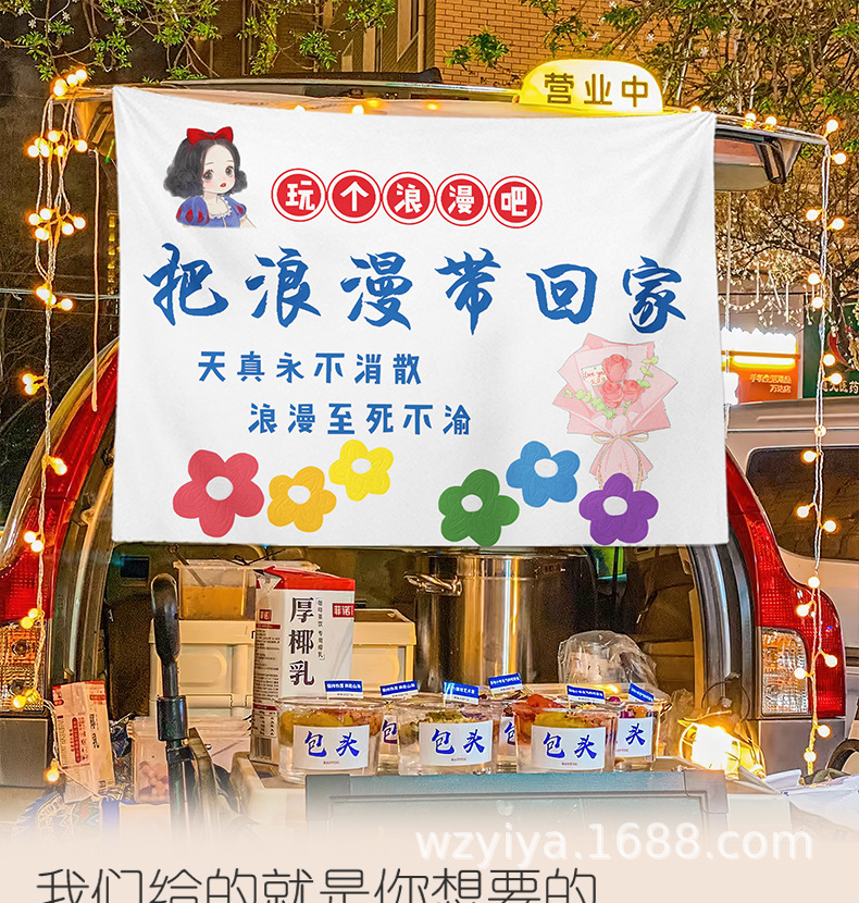 Fiesta de flores, mercado nocturno de comida, ficha de tela, cartel de calle, ficha de tela de publicidad