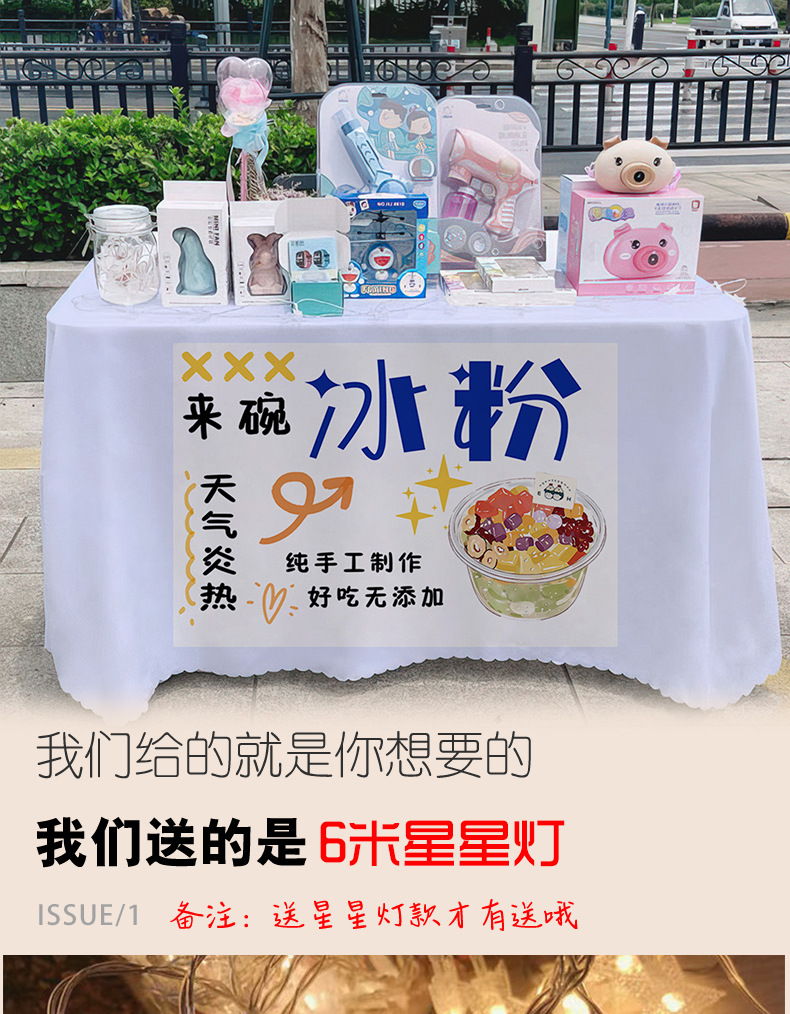 Mantel de polvo de hielo hecho a mano, letrero, mercado nocturno gourmet, puesto, carrito de tela, tela publicitaria, mantel, tela promocional