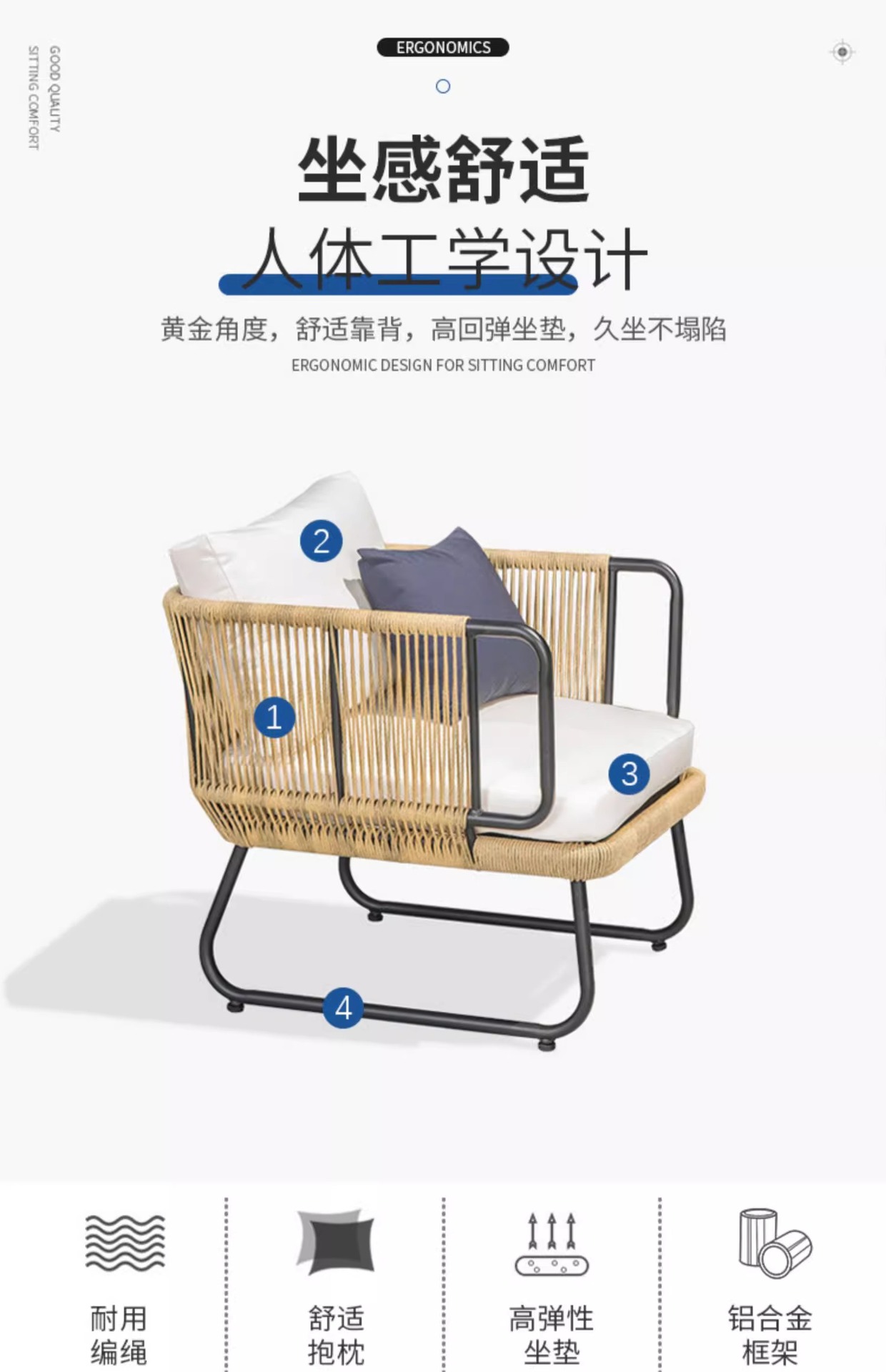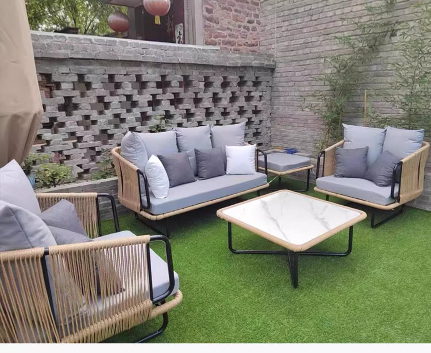Sofá al aire libre, silla de caña, patio, protección solar, jardín, balcón, silla de ocio, sofá al aire libre, mesa de té, combinación impermeable