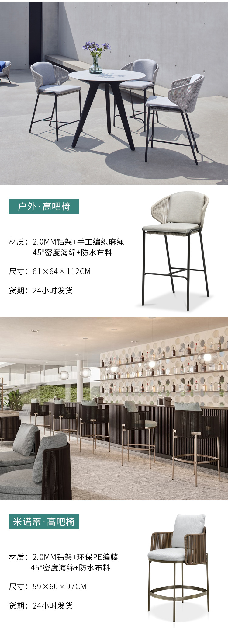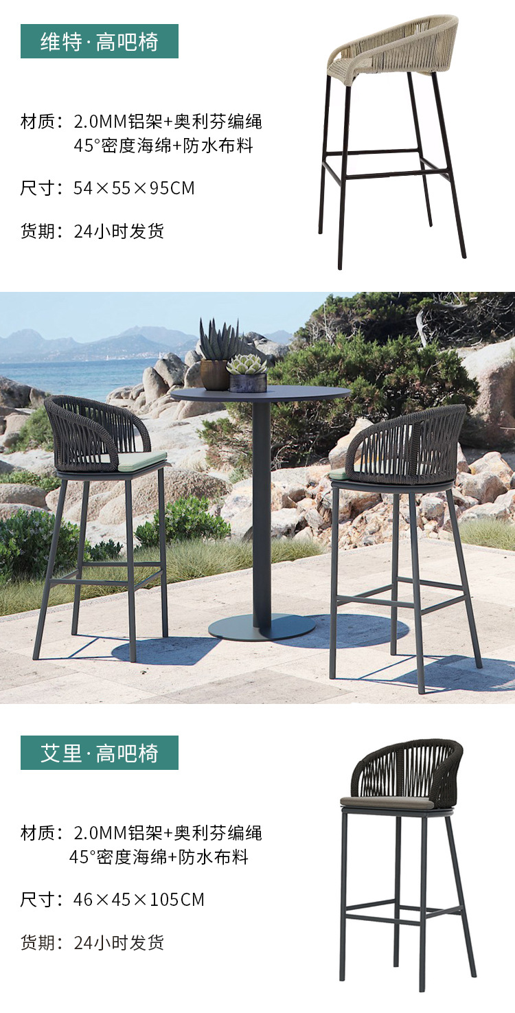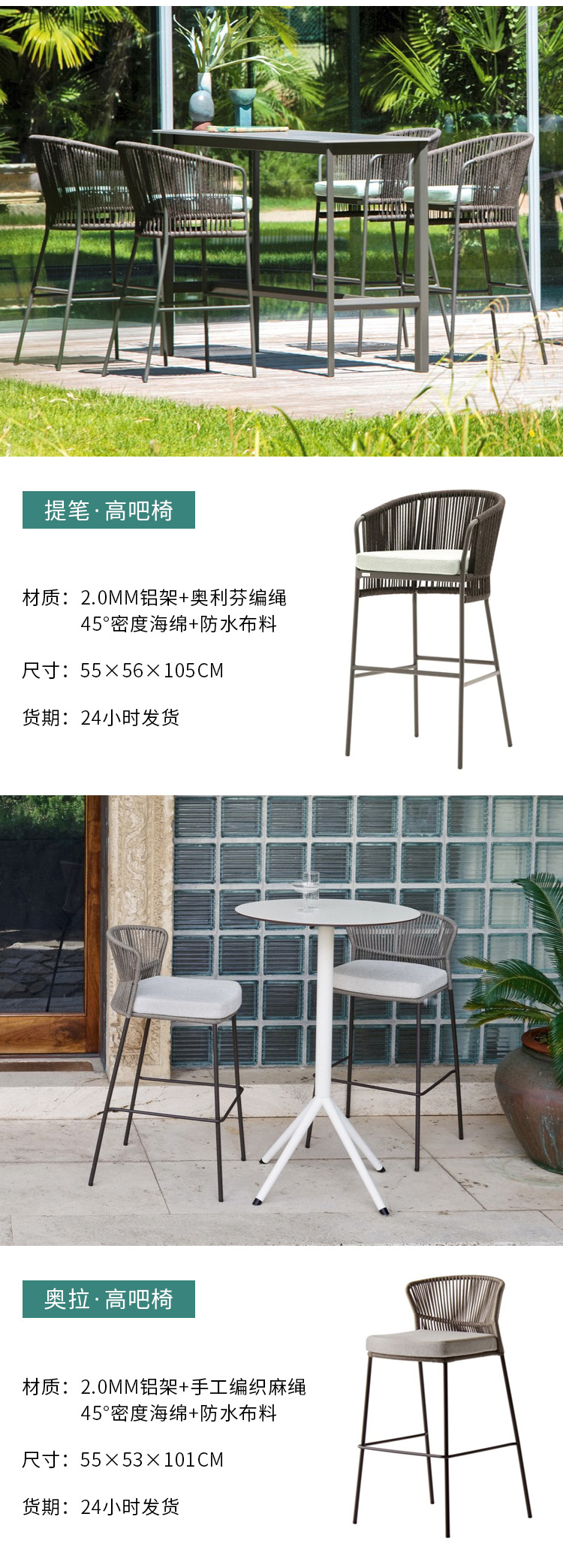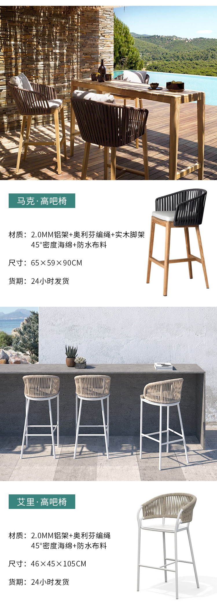 Silla de Bar de ratán al aire libre nórdico Silla de Bar de alta gama al aire libre Villa bar al aire libre B & B taburete de bar Silla de Bar de madera maciza