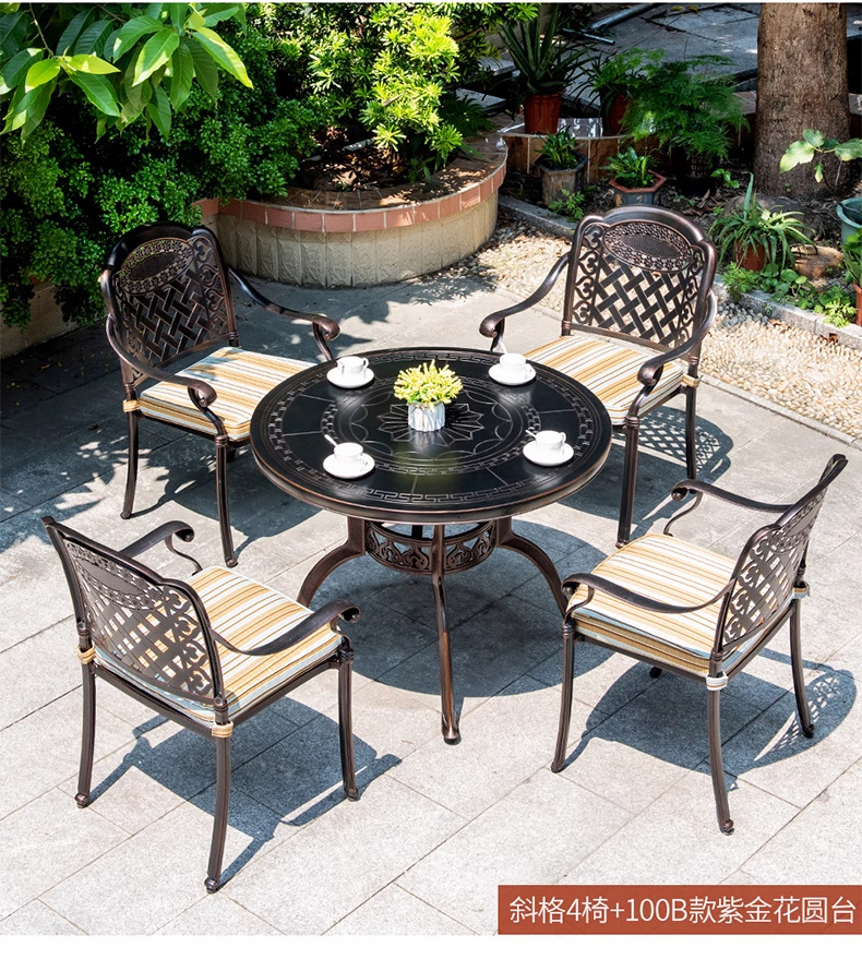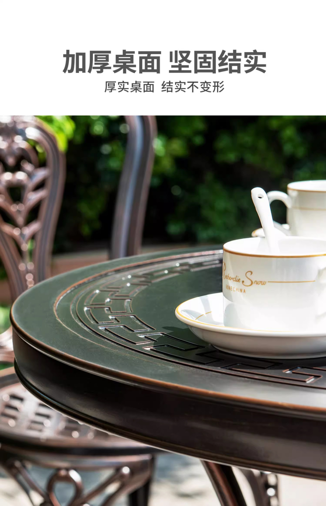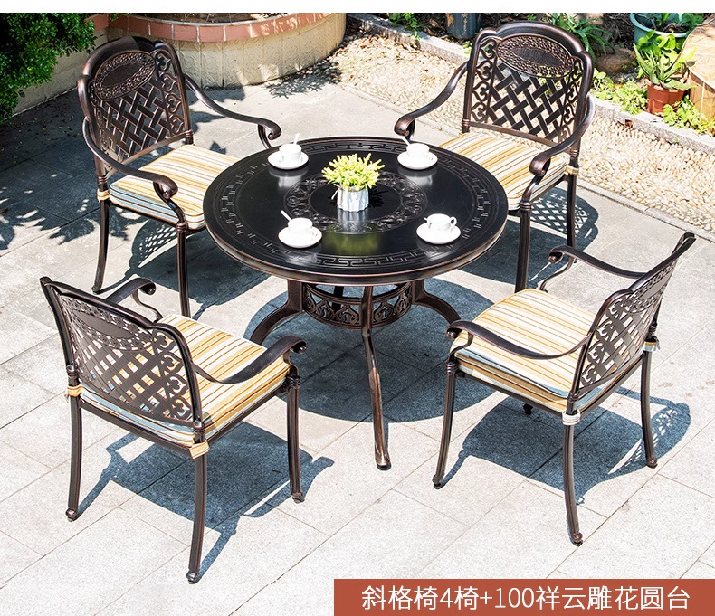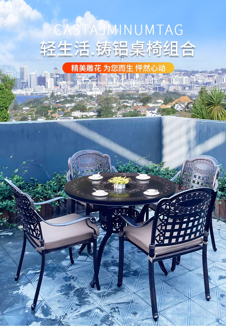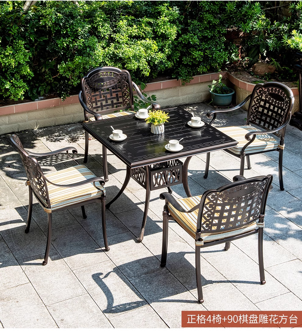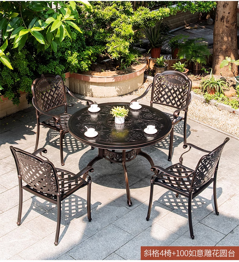 Mesa y silla al aire libre combinación de aluminio fundido patio jardín al aire libre impermeable y protector solar hierro forjado al aire libre mesa y silla de ocio conjunto