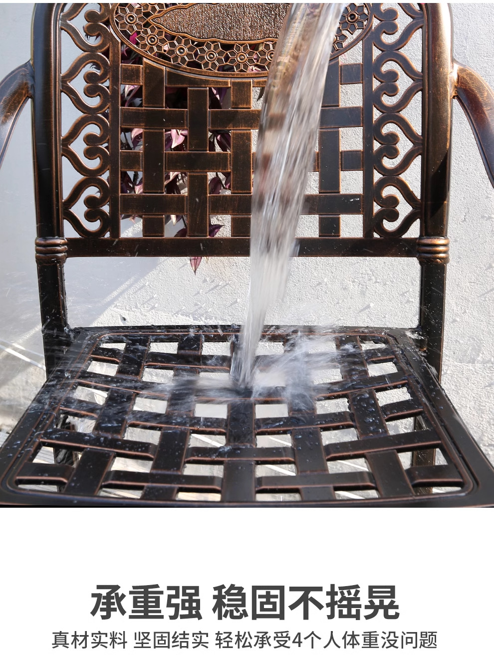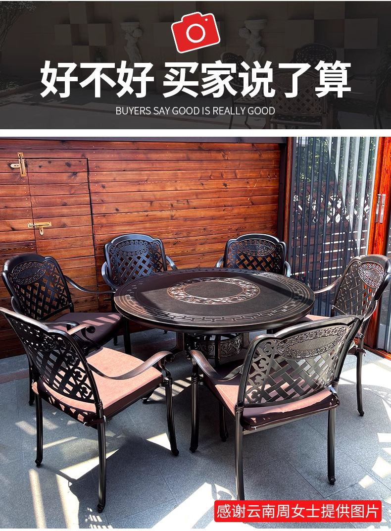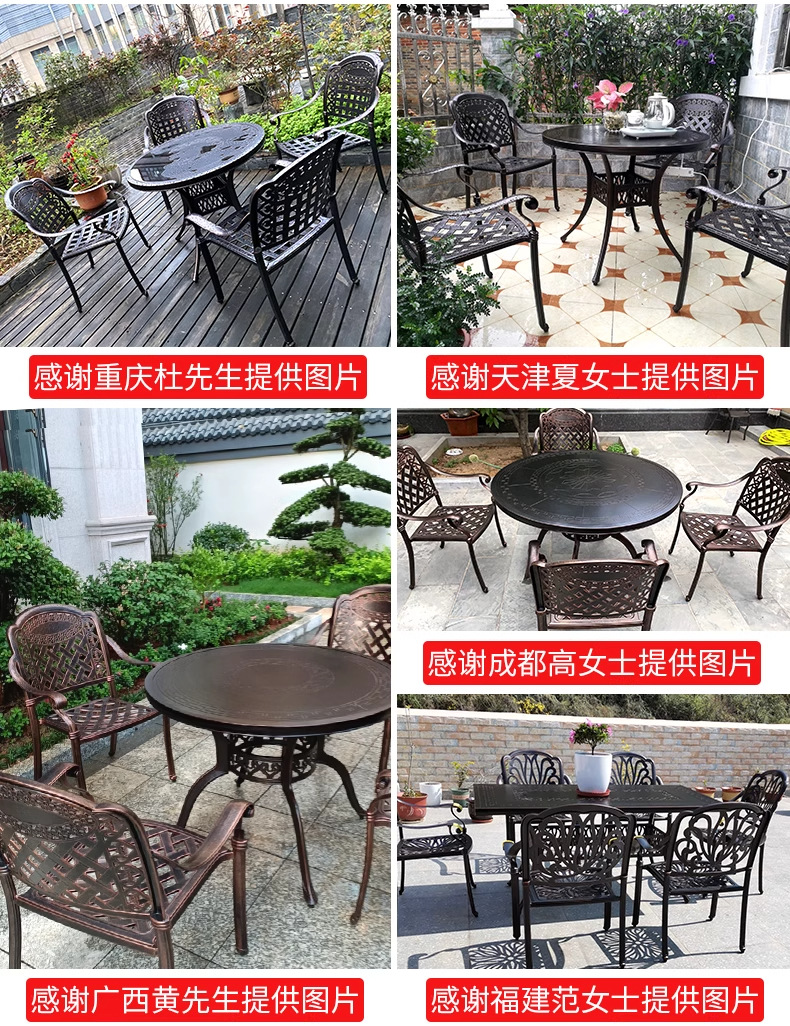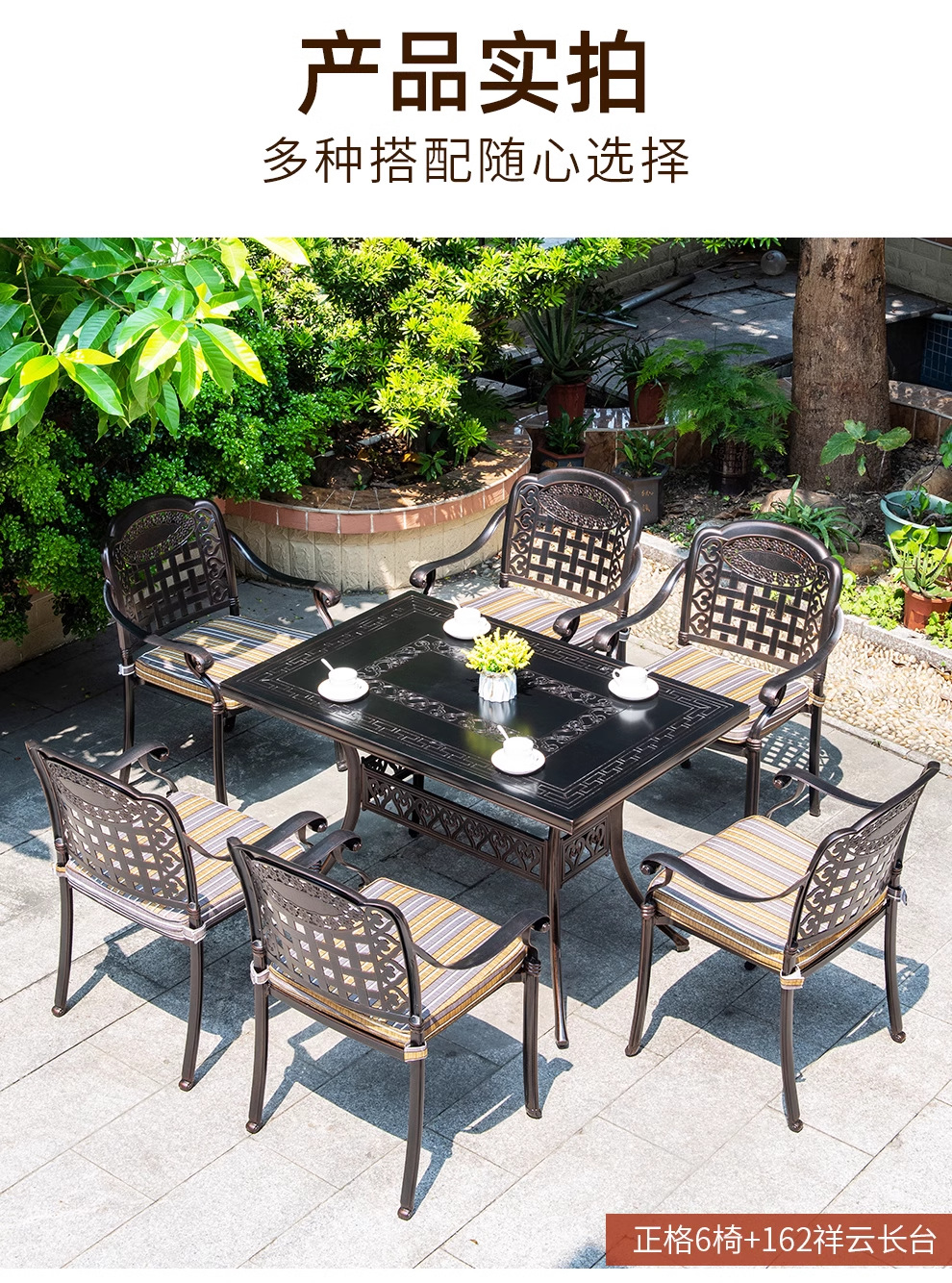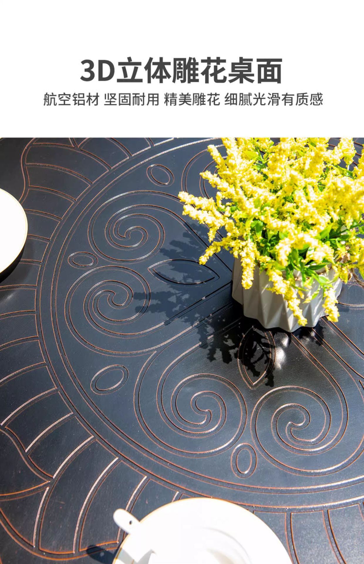 Mesa y silla al aire libre combinación de aluminio fundido patio jardín al aire libre impermeable y protector solar hierro forjado al aire libre mesa y silla de ocio conjunto
