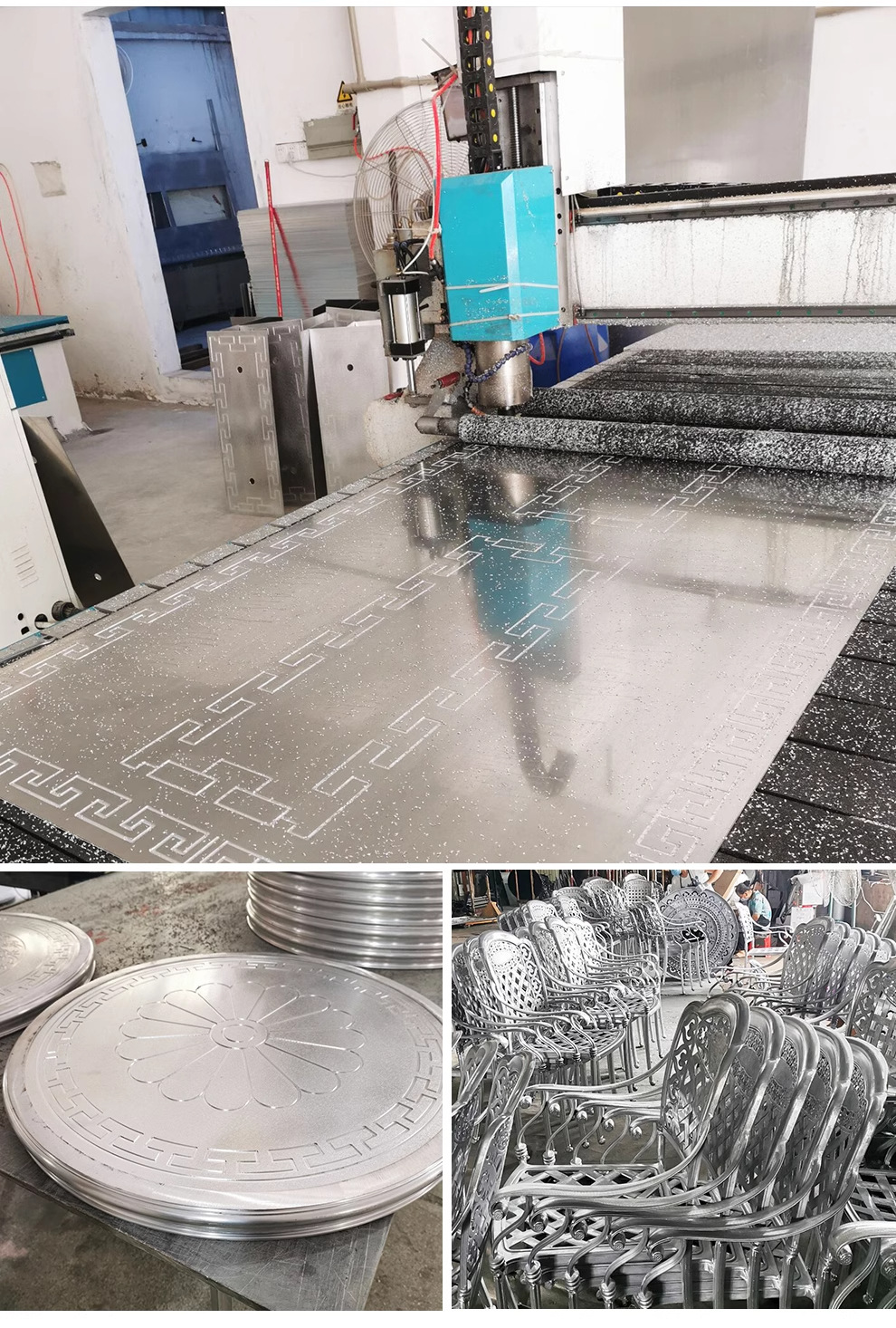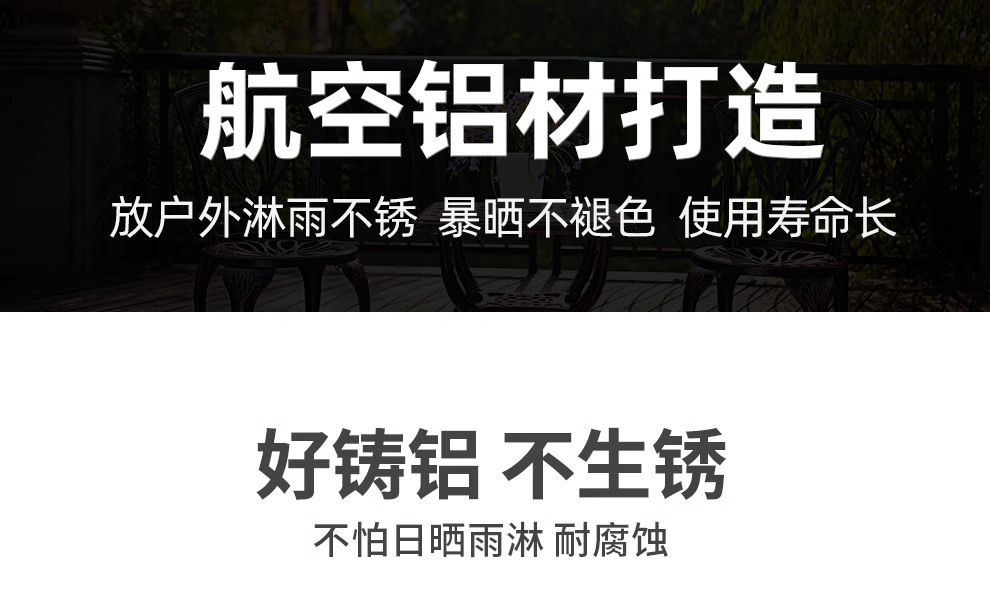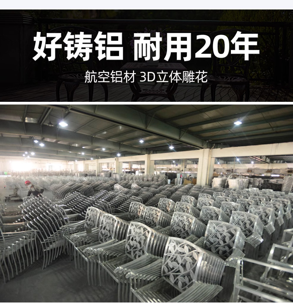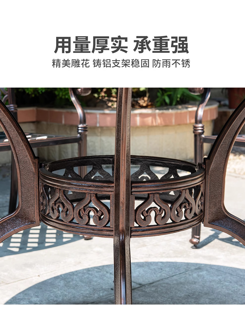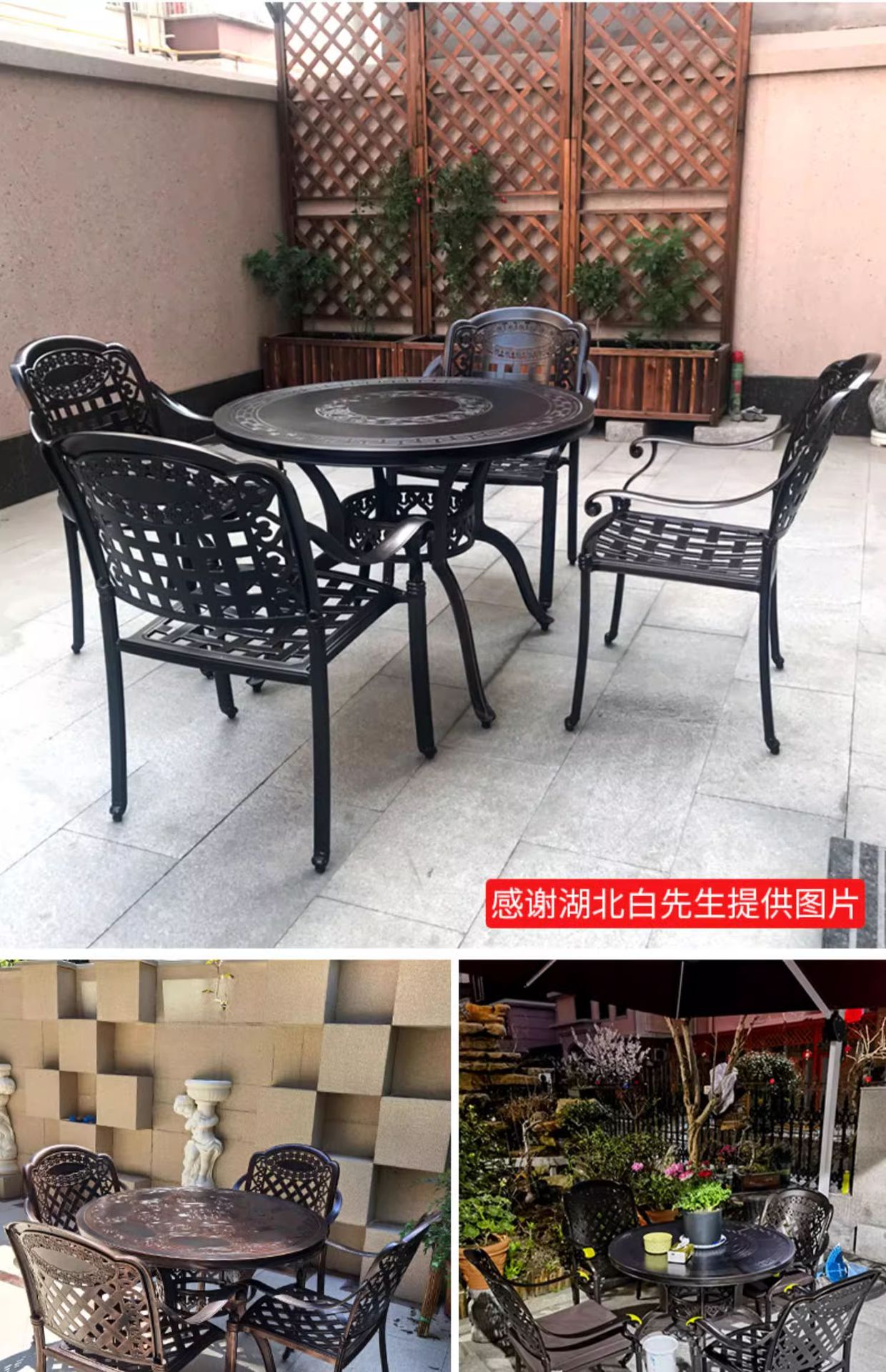 Mesa y silla al aire libre combinación de aluminio fundido patio jardín al aire libre impermeable y protector solar hierro forjado al aire libre mesa y silla de ocio conjunto