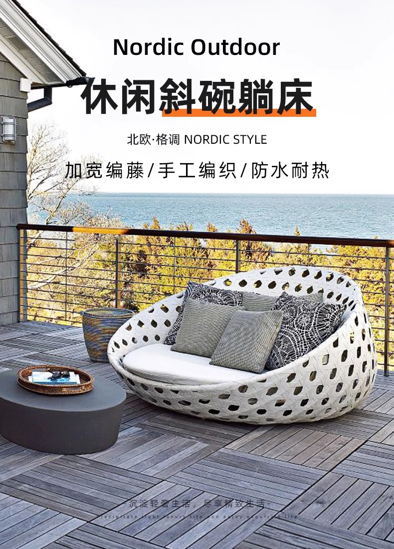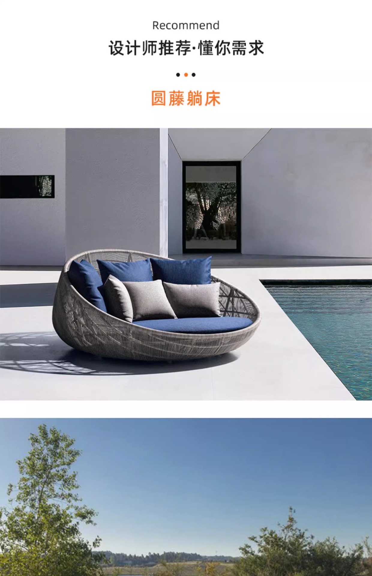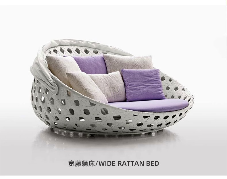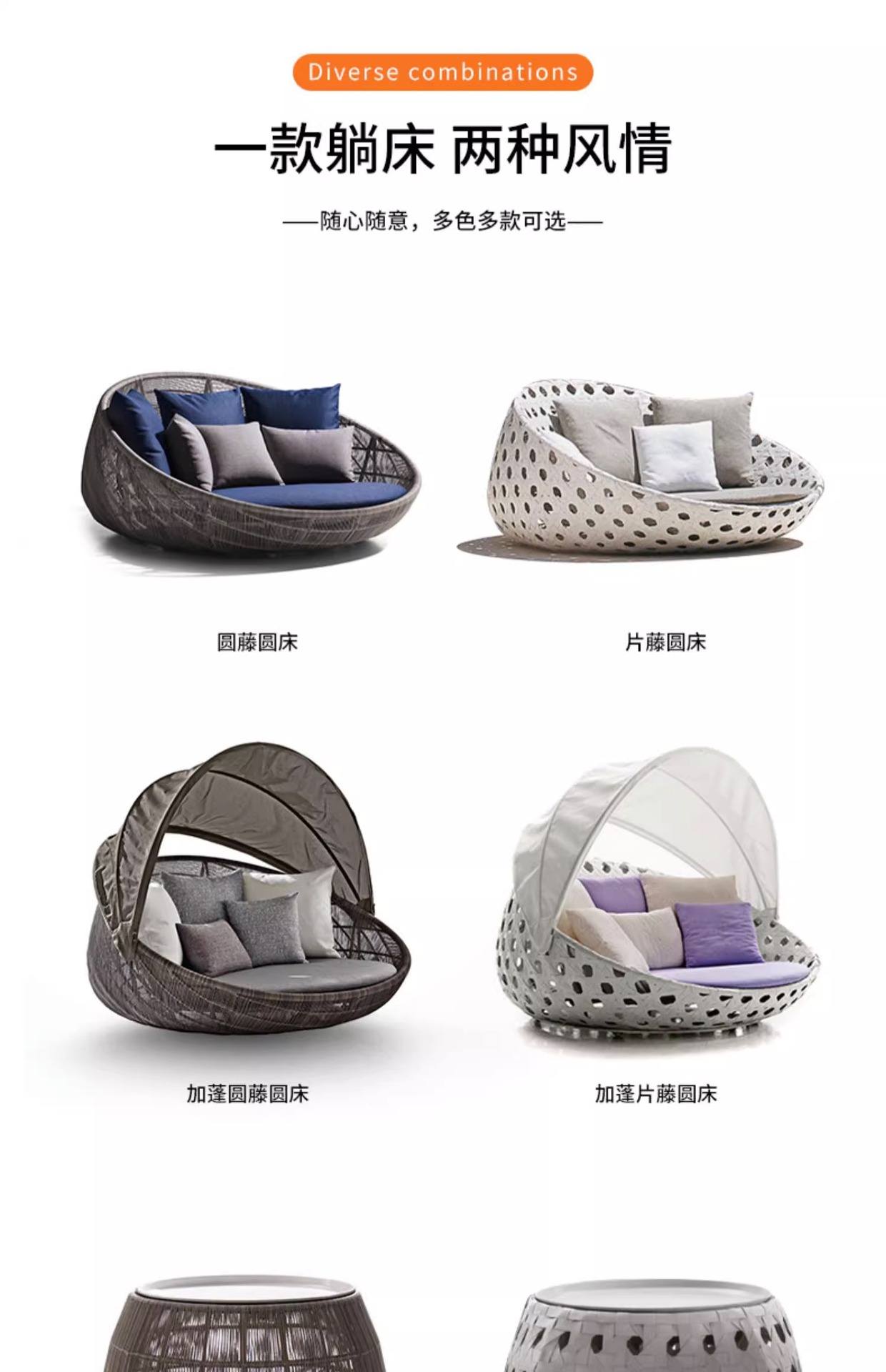 Al aire libre tejido de ratán cama redonda muebles piscina impermeable protección solar cama cama de hotel balcón ocio perezoso gran combinación de cama redonda