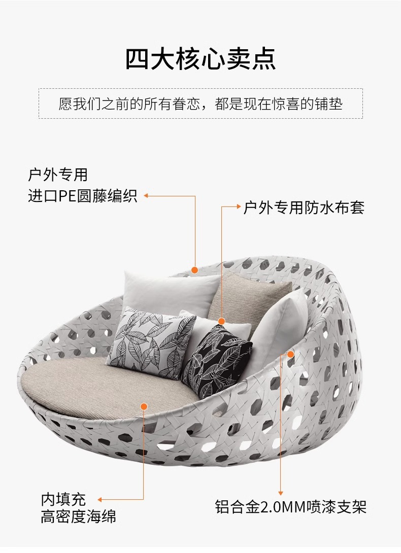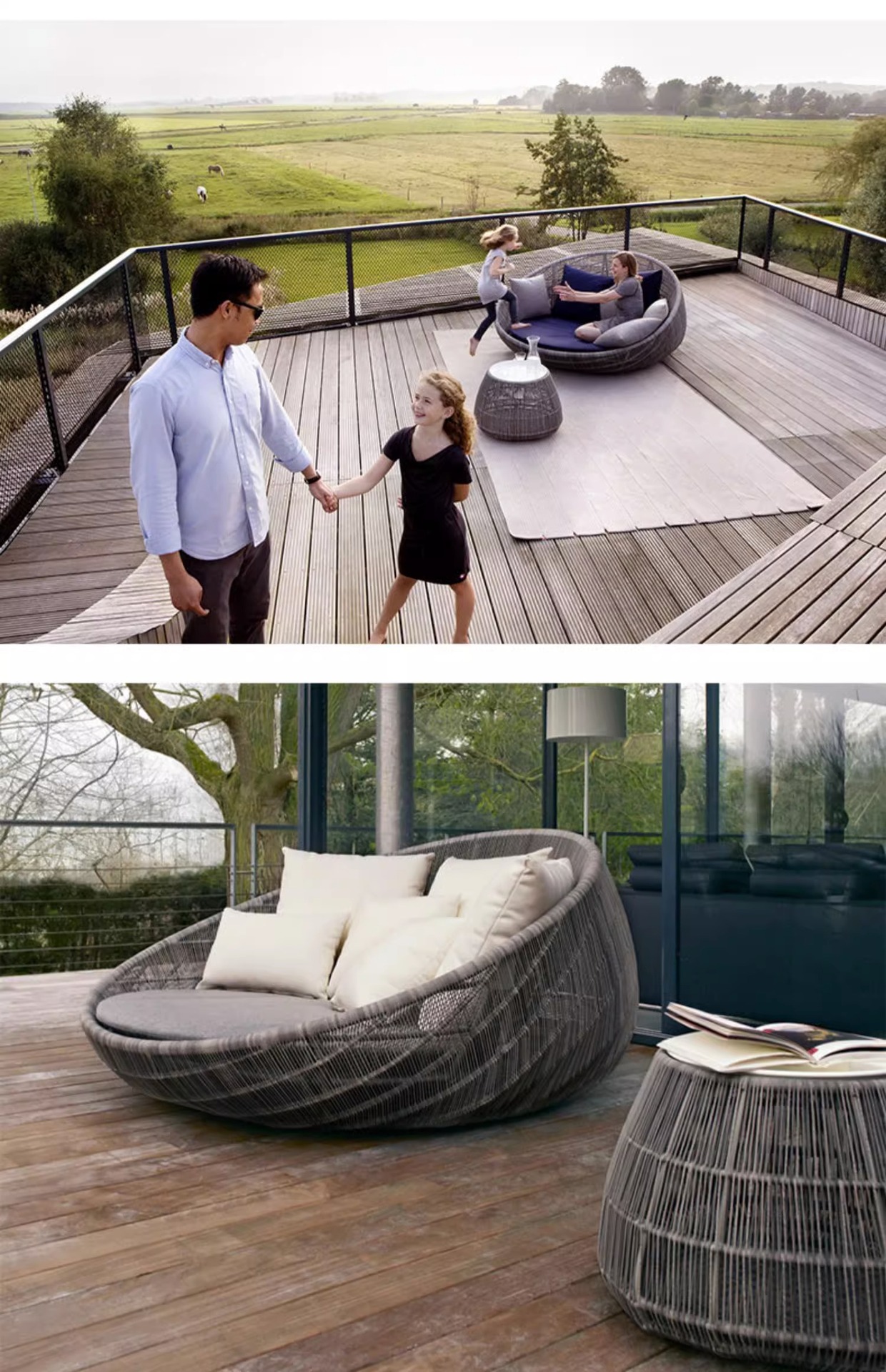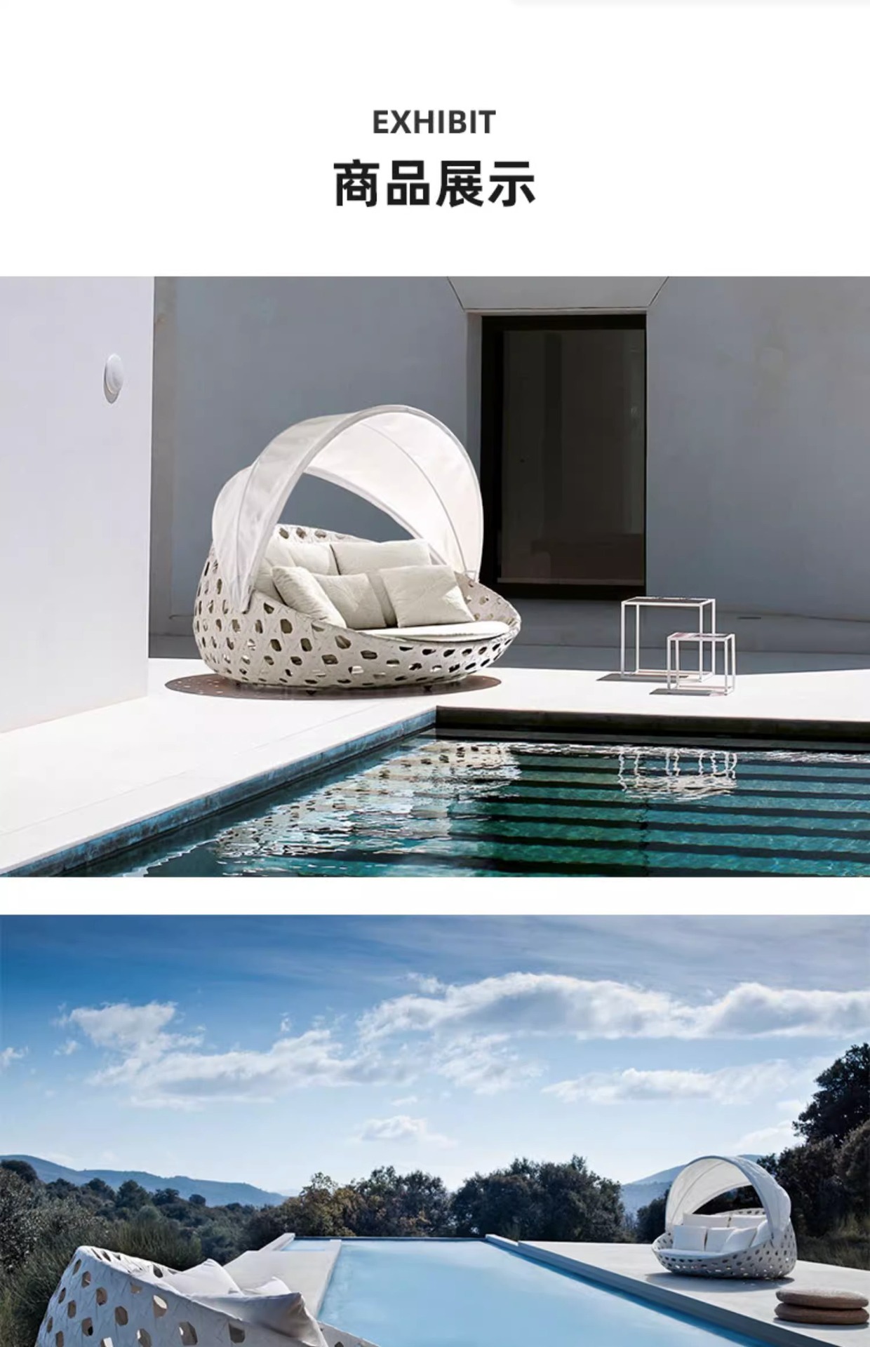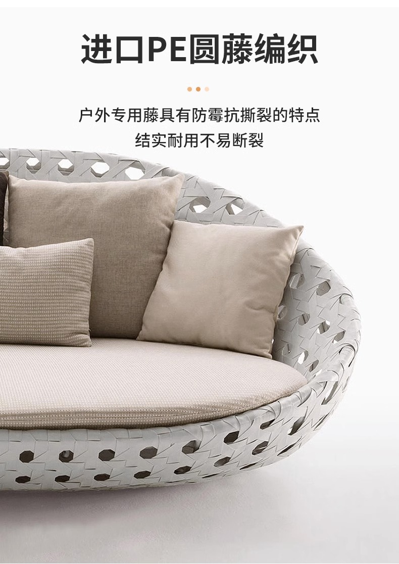 Al aire libre tejido de ratán cama redonda muebles piscina impermeable protección solar cama cama de hotel balcón ocio perezoso gran combinación de cama redonda