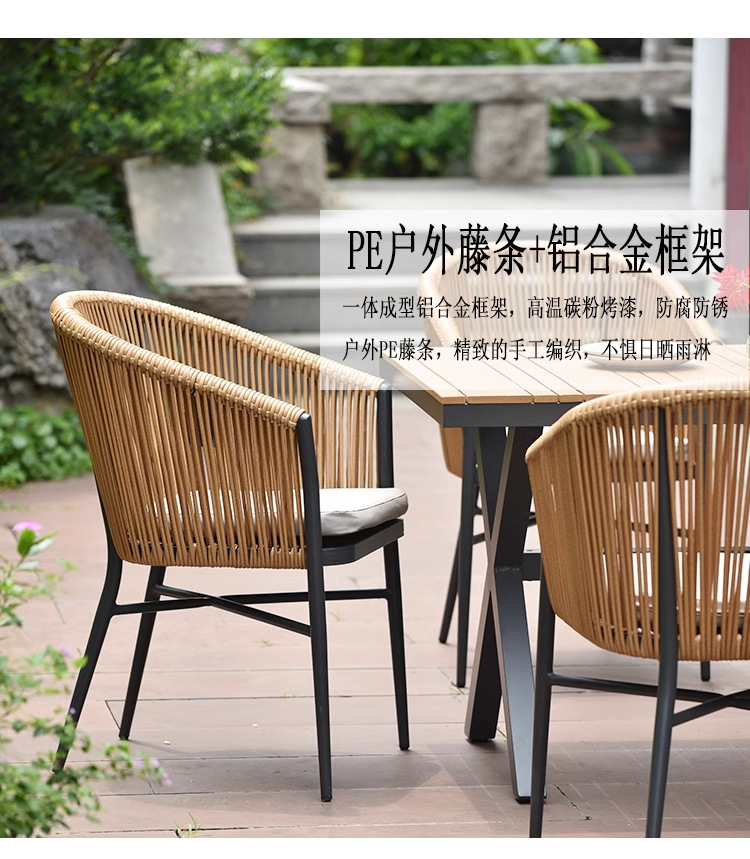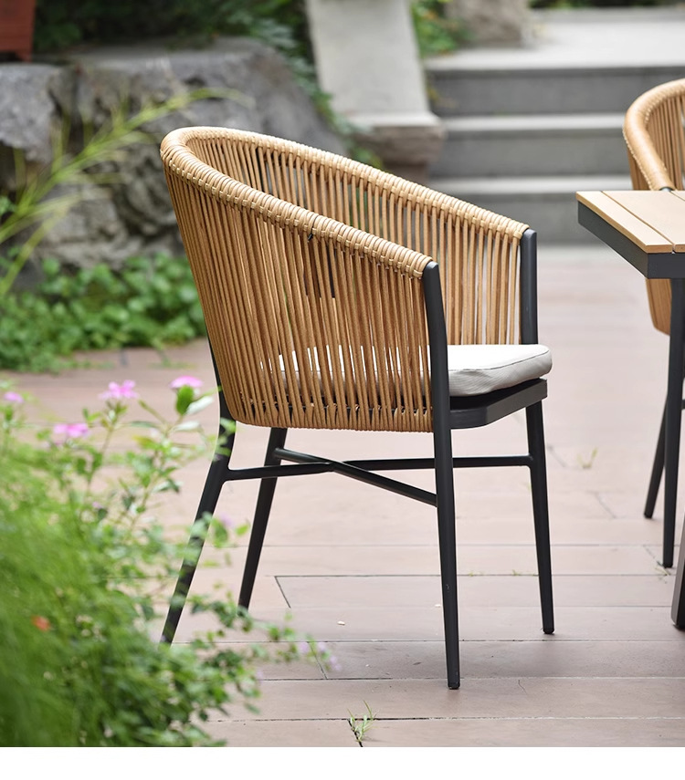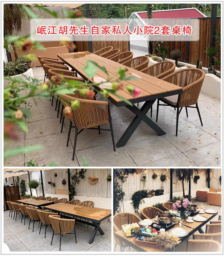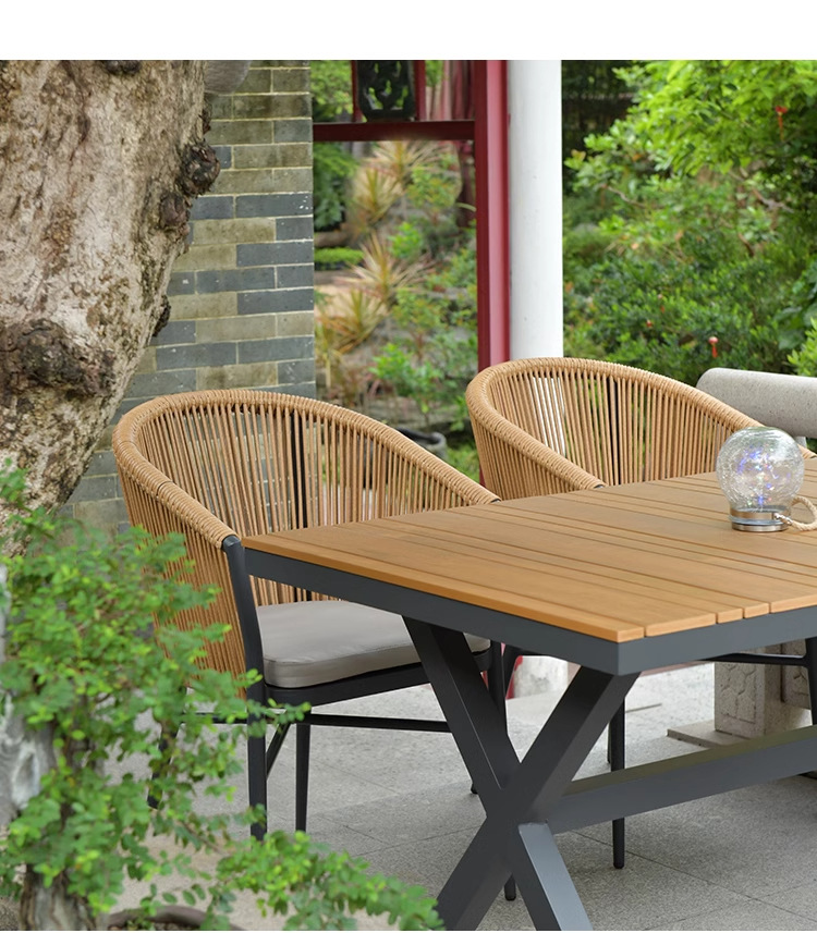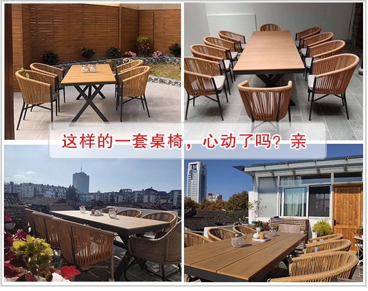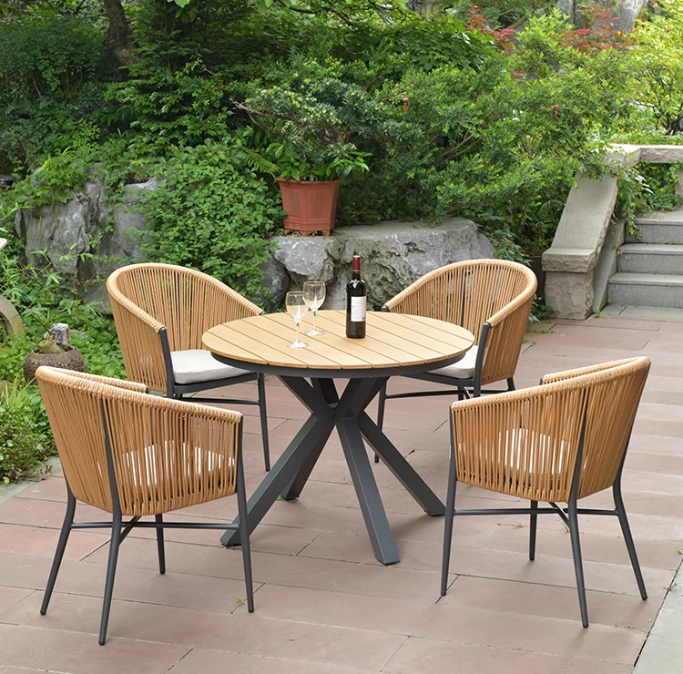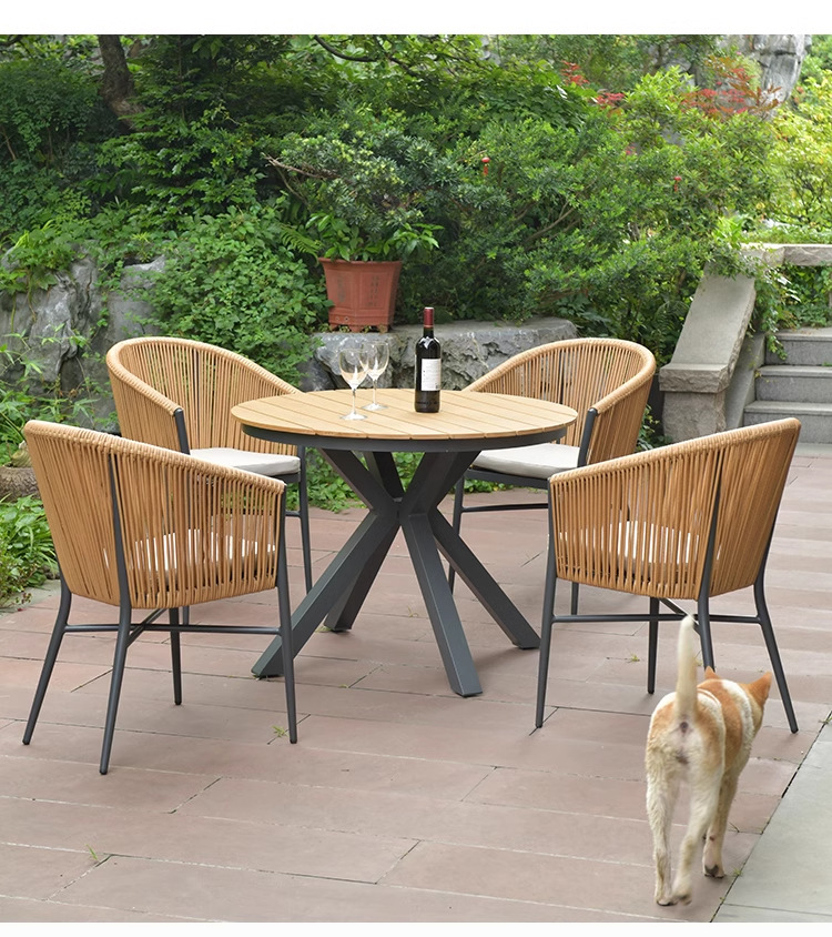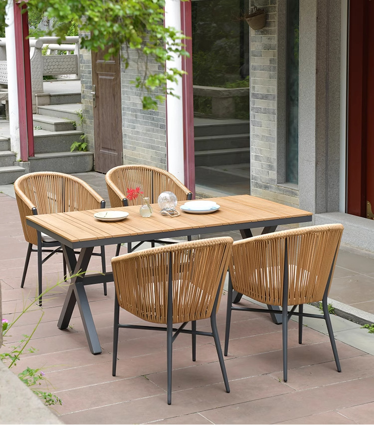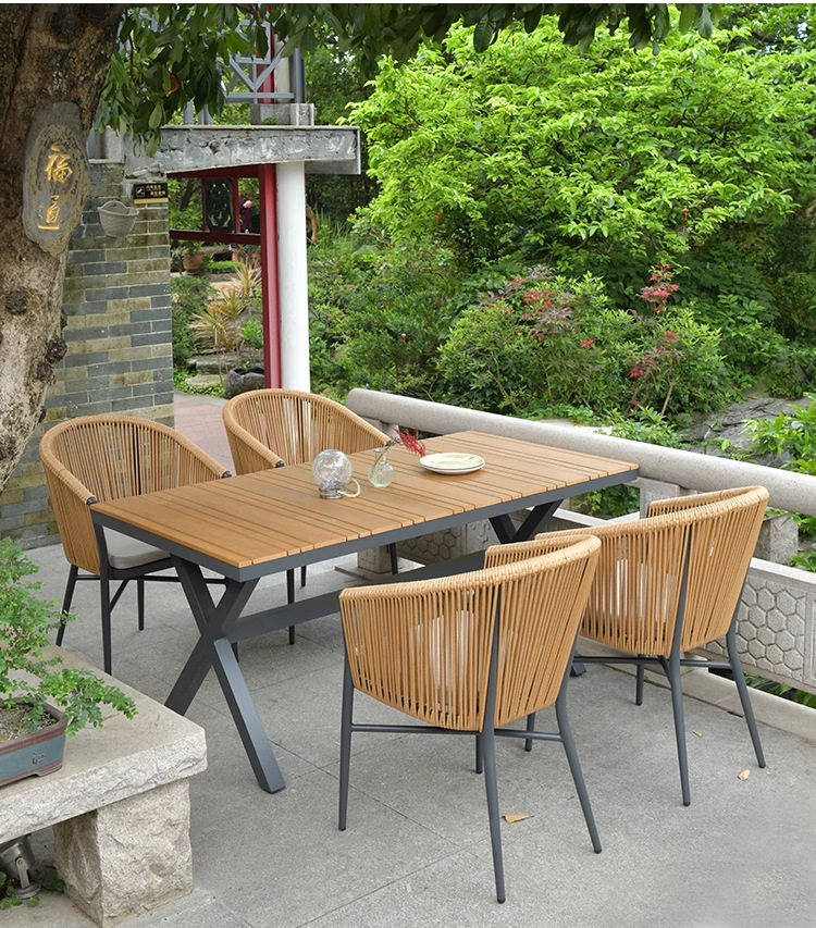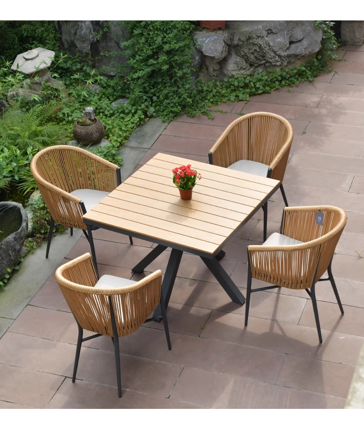 Mesa y silla de patio al aire libre, madera plástica, casa nórdica, patio al aire libre, jardín al aire libre, balcón, combinación de terraza de ocio