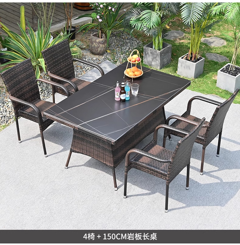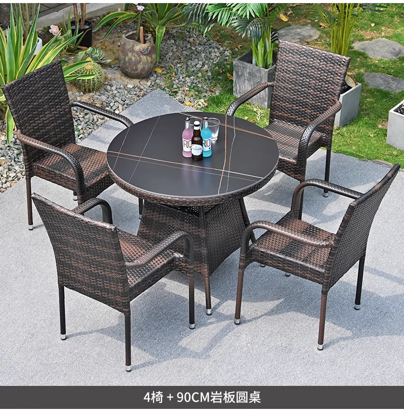 Mesas y sillas al aire libre Patio al aire libre Terraza al aire libre Impermeable Protector solar Silla de ratán Combinación de alojamiento famoso Péndulo exterior Muebles de ocio