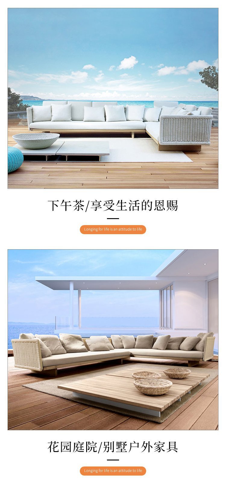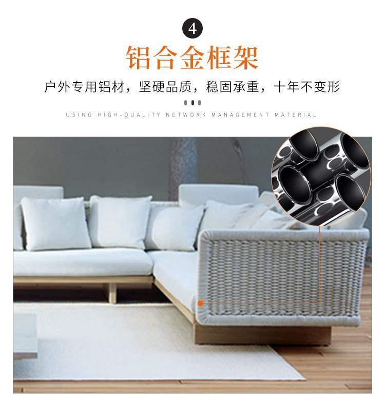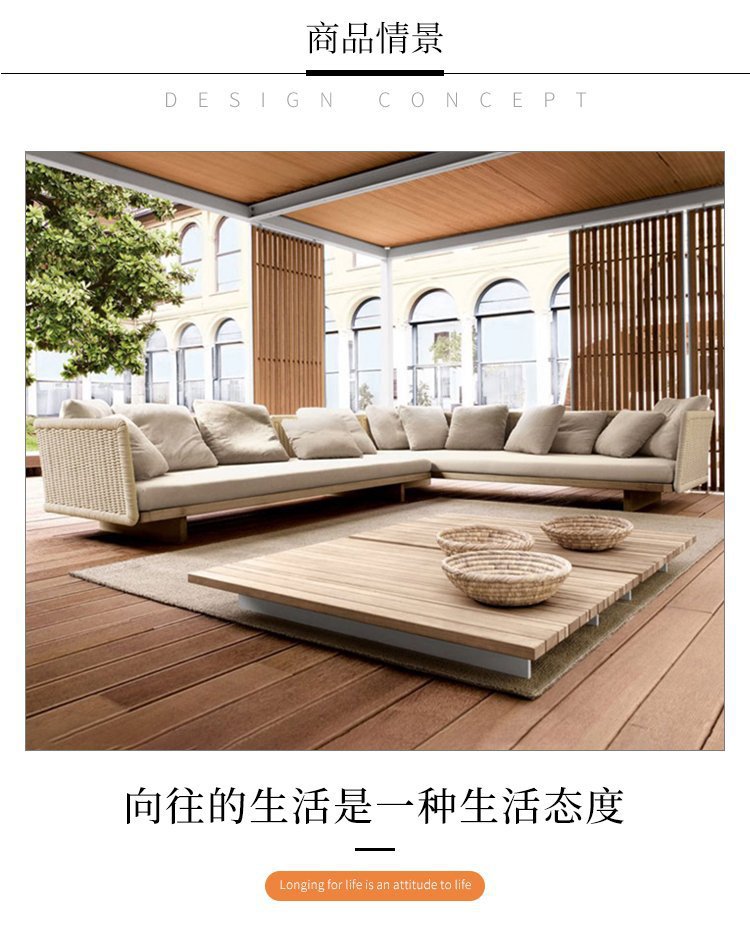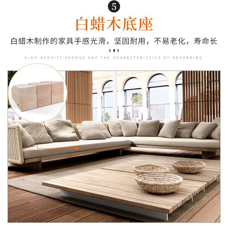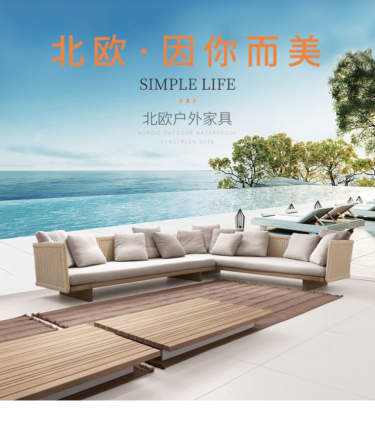 Sofá de jardín de ratán al aire libre Villa Garden B & B Sofá de teca nórdica simple al aire libre combinación de silla de mimbre tejida