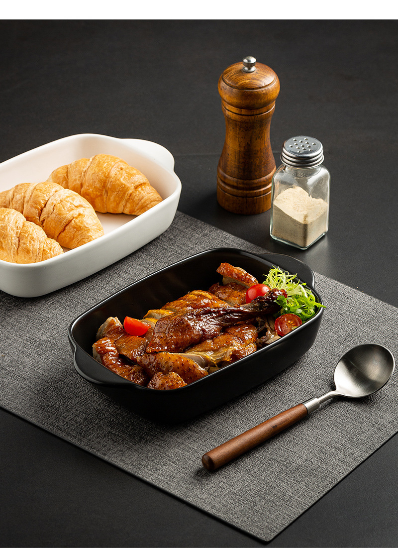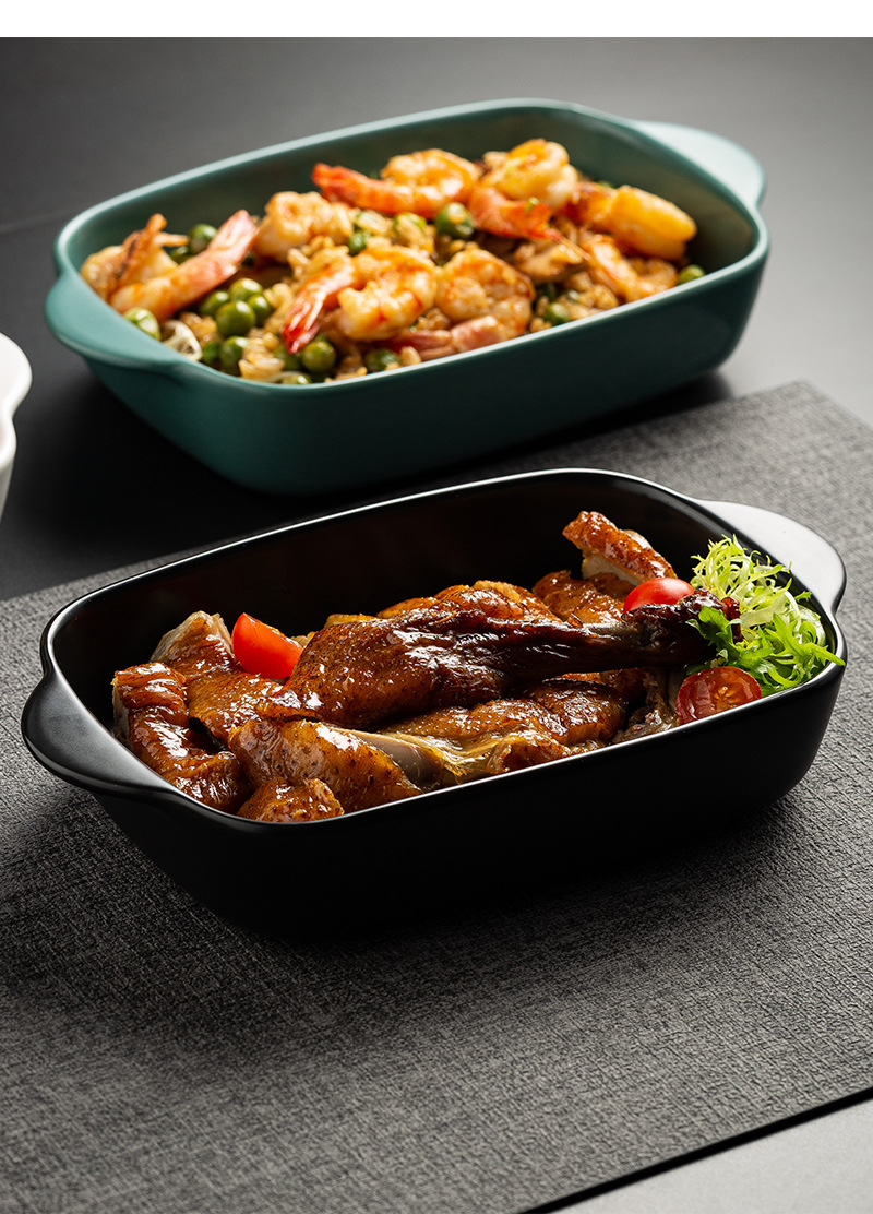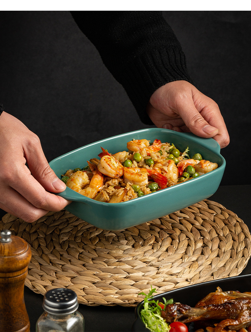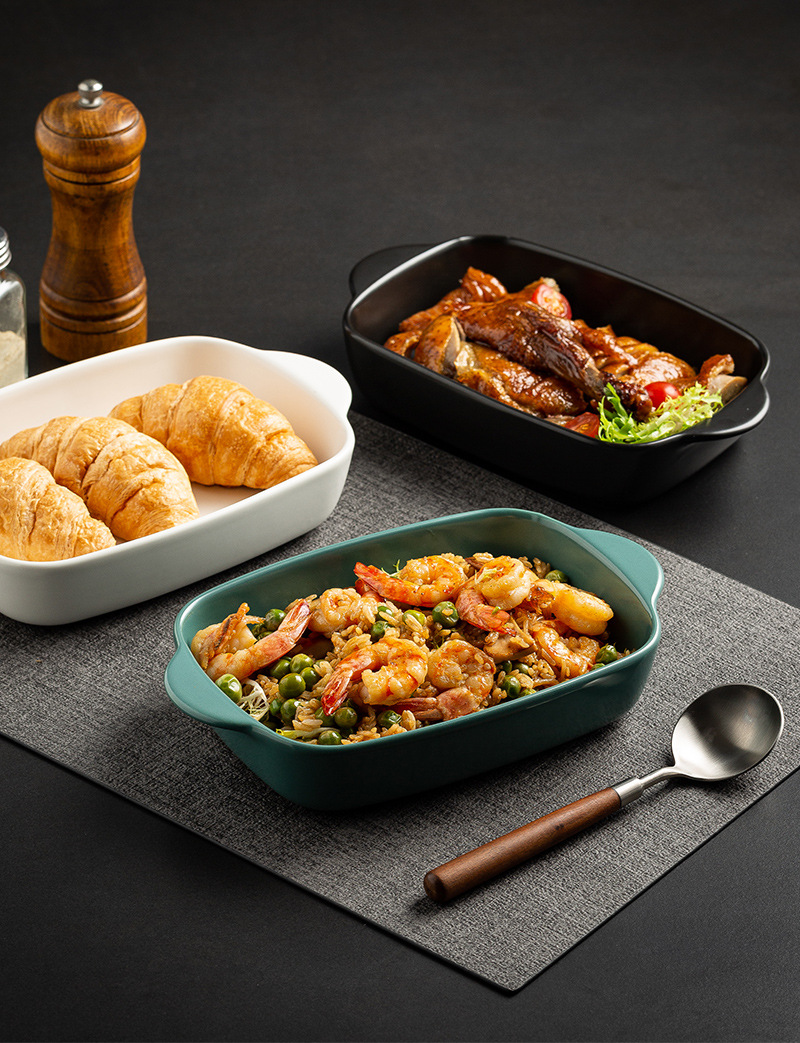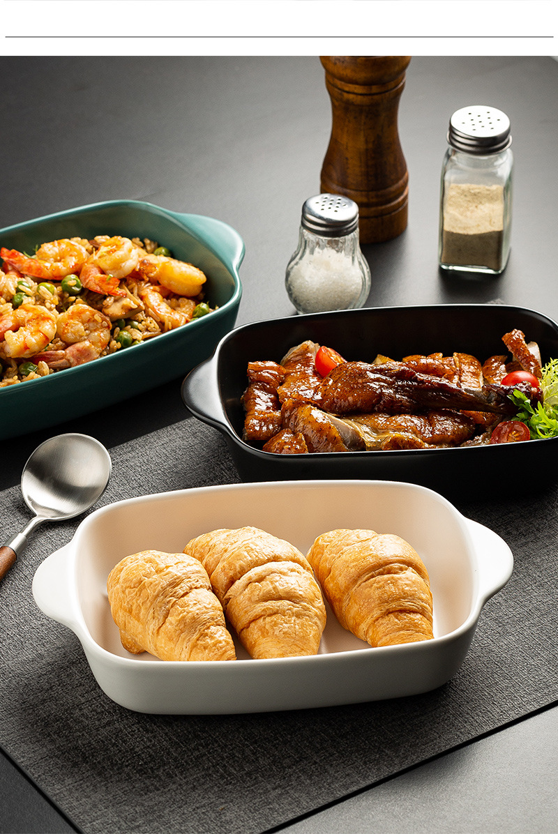 Plato de arroz al horno con queso de estilo nórdico Plato para hornear para el hogar Tazón para hornear binaural Horno rectangular de cerámica Plato para microondas