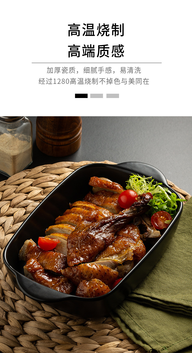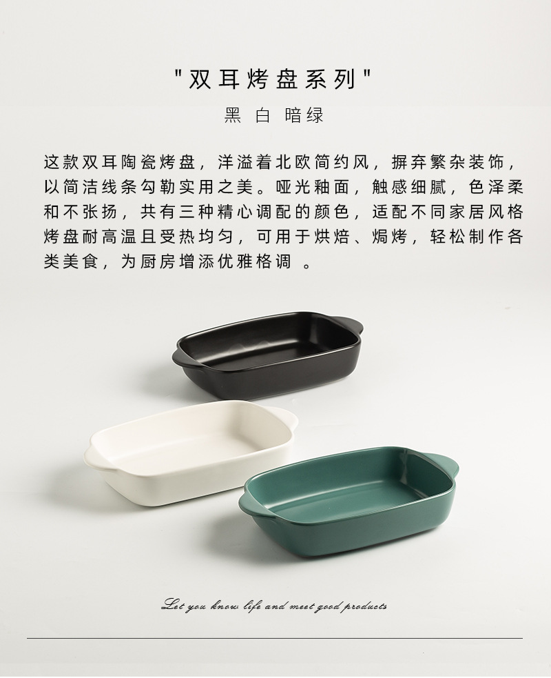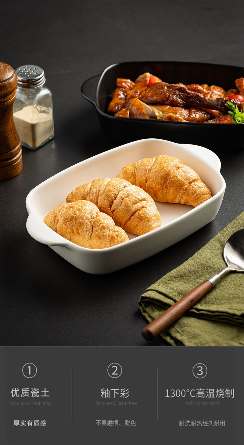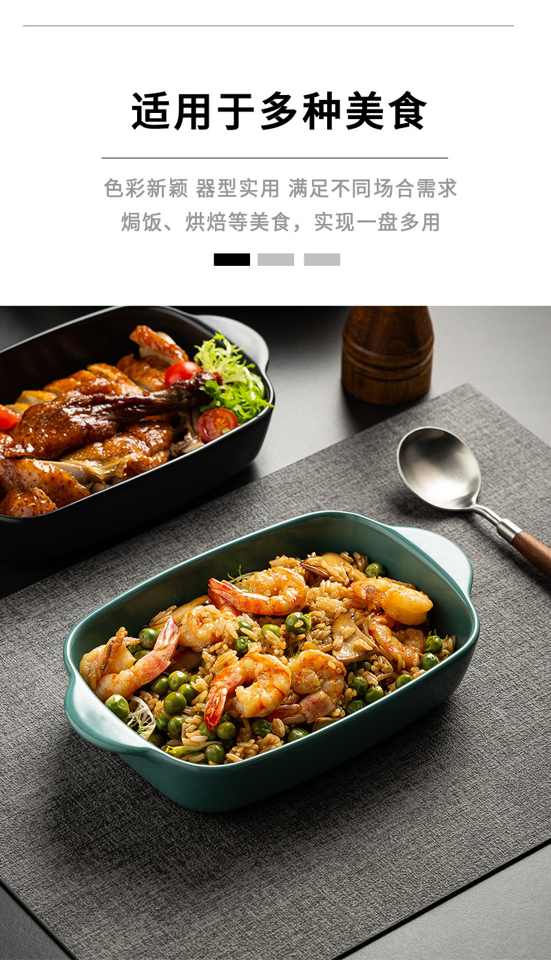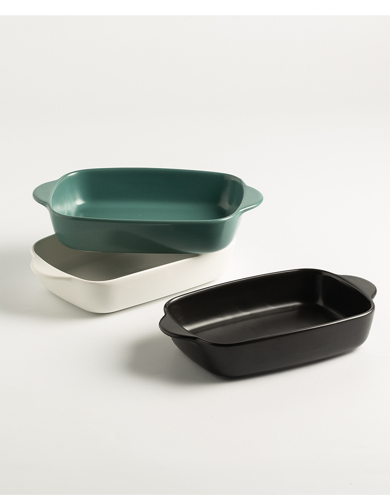 Plato de arroz al horno con queso de estilo nórdico Plato para hornear para el hogar Tazón para hornear binaural Horno rectangular de cerámica Plato para microondas