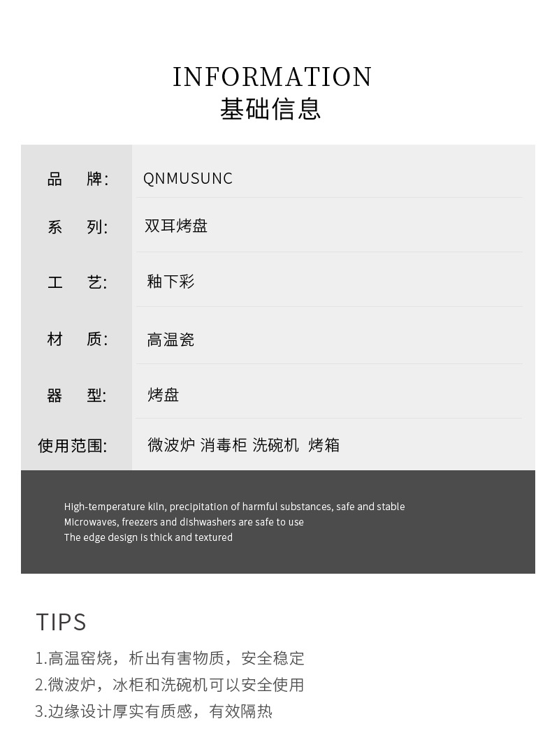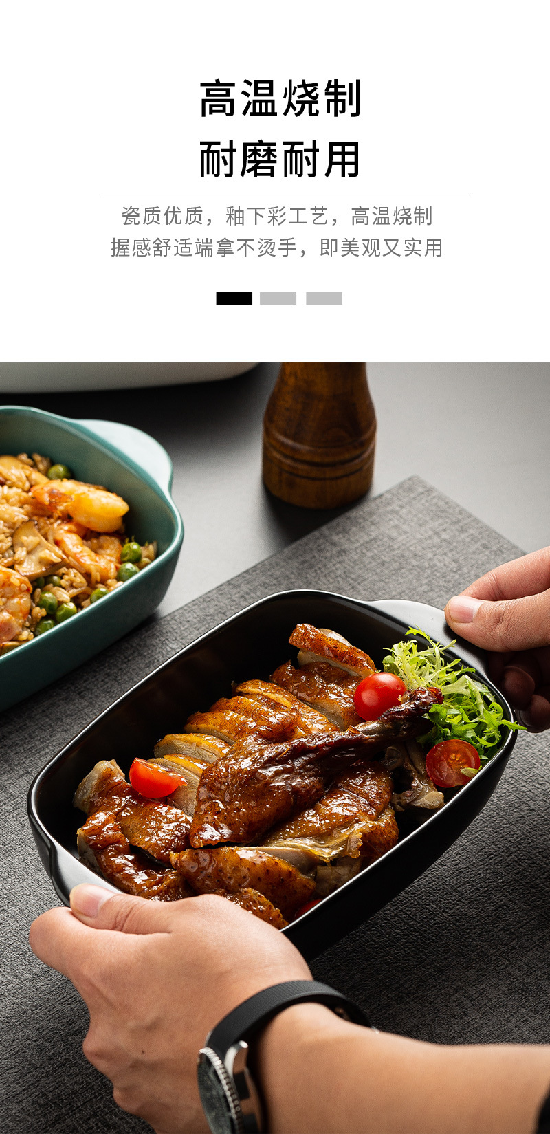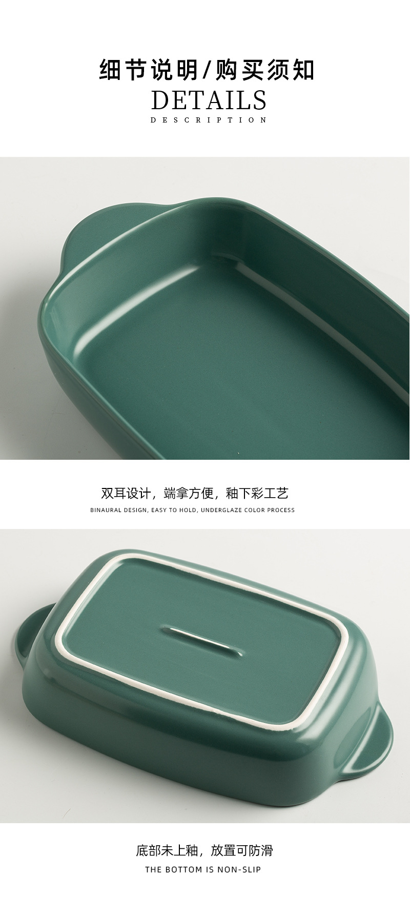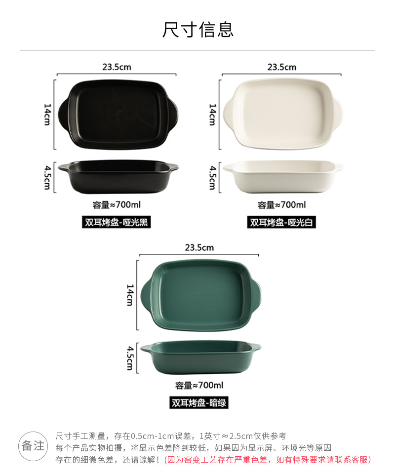 Plato de arroz al horno con queso de estilo nórdico Plato para hornear para el hogar Tazón para hornear binaural Horno rectangular de cerámica Plato para microondas