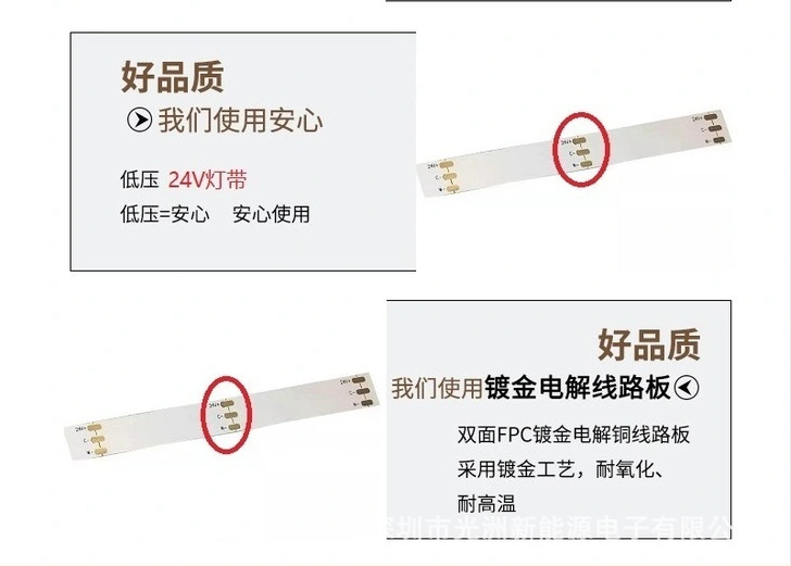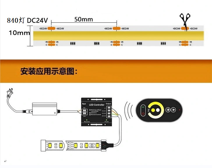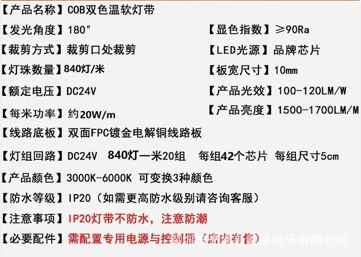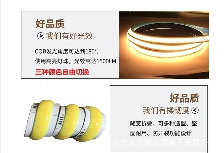 COB tira de luz de temperatura de dos colores 24vled barra de luz de baja tensión dos en uno tablero desnudo impermeable Epoxy TV Fondo Temperatura de tres colores