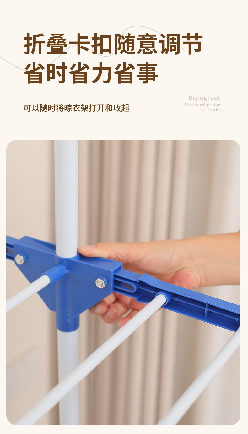 Tendedero de ropa simple de un solo poste, tendedero de pie plegable multifuncional de tres niveles para exteriores, tendedero de balcón con forma de ala
