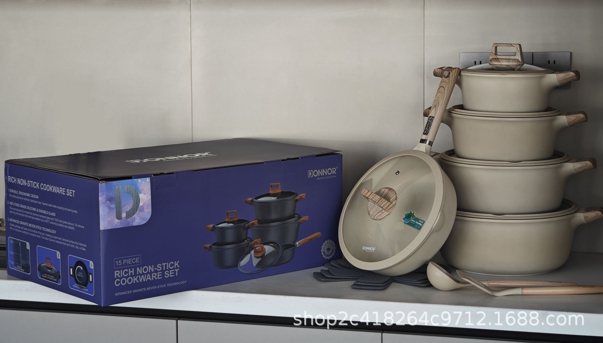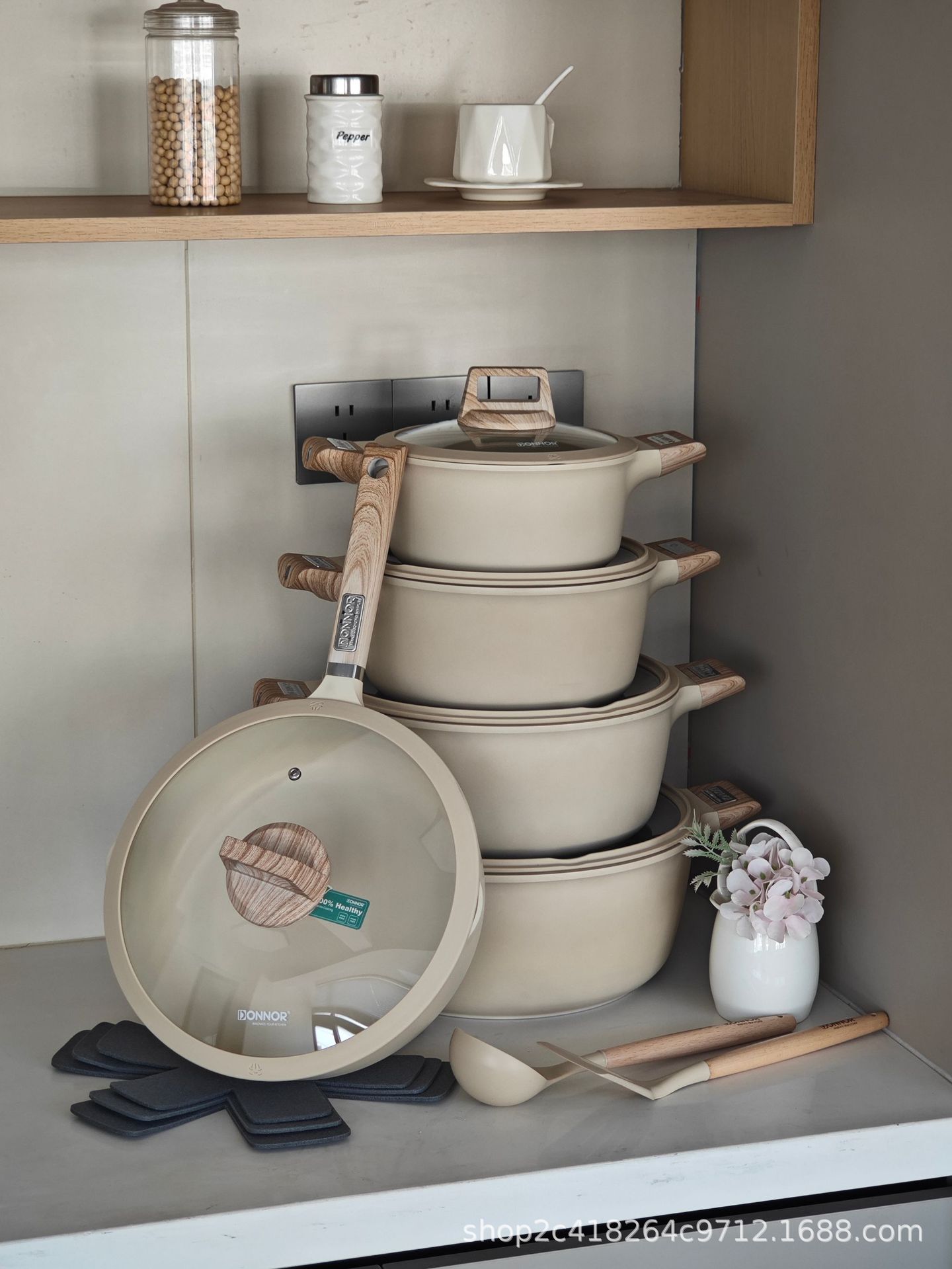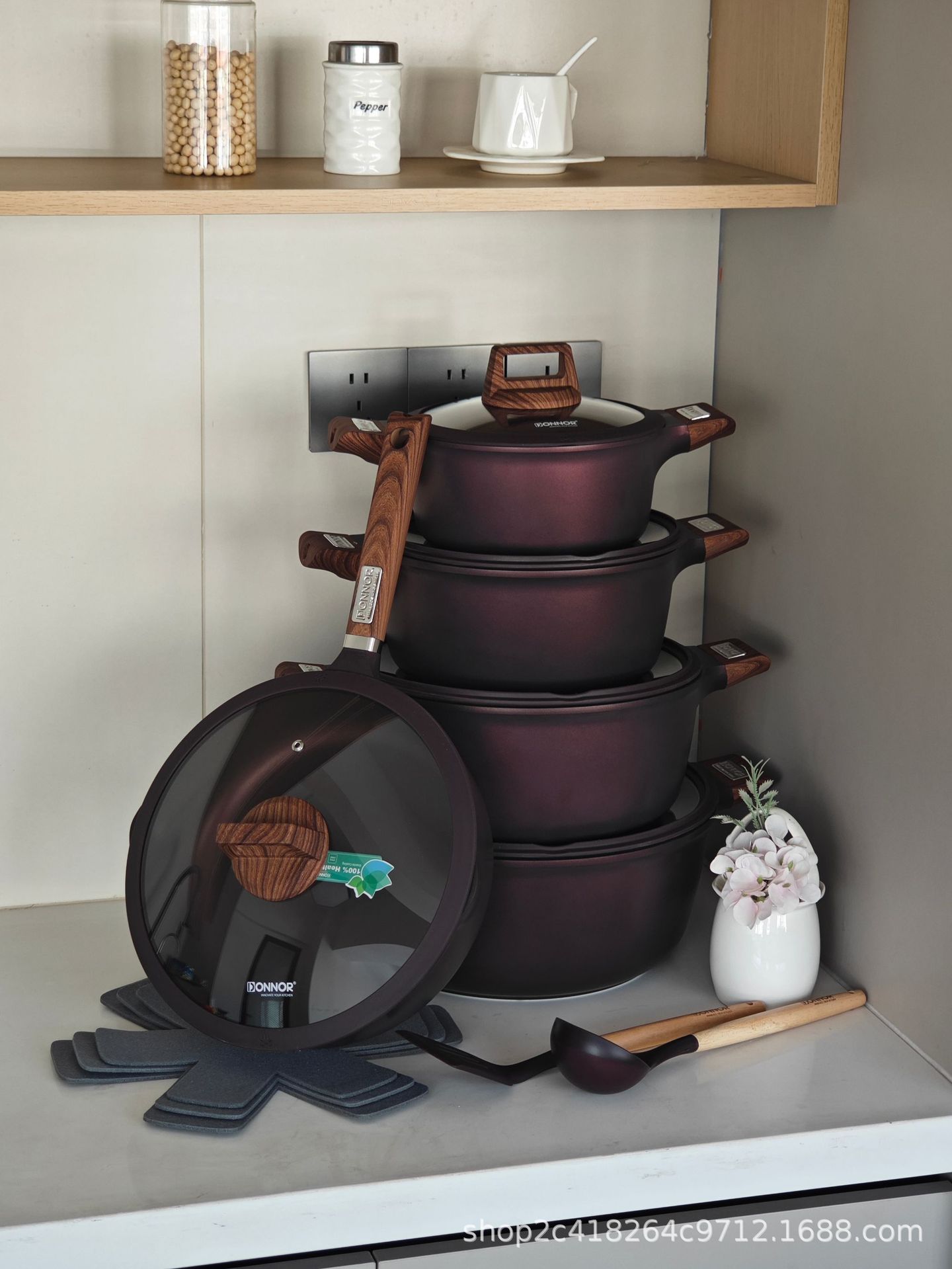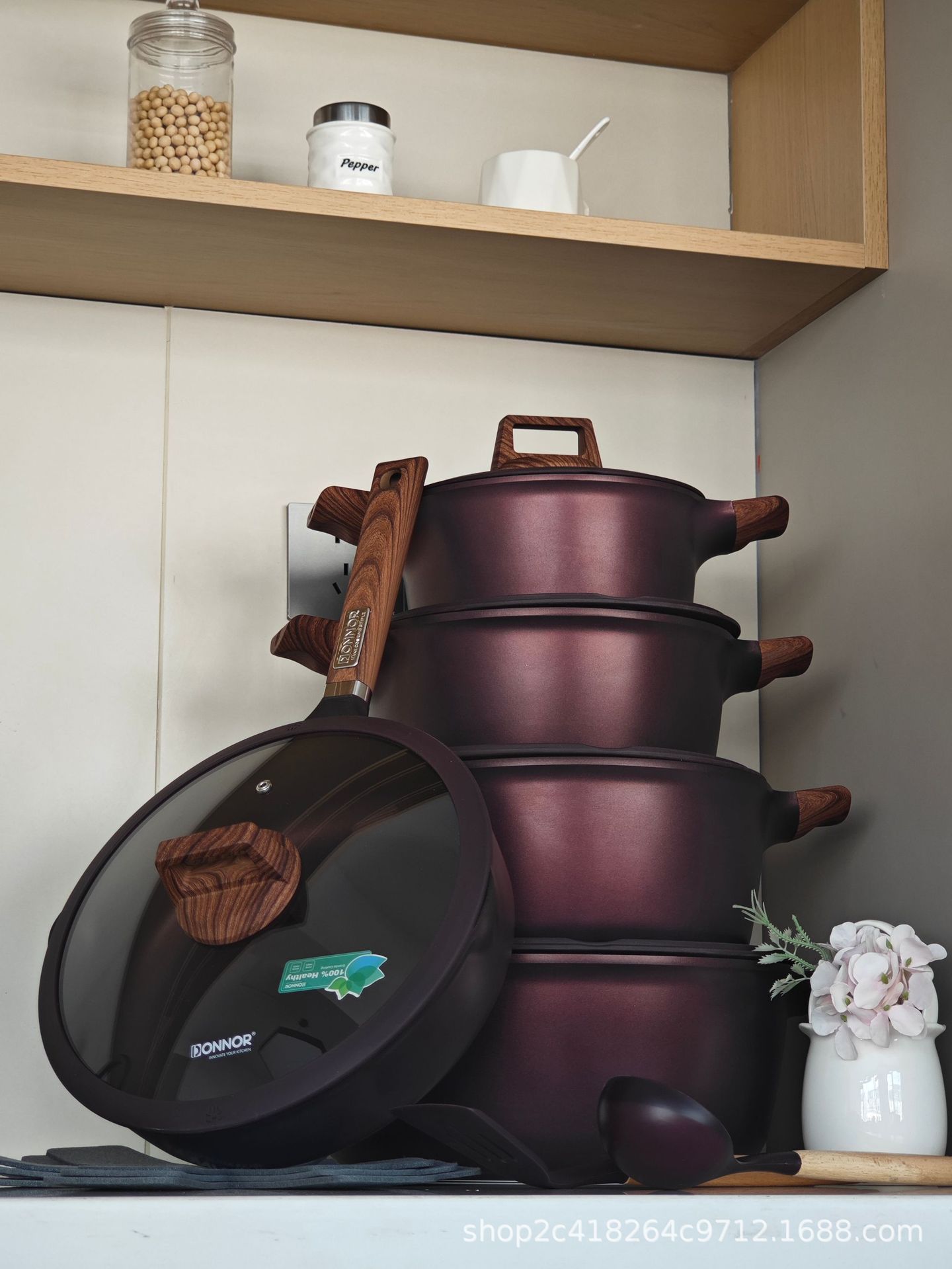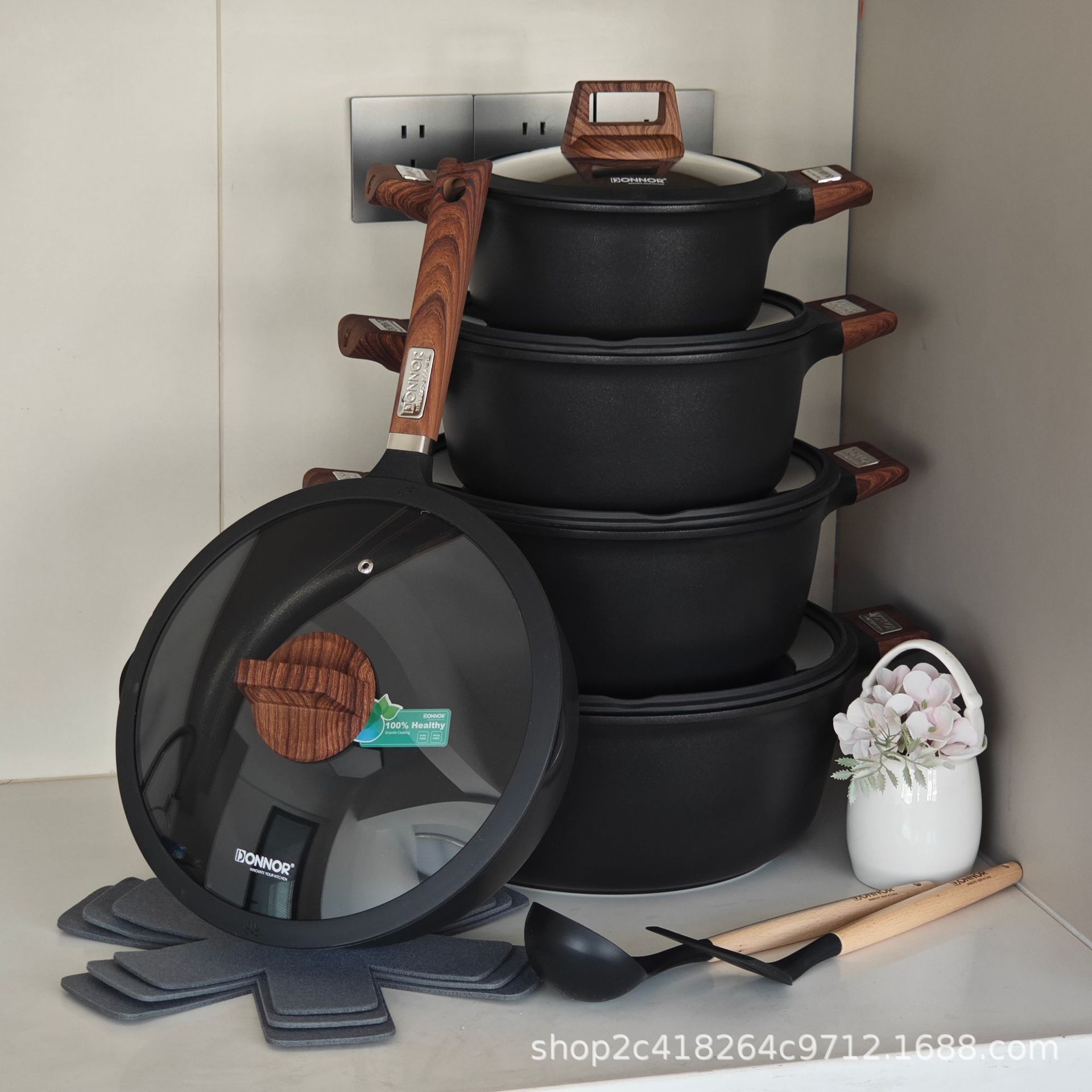 Donnor Fuli serie de 15 piezas olla de sopa wok freír olla antiadherente comercio exterior original spot cocina de inducción universal