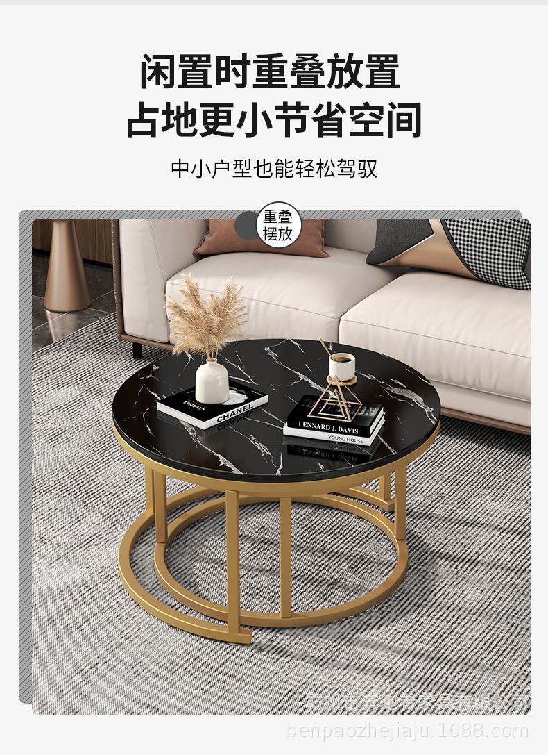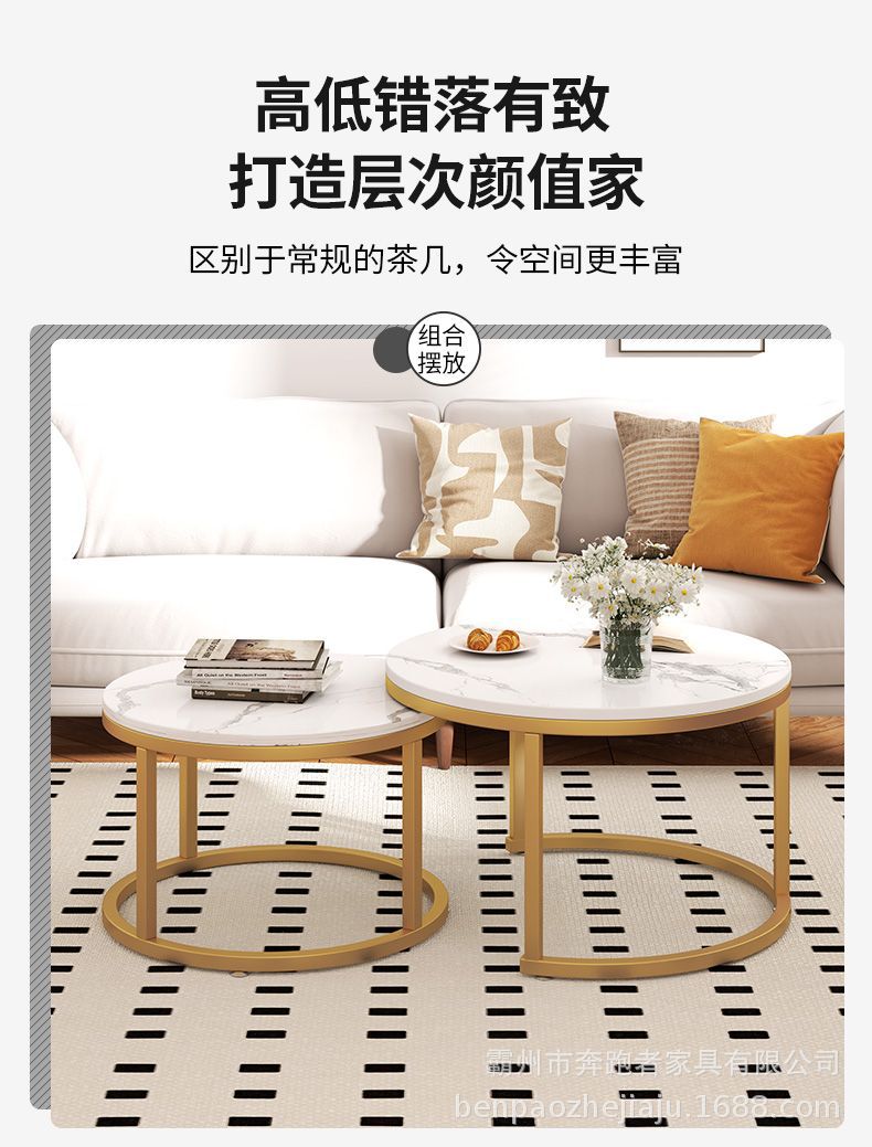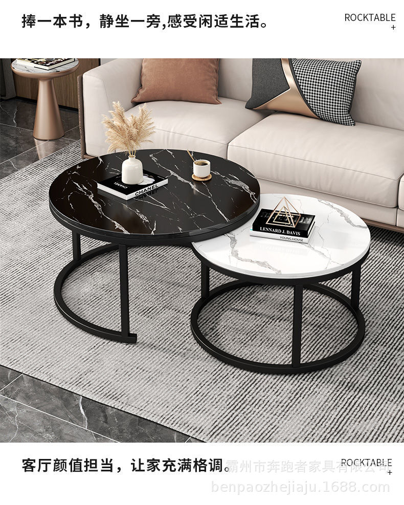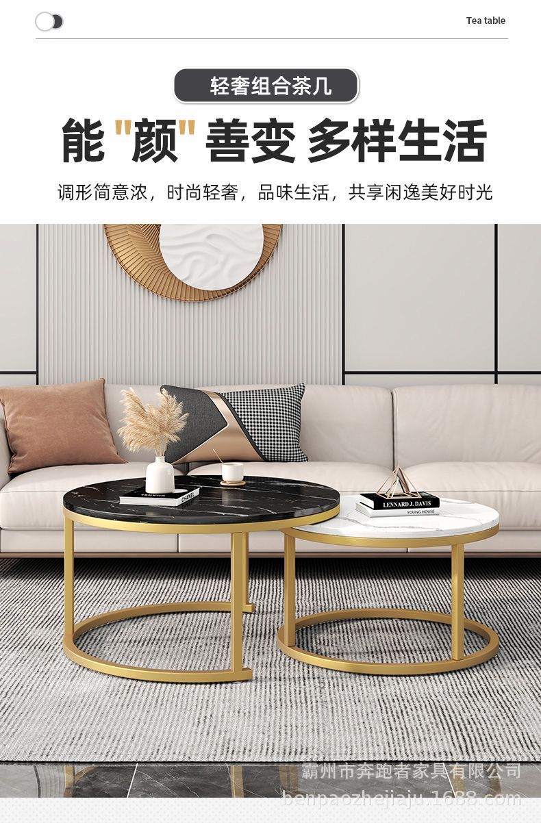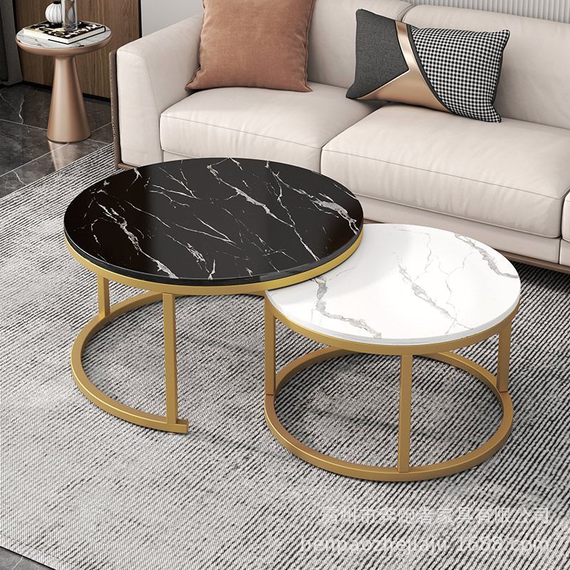Mesa de centro Mesa de centro nórdica de alta calidad, mesa de centro de placa redonda de madera, sala de estar de estilo antiguo, mesa de centro de combinación minimalista italiana