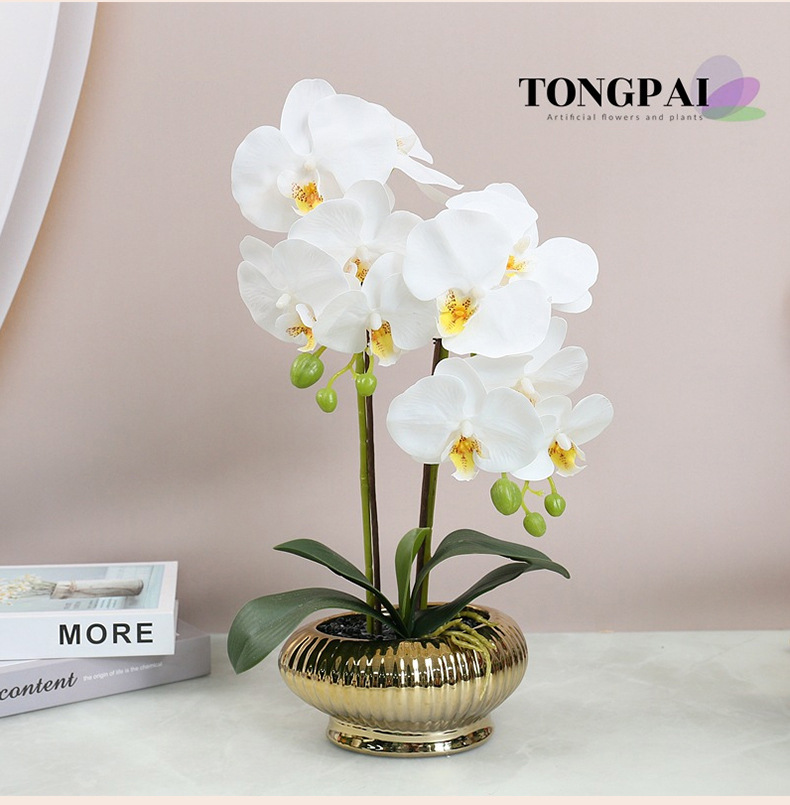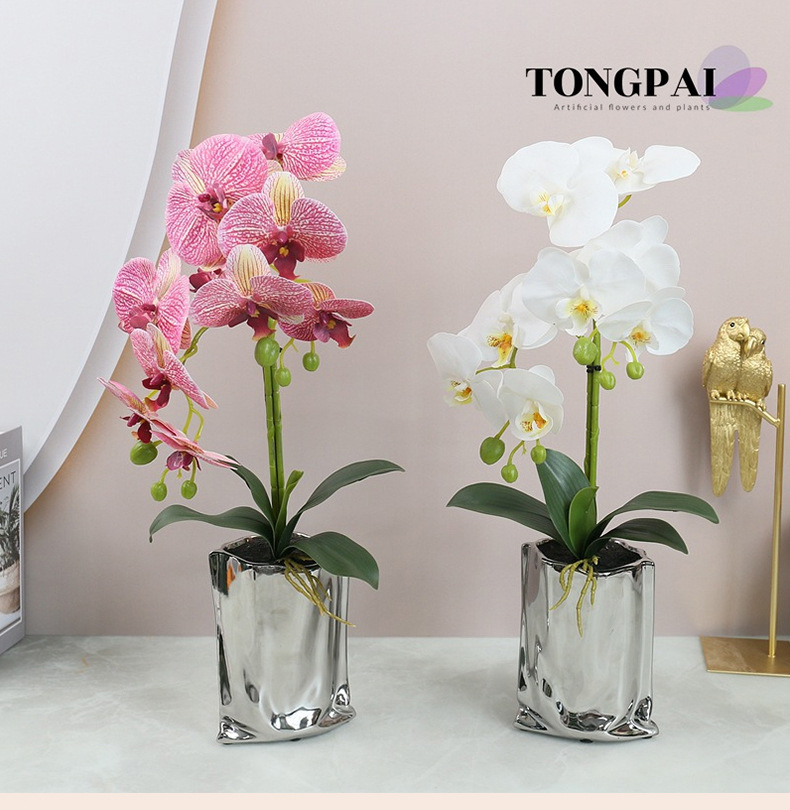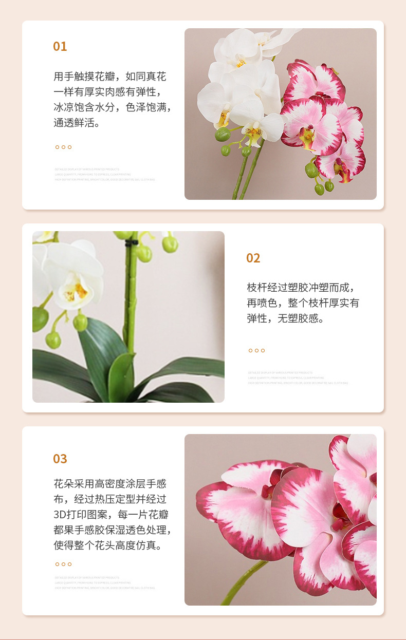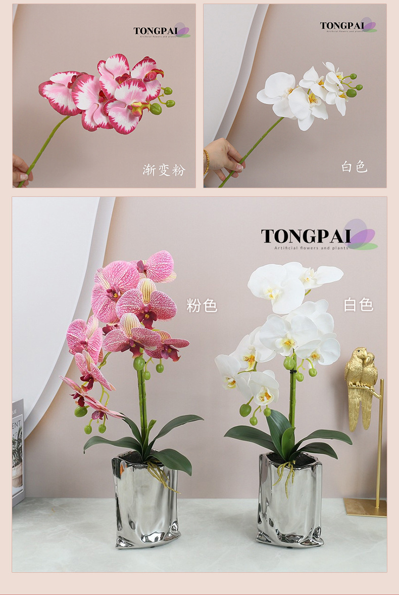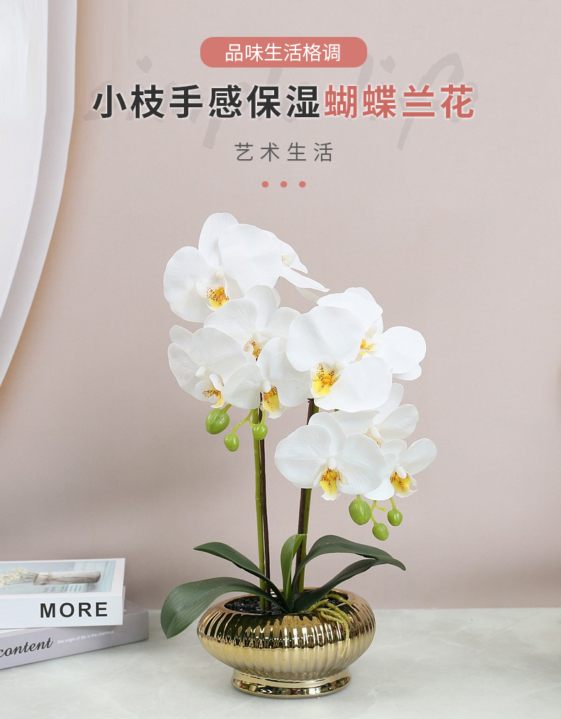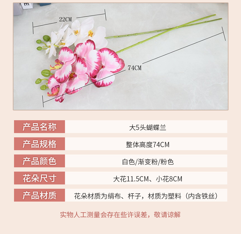 Flor Artificial sentir pegamento 5-cabeza mariposa orquídea flor artificial sola flor falsa 3D adornos de impresión transfronteriza al por mayor