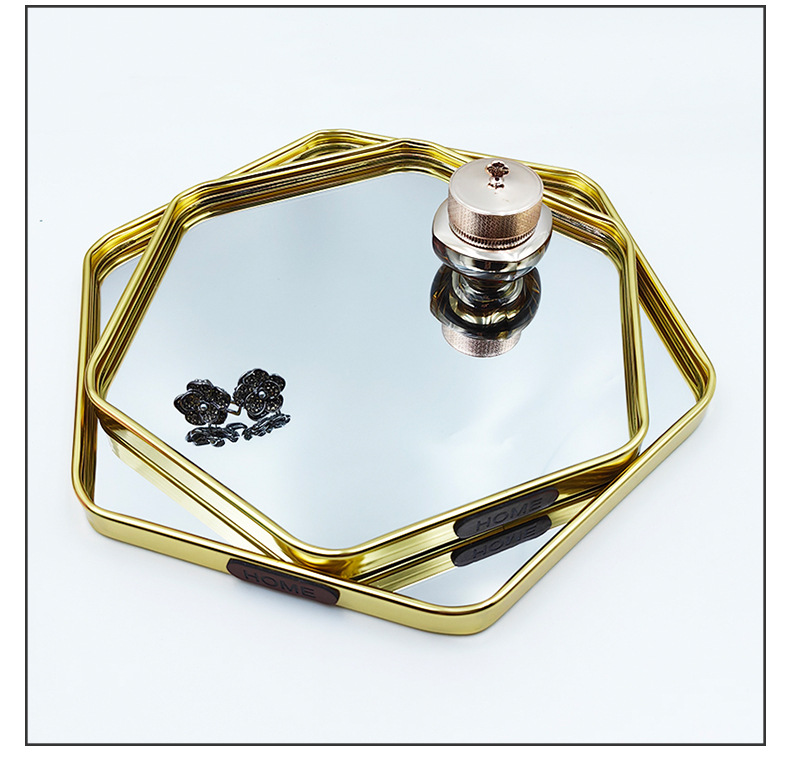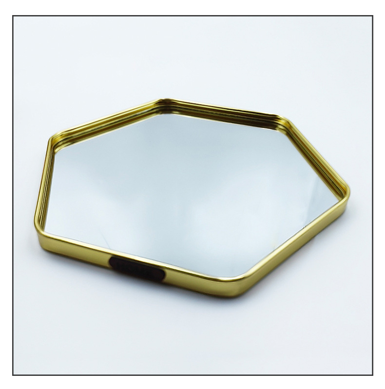 Bandeja de espejo Caja de almacenamiento de cosméticos Caja de almacenamiento de bandeja hexagonal de joyería Bandeja de almacenamiento de espejo de escritorio ins