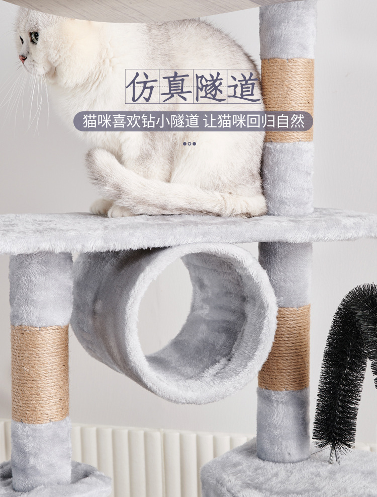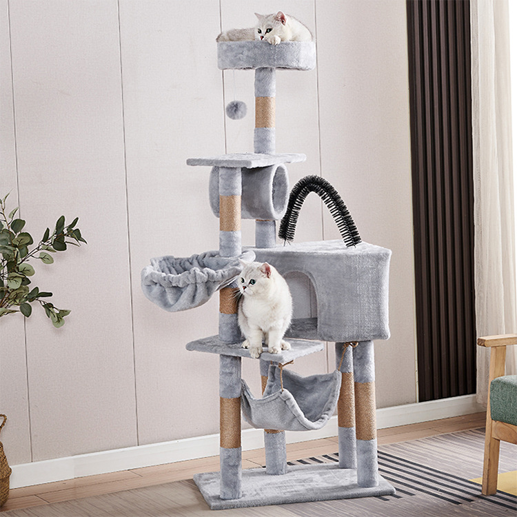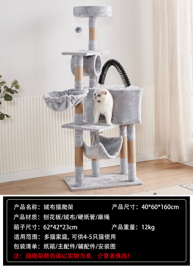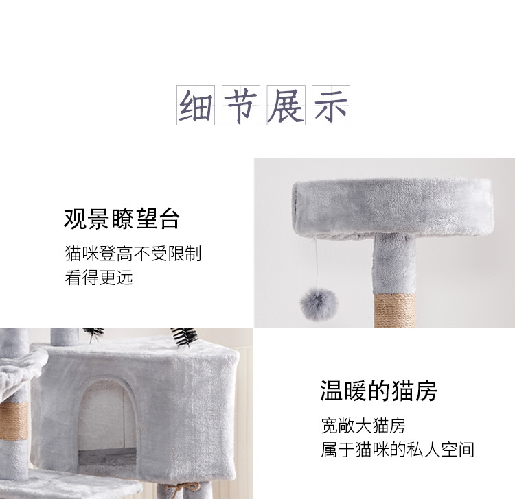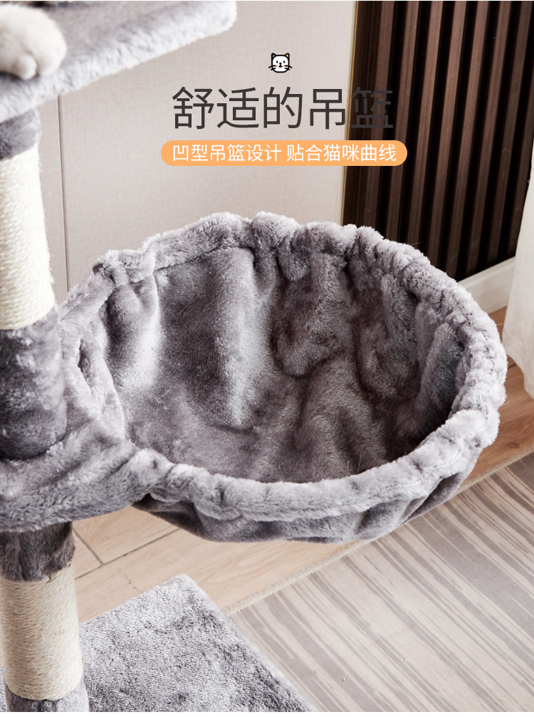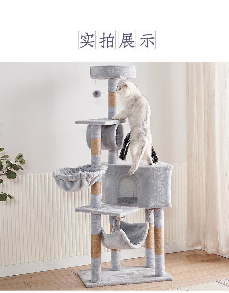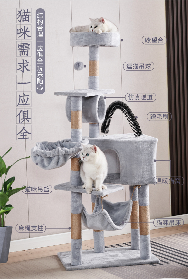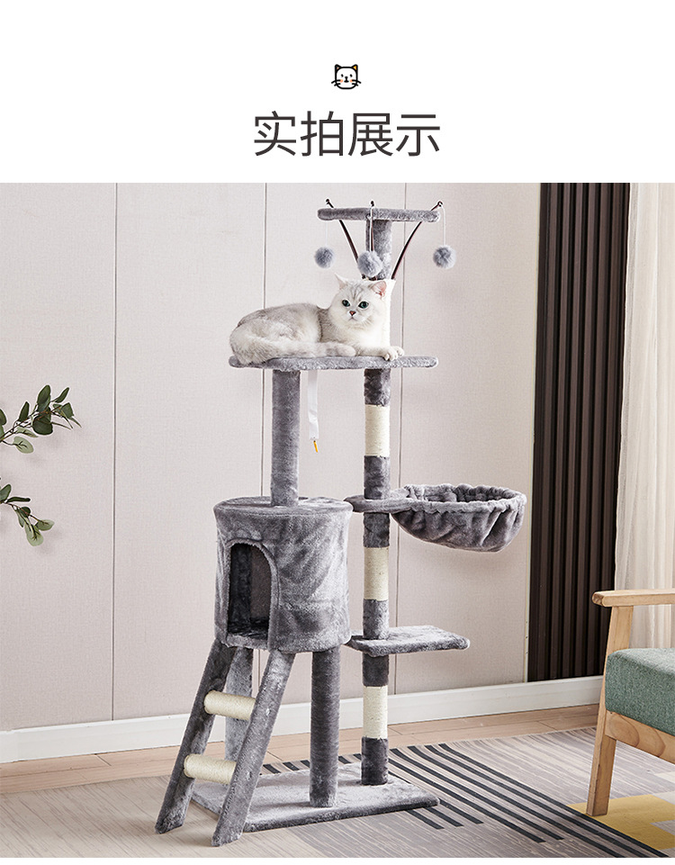 Marco de escalada para gatos de franela personalizado al por mayor, estructura de madera multicapa, raspador de juguetes para gatos con casa para gatos, cuerda de sisal, apartamento de columna de agarre