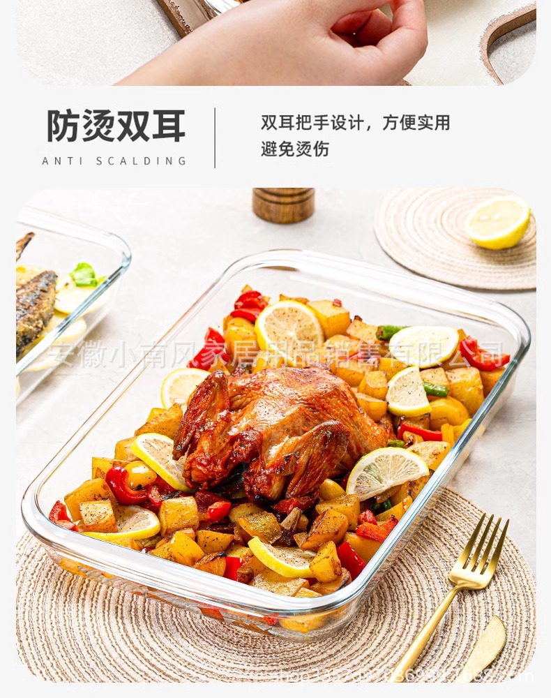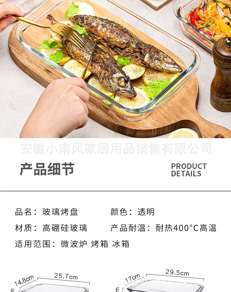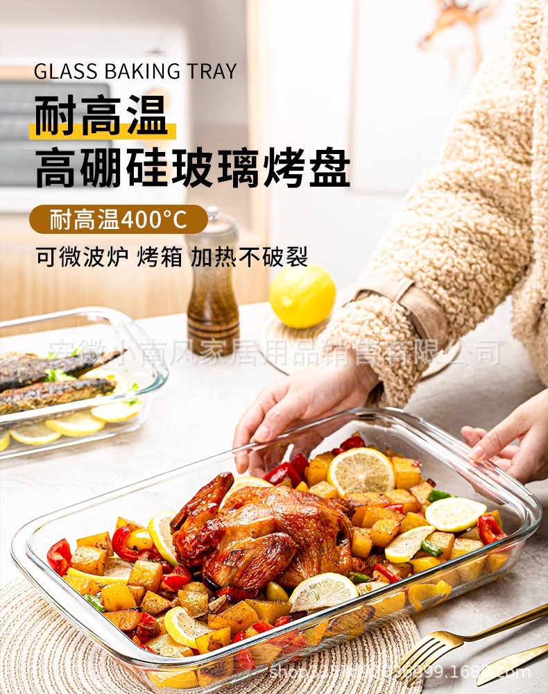 alta borosilicona resistente a altas temperaturas placa de horno de vidrio rectangular horno doméstico microondas refrigerador congelado al vapor placa de pescado asado