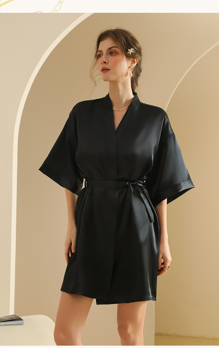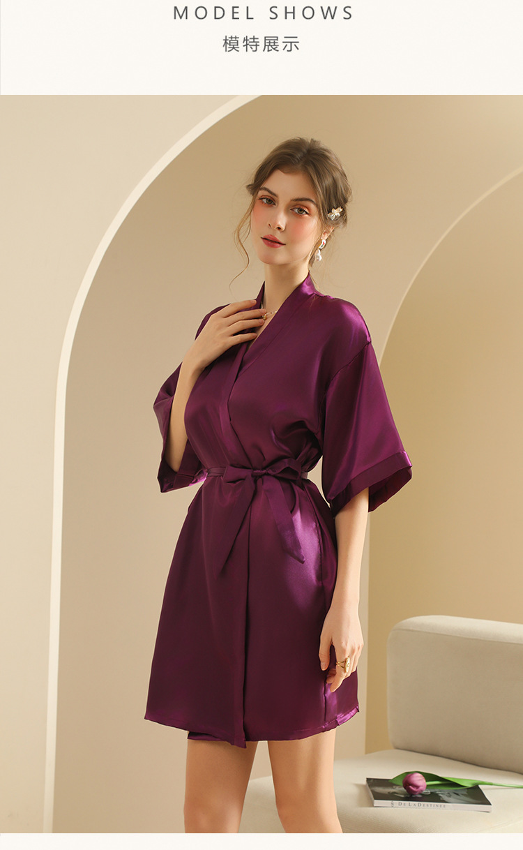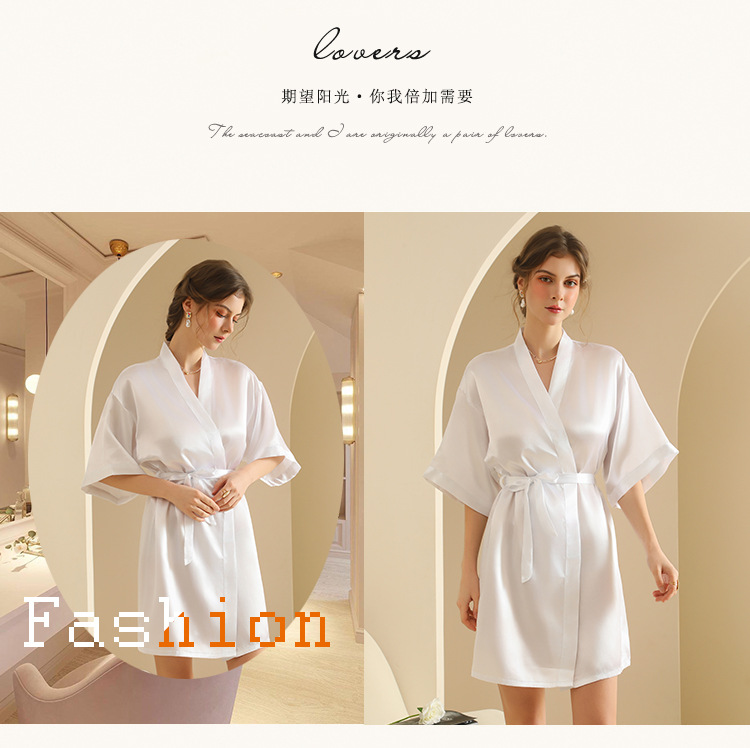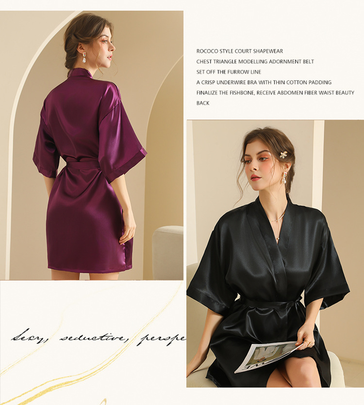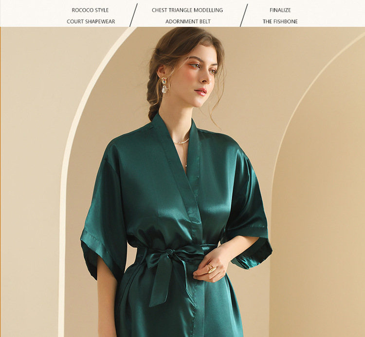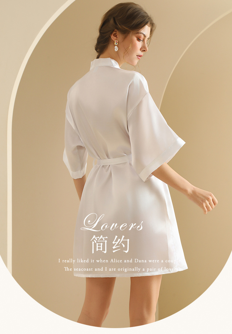 Vestido de maquillaje de boda camisón de seda artificial de las mujeres vestido de Cardigan delgado vestido de novia de la mañana