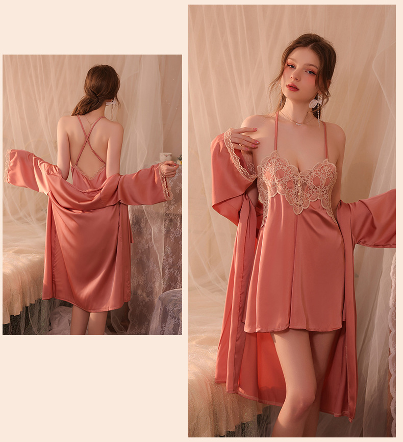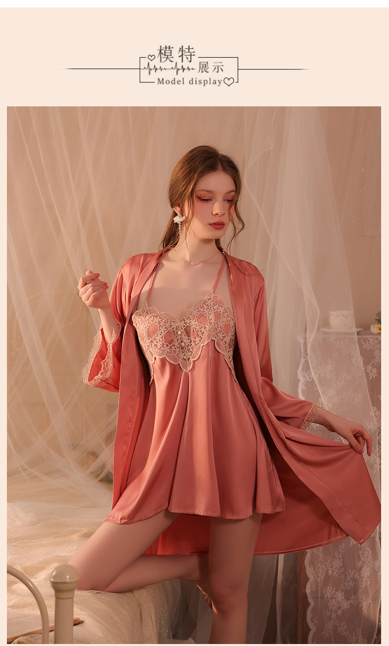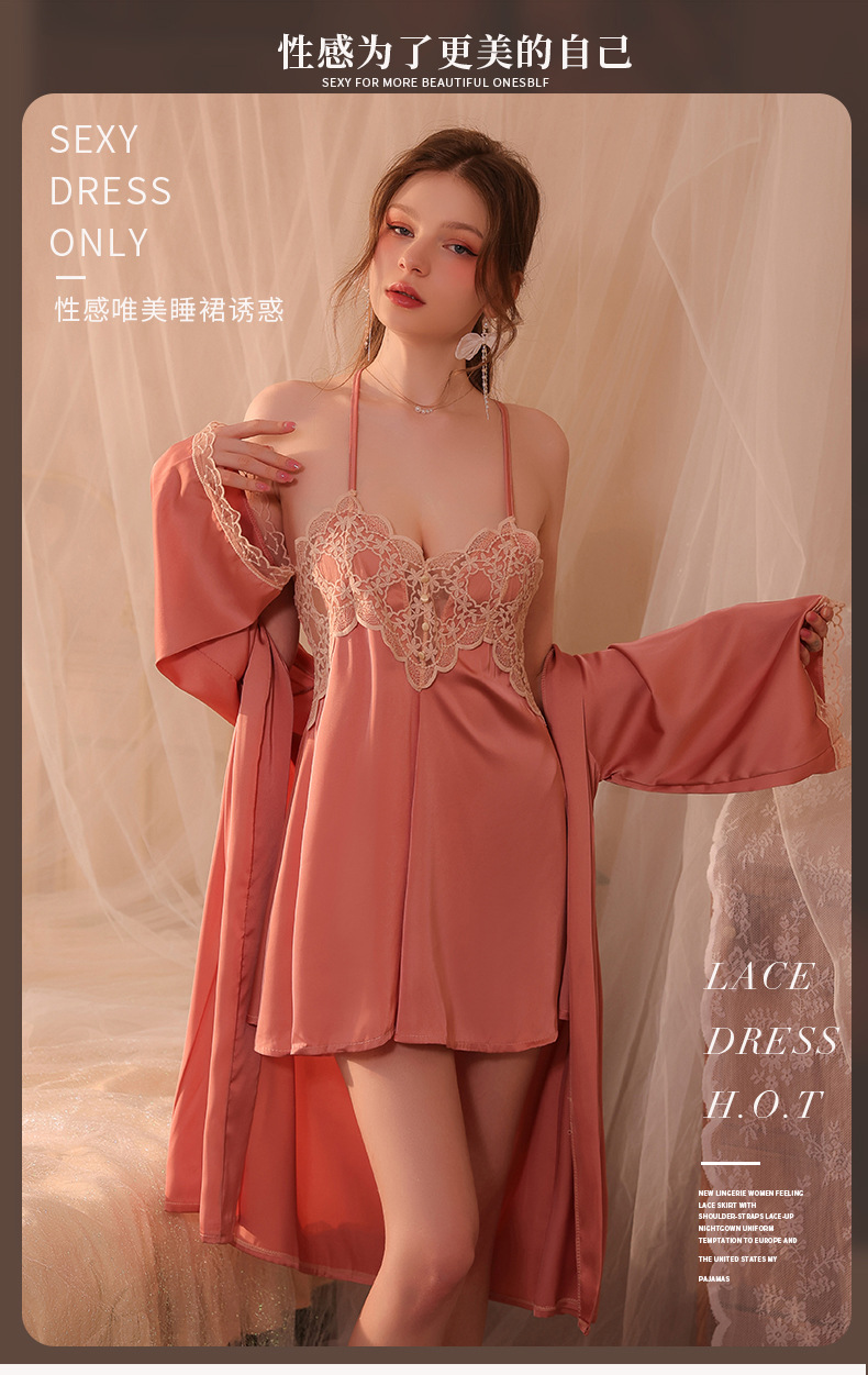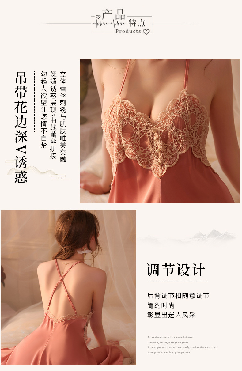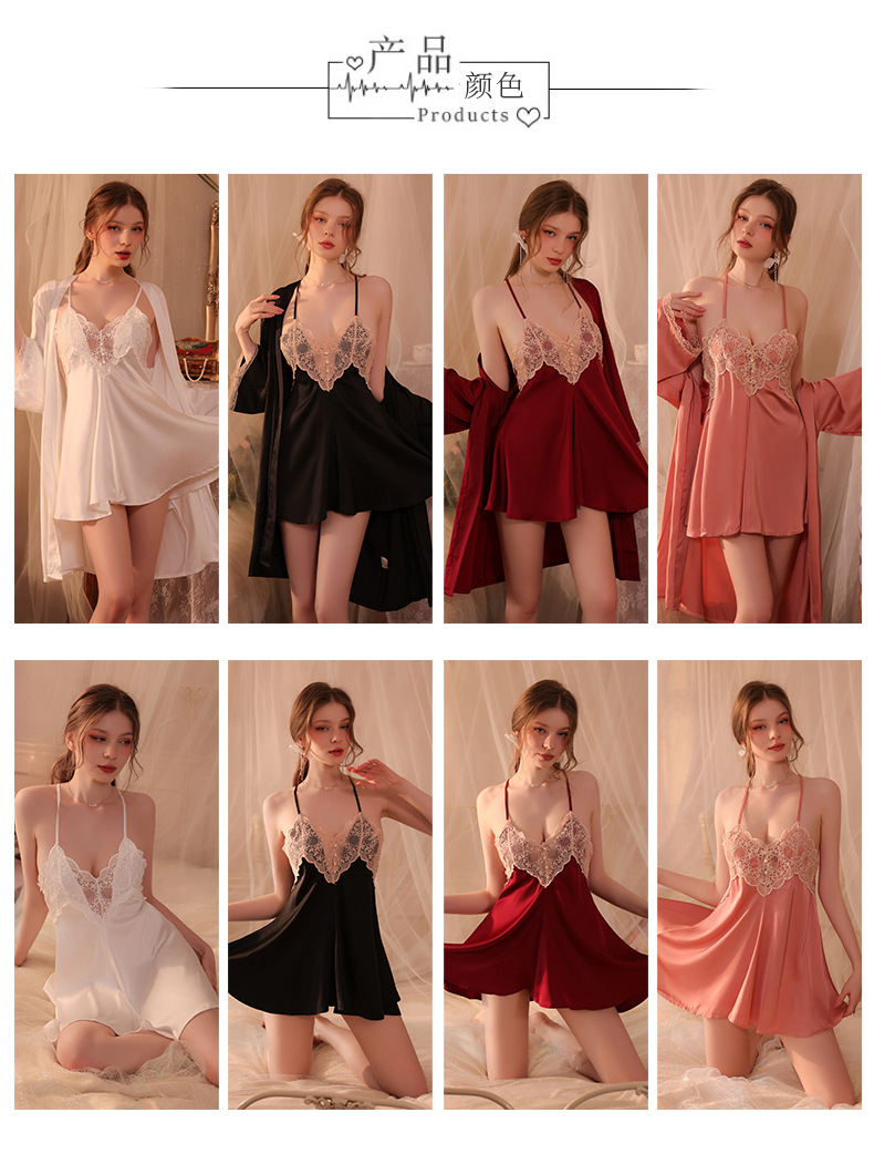 Conjunto de pijama sexy, vestido de tirantes sin espalda de seda helada transparente, ropa de estar por casa, disponible para dropshipping A123, estilo suave y relajado.