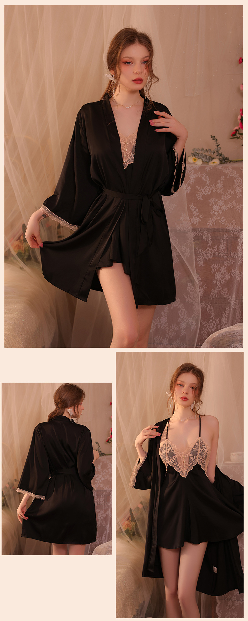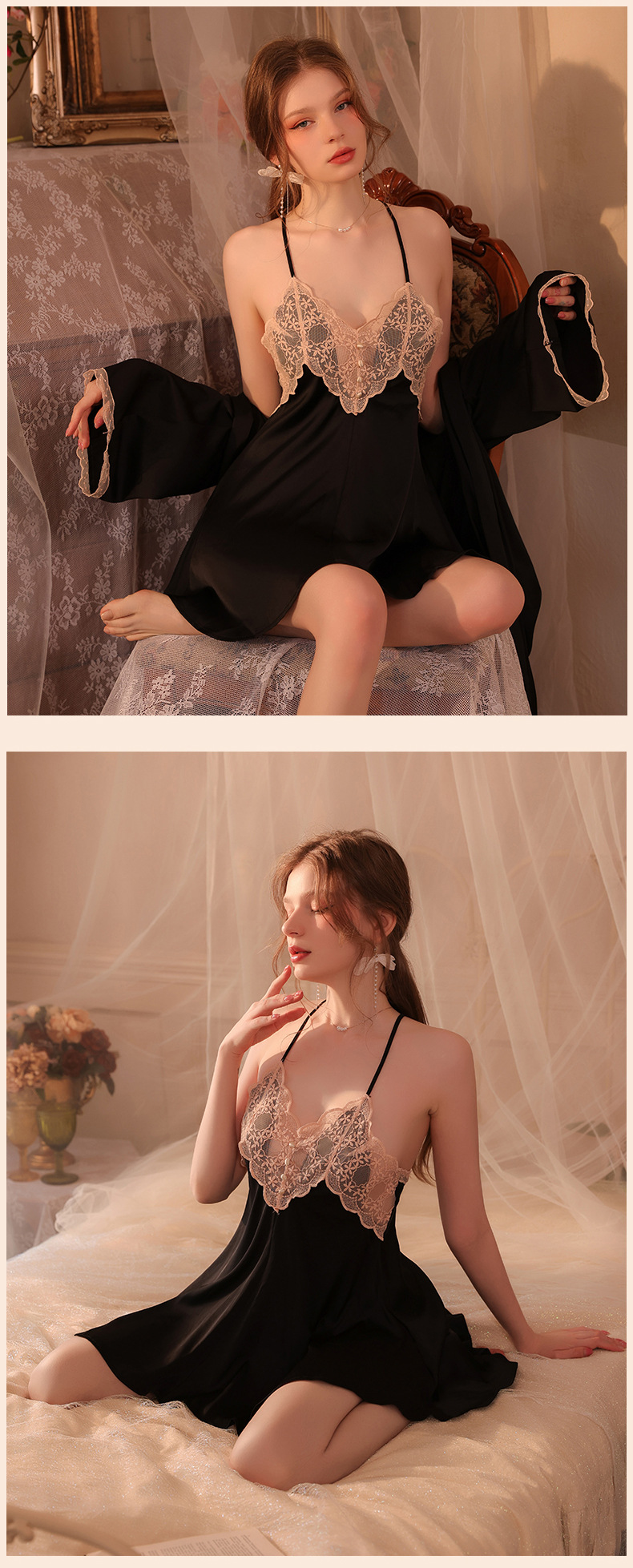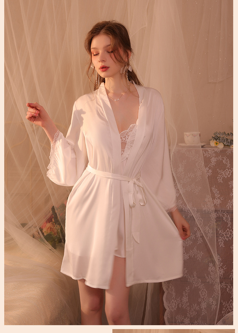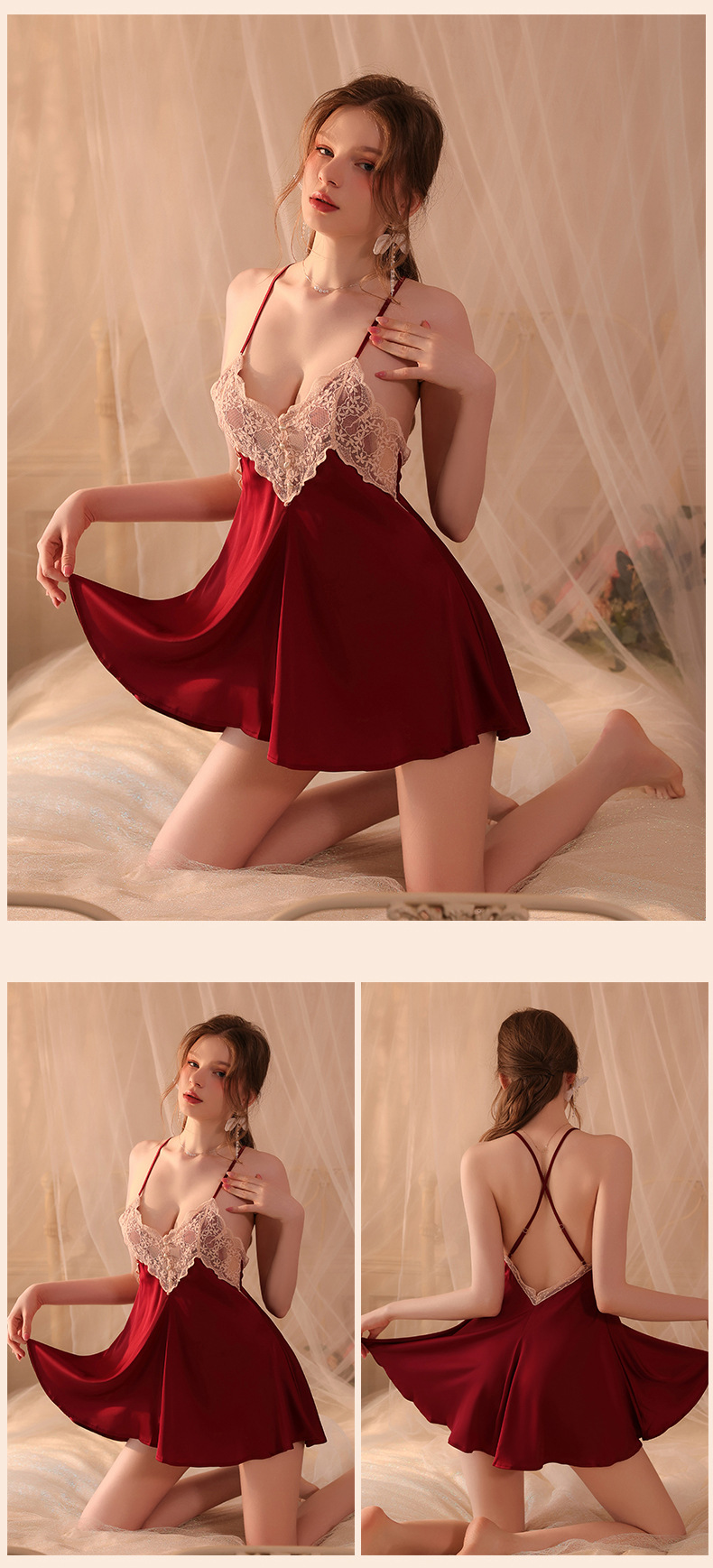 Conjunto de pijama sexy, vestido de tirantes sin espalda de seda helada transparente, ropa de estar por casa, disponible para dropshipping A123, estilo suave y relajado.