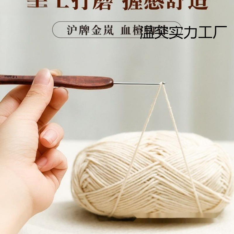 Shanghai ganchillo sangre madera de sándalo mango de aguja estándar manual I micro gancho lana suéter antideslizante herramienta de tejido