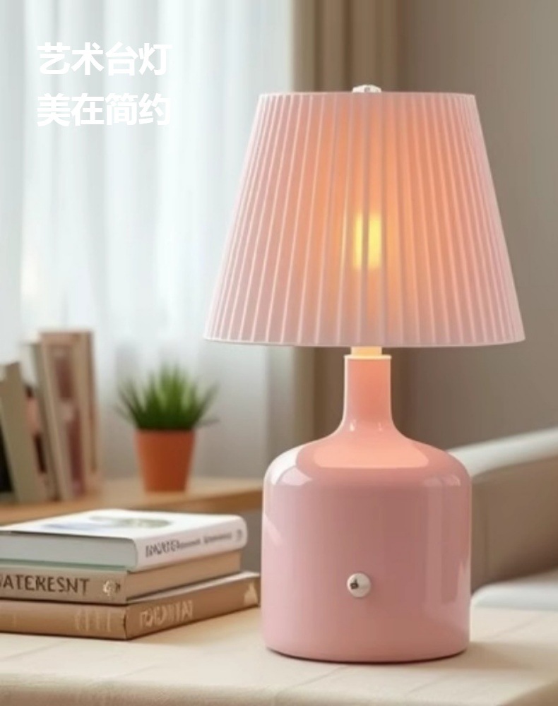 Luz de noche del dormitorio de la niña de color rojo en línea, lámpara de escritorio de cerámica moderna y simple nórdica, lámpara de decoración de la habitación del hotel