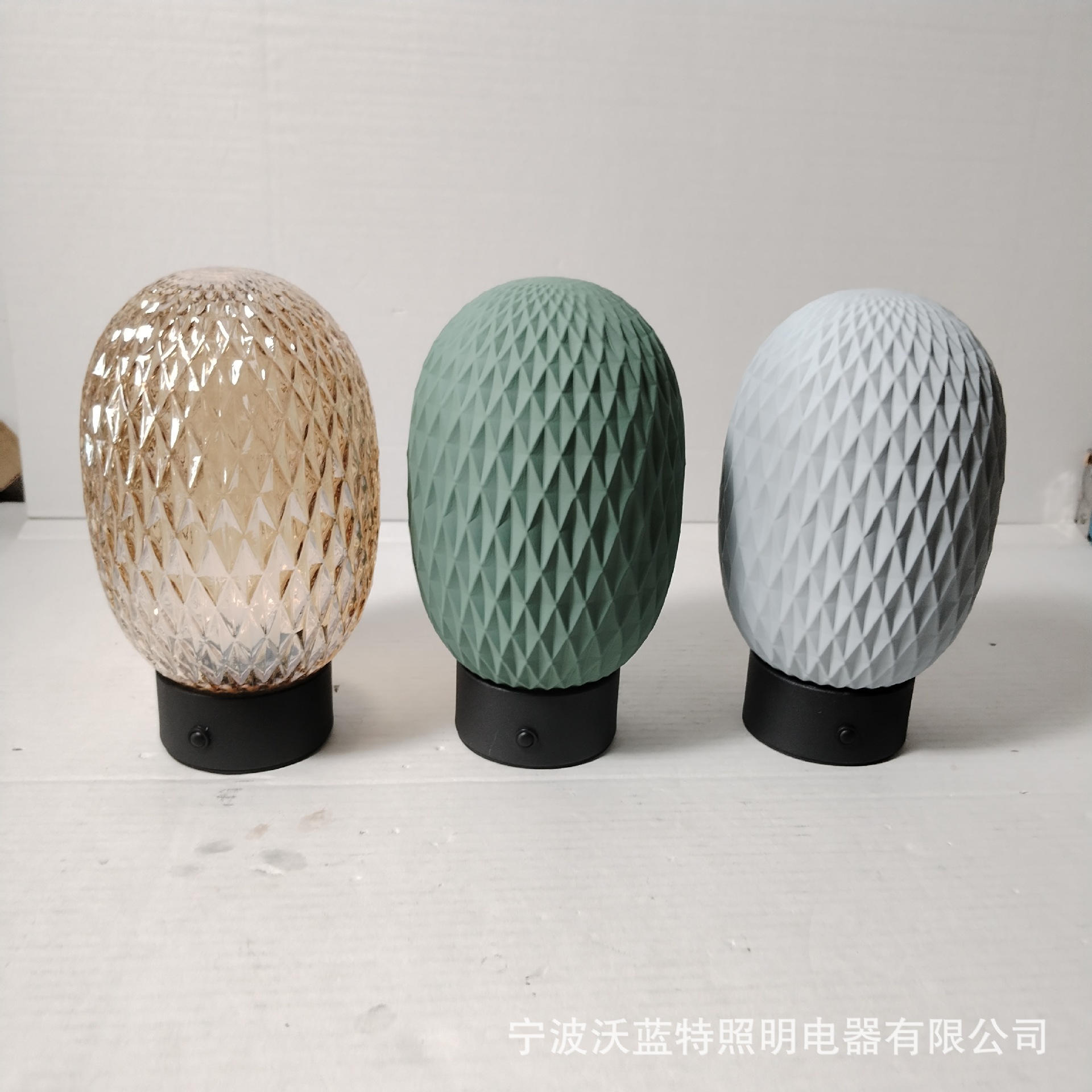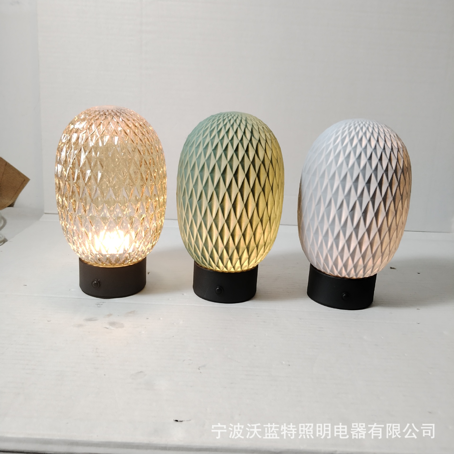 Huevo de dinosaurio lámpara de escritorio de vidrio rayado en forma de diamante