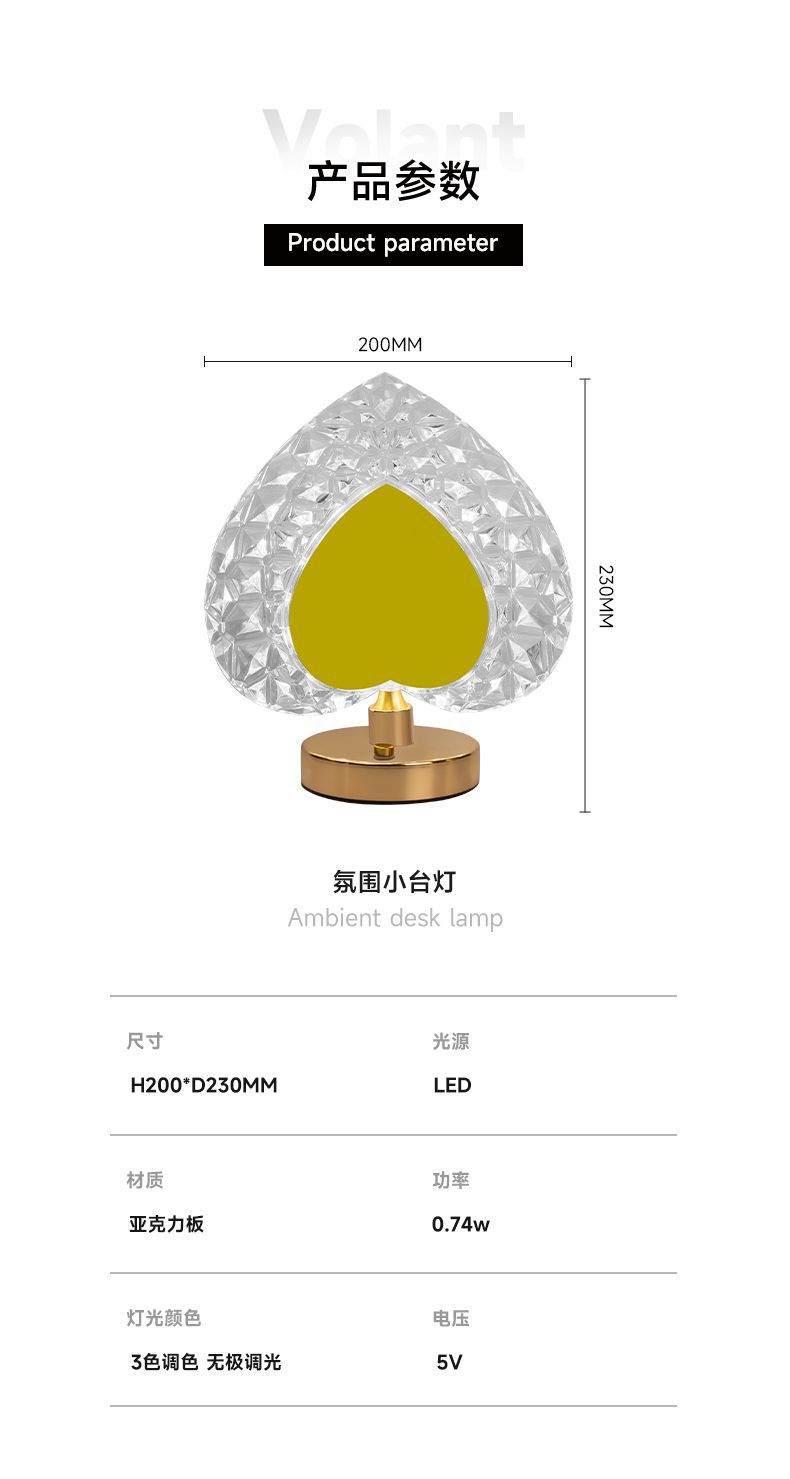 Decoración artística creativa de cristal decoración romántica amor lámpara de escritorio dormitorio cabecera lámpara de noche atmósfera de alto valor facial