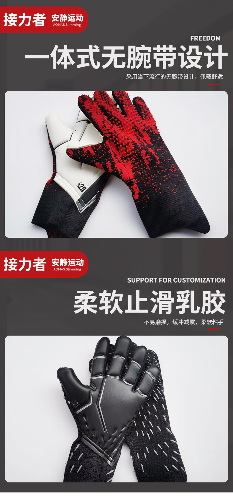 Guantes de portero de fútbol gruesos para adultos y niños, guantes sin dedos de látex antideslizantes transpirables, guantes de portero de fútbol