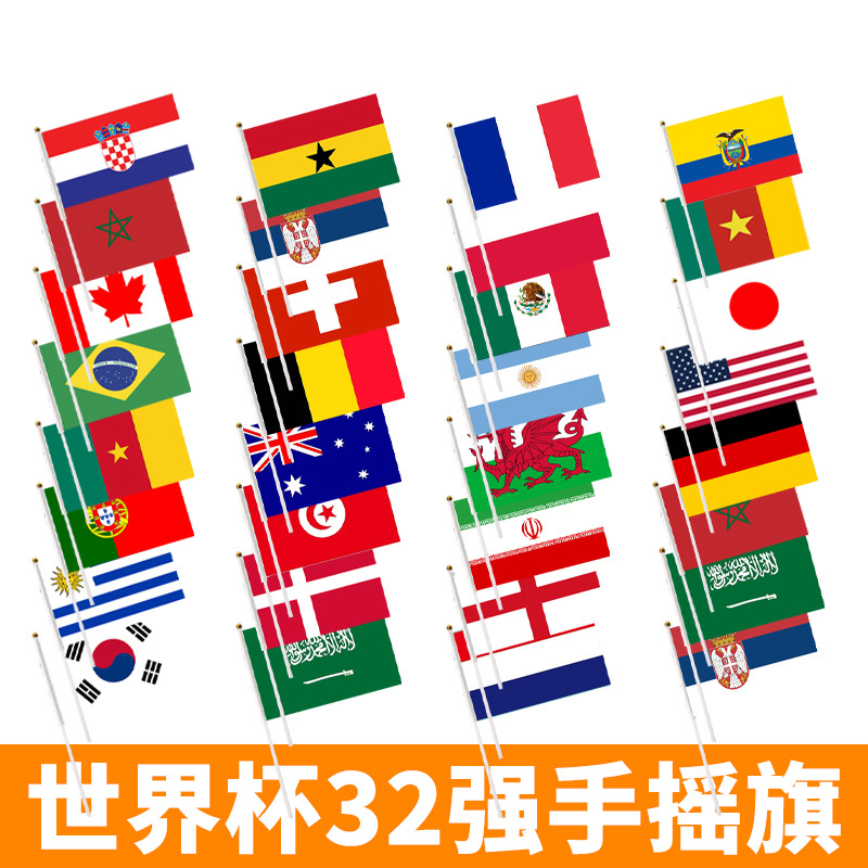 Bandera de mano transfronteriza con barra, bandera de doble cara, bandera de mano de la Copa del Mundo, bandera personalizada