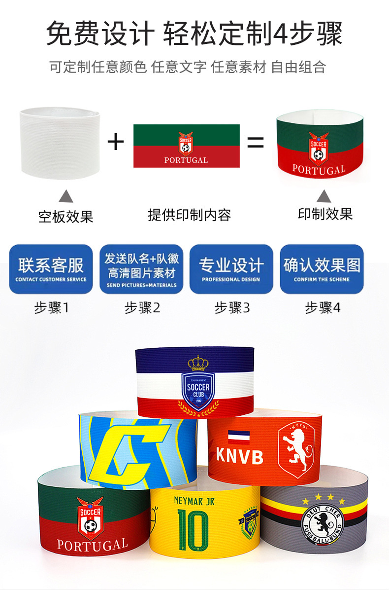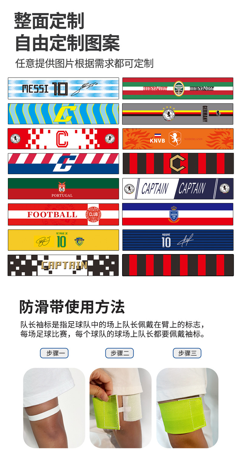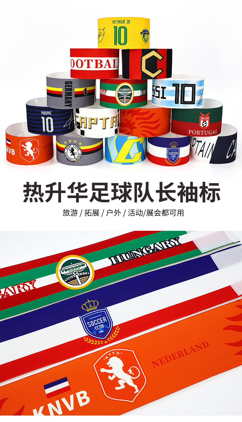 Brazaletes de capitán de fútbol personalizados para la Copa Mundial, Argentina, Real Madrid, Barcelona, AC Milan, grupos de equipos, brazaletes con velcro