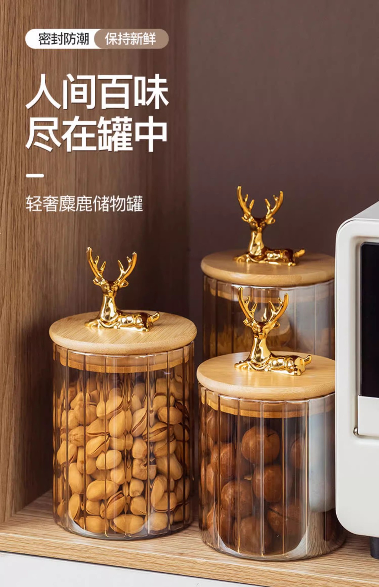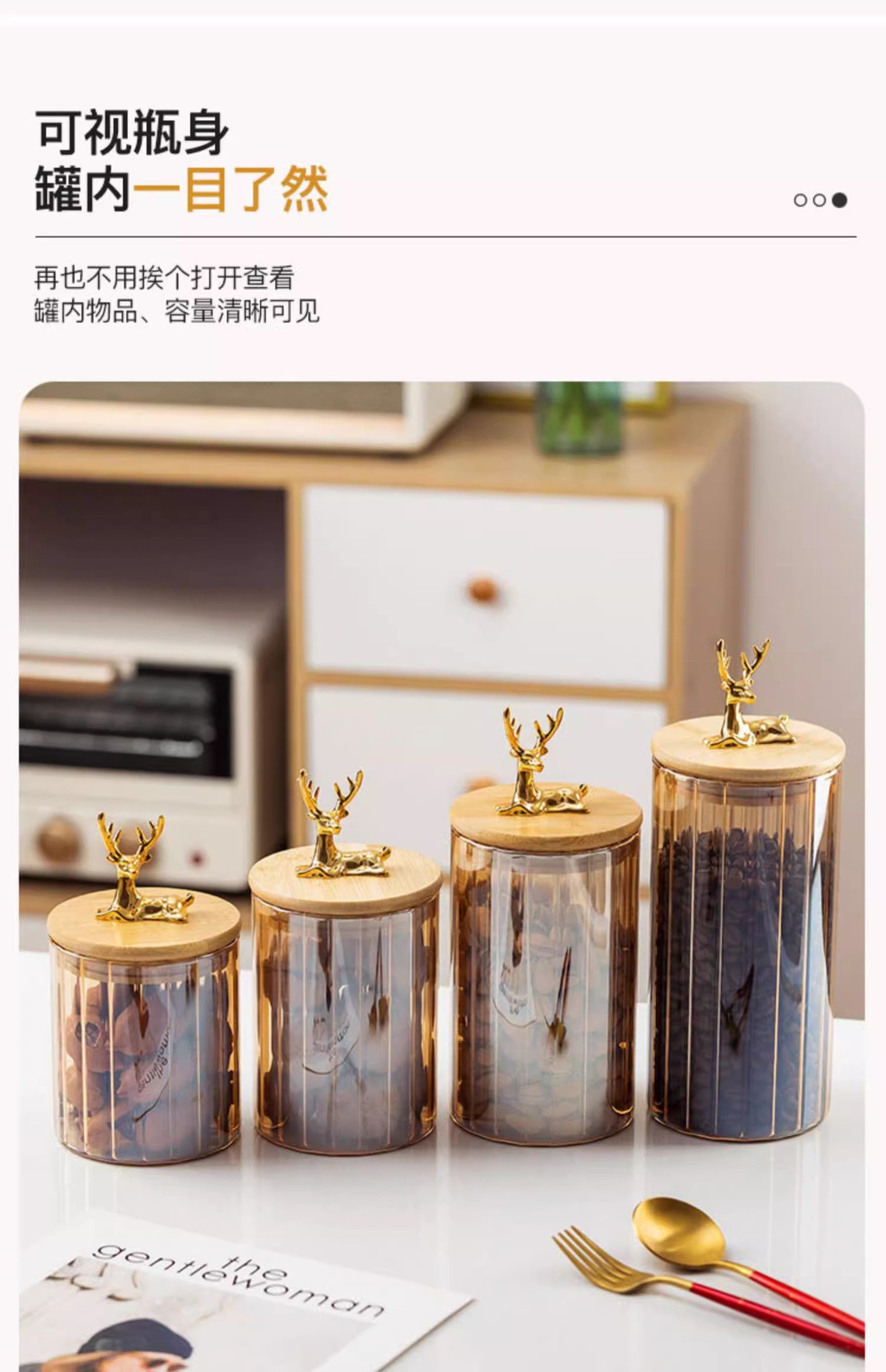 Alce alto borosilicato frasco de vidrio lindo botella de almacenamiento al por mayor latas de caramelo almacenamiento de grado alimenticio latas de sellado transparentes