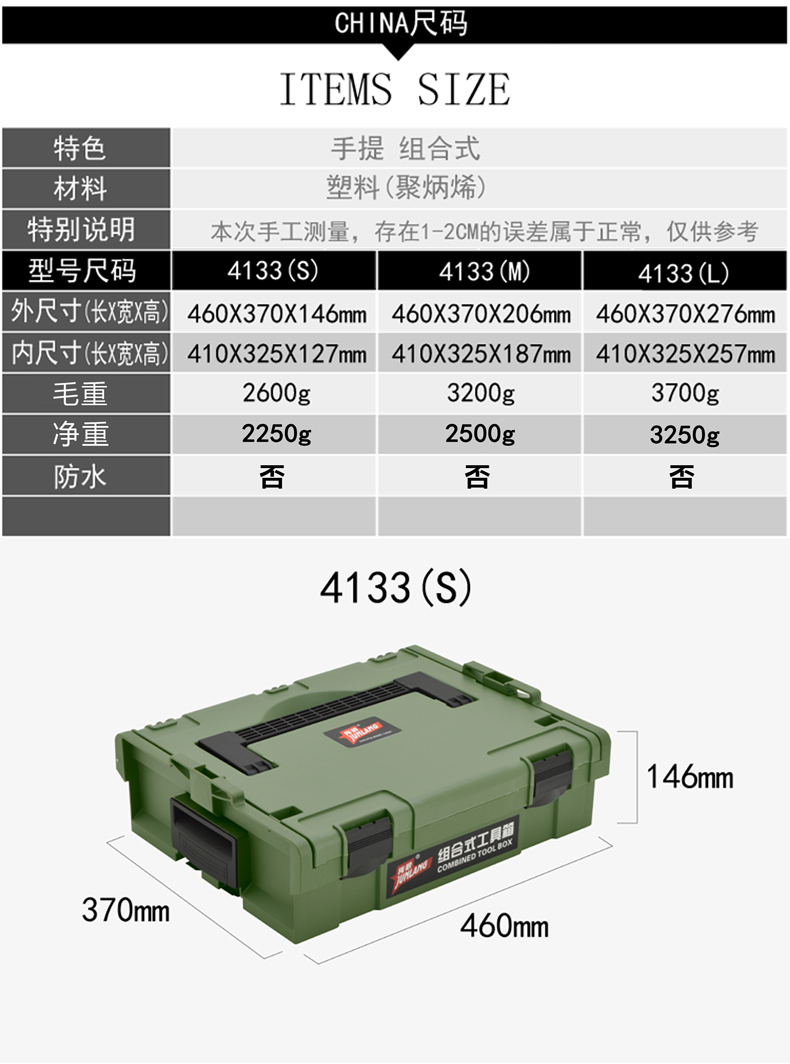 | Color | 4133 (S) pequeño verde militar, 4133 (S) pequeño amarillo, 4133 (M) verde militar medio, 4133 (L) verde militar grande, 4133 (M) medio amarillo, 4133 (L) grande amarillo, 4133 (S) pequeño negro, 4133 (M) medio negro, 4133 (L) grande negro, 4133 pequeño negro medio + scooter, 4133 scooter especial negro, 4133 scooter especial verde nocturno, 4133 verde oscuro tamaño pequeño y medio + scooter, 4133 (S) tamaño pequeño negro + cubierta de caja interior amarilla, 4133 (S) tamaño pequeño verde oscuro + cubierta de caja interior amarilla |